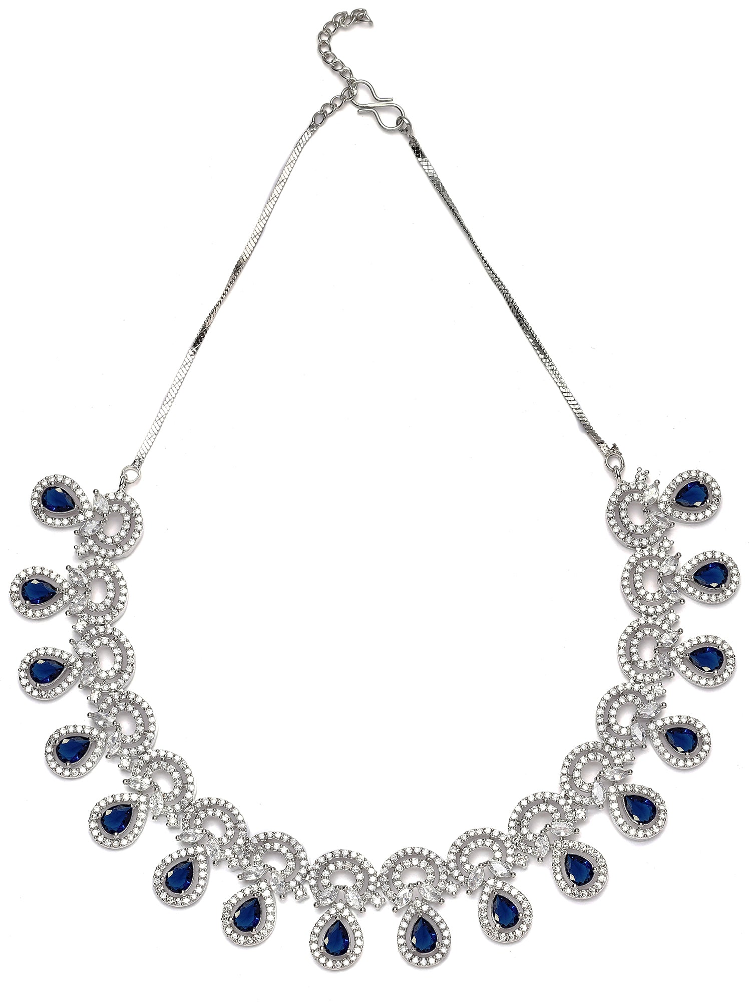 Karatcart Silver Plated Blue Cubic Zirconia Necklace Set for Women