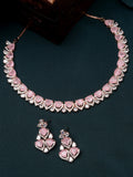 Karatcart Rose Gold Plated Heart Shape Pink Cubic Zirconia Necklace Set for Women