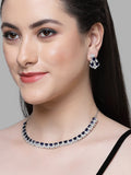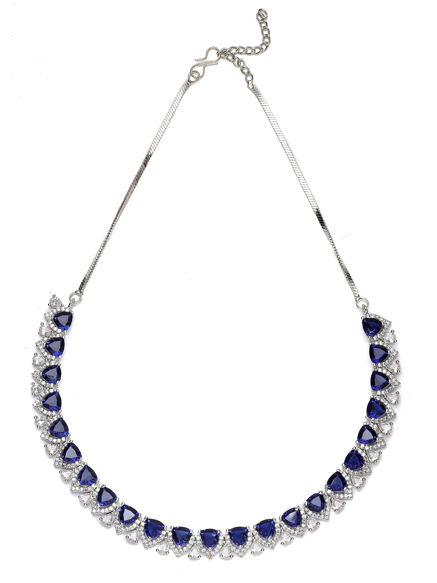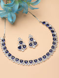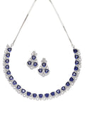 Karatcart Silver Plated Heart Shape Blue Cubic Zirconia Necklace Set for Women