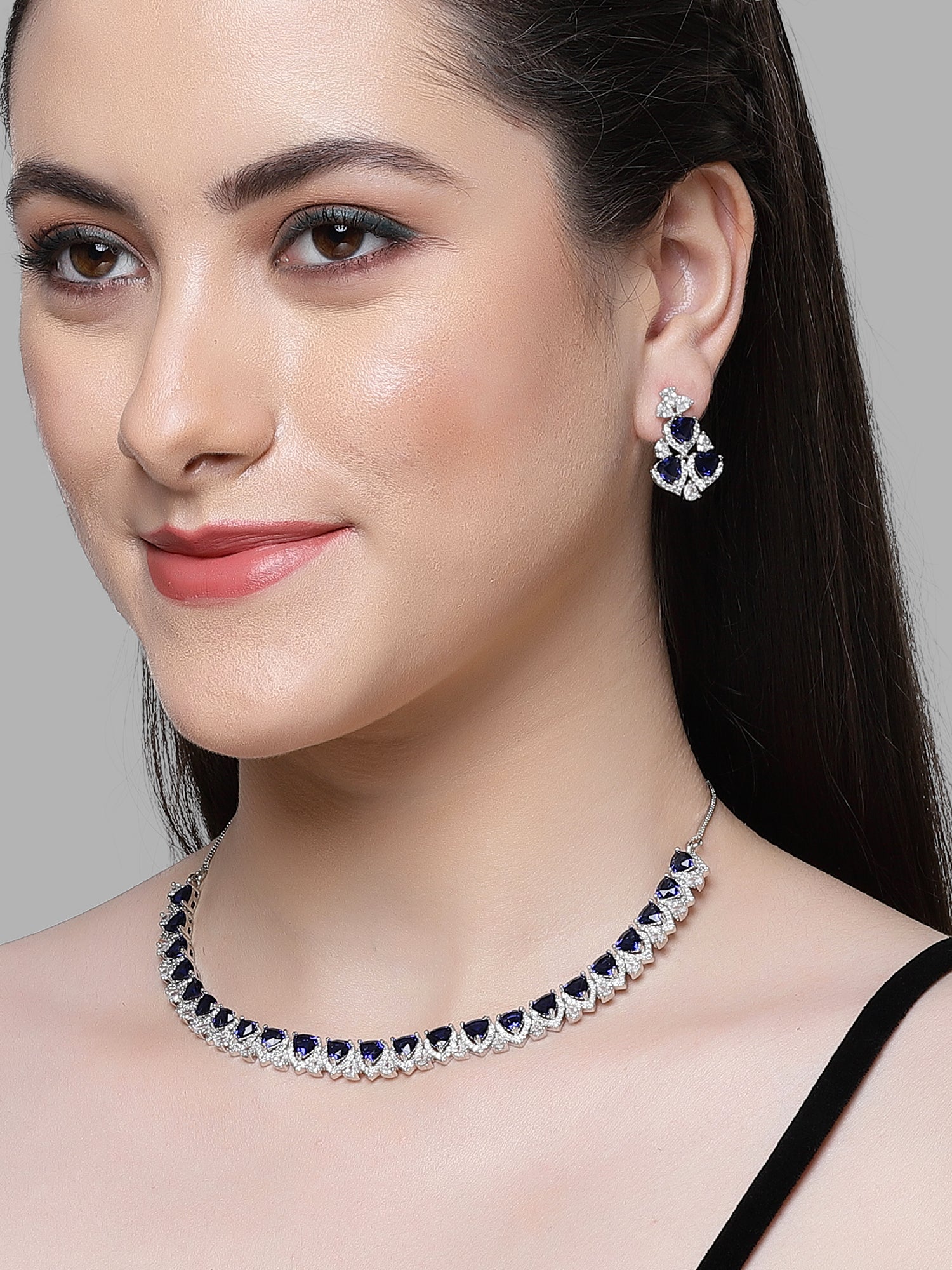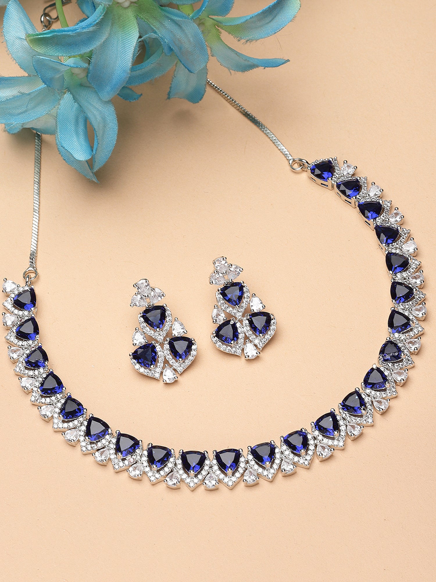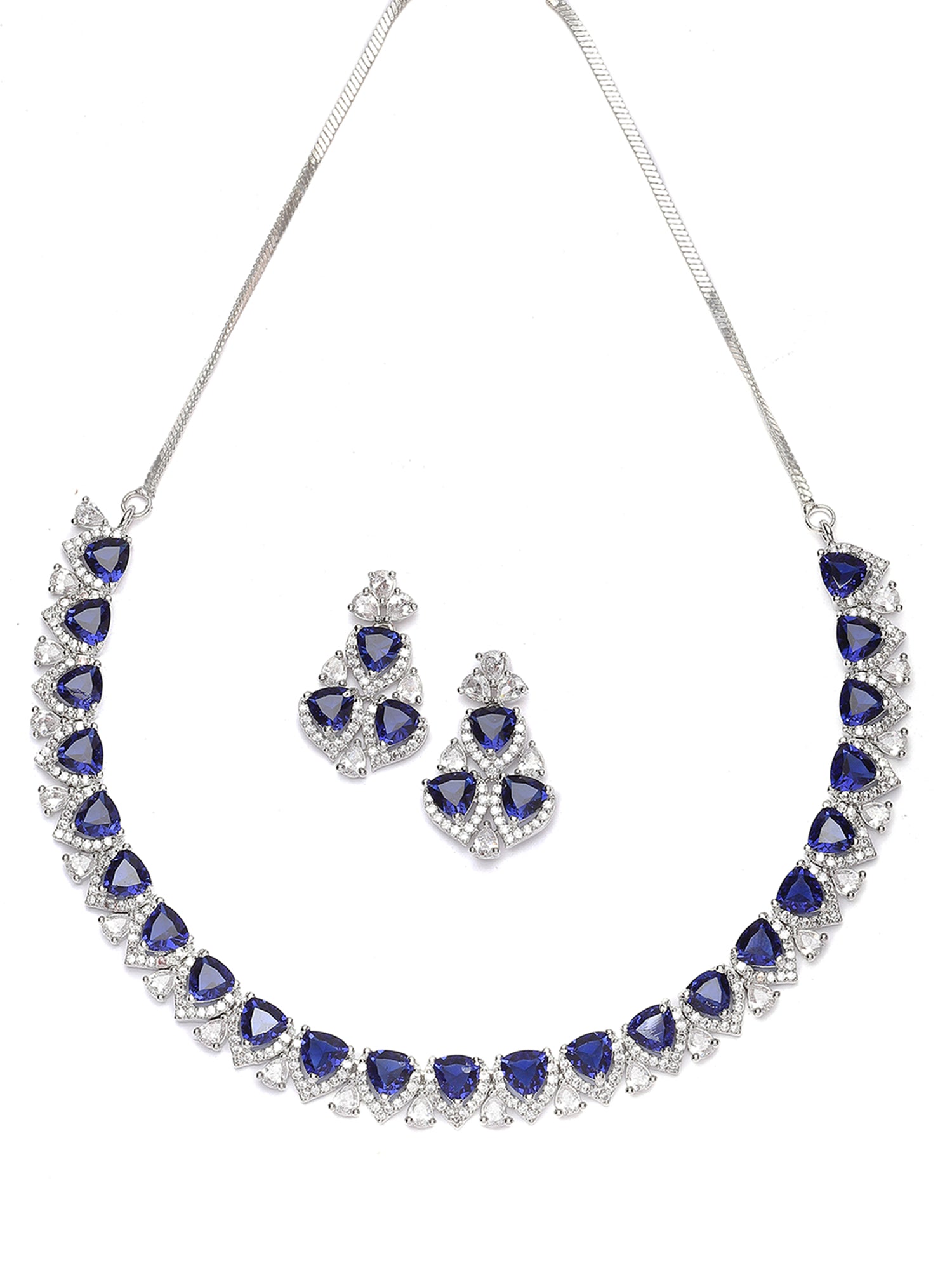 - This is a Blue Jewellery Set by Brand Karatcart which has American Diamond stones.This is Silver Plated. We at KARATCART understand your desire to look the best on any day & we thrive in making any day an occasion. Every individual at Karatcart carries a passion for jewellery and it reflects in our beautiful designs as well as in our breathtaking craftsmanship. We create unique jewellery so you can make heads turn..
