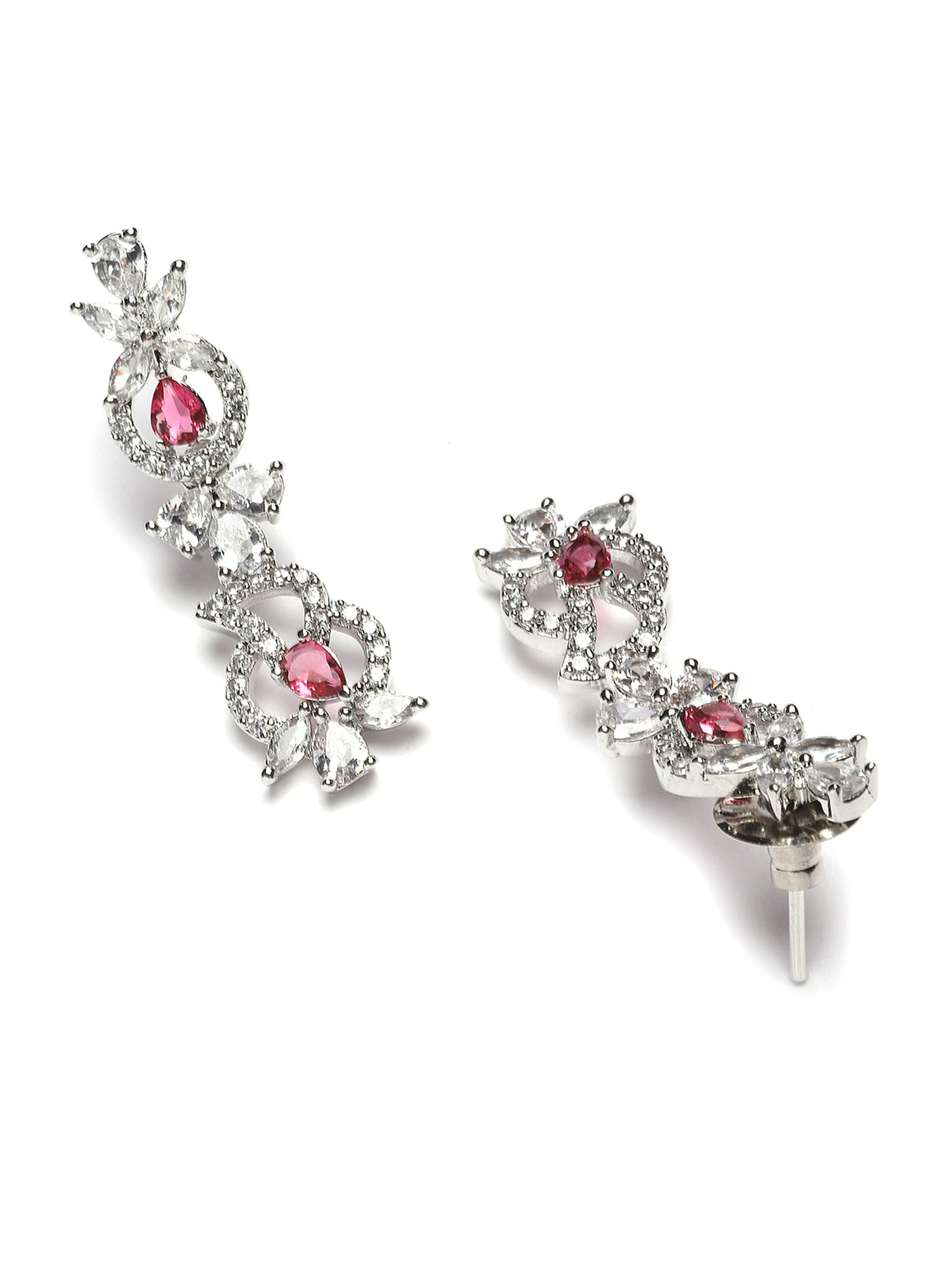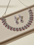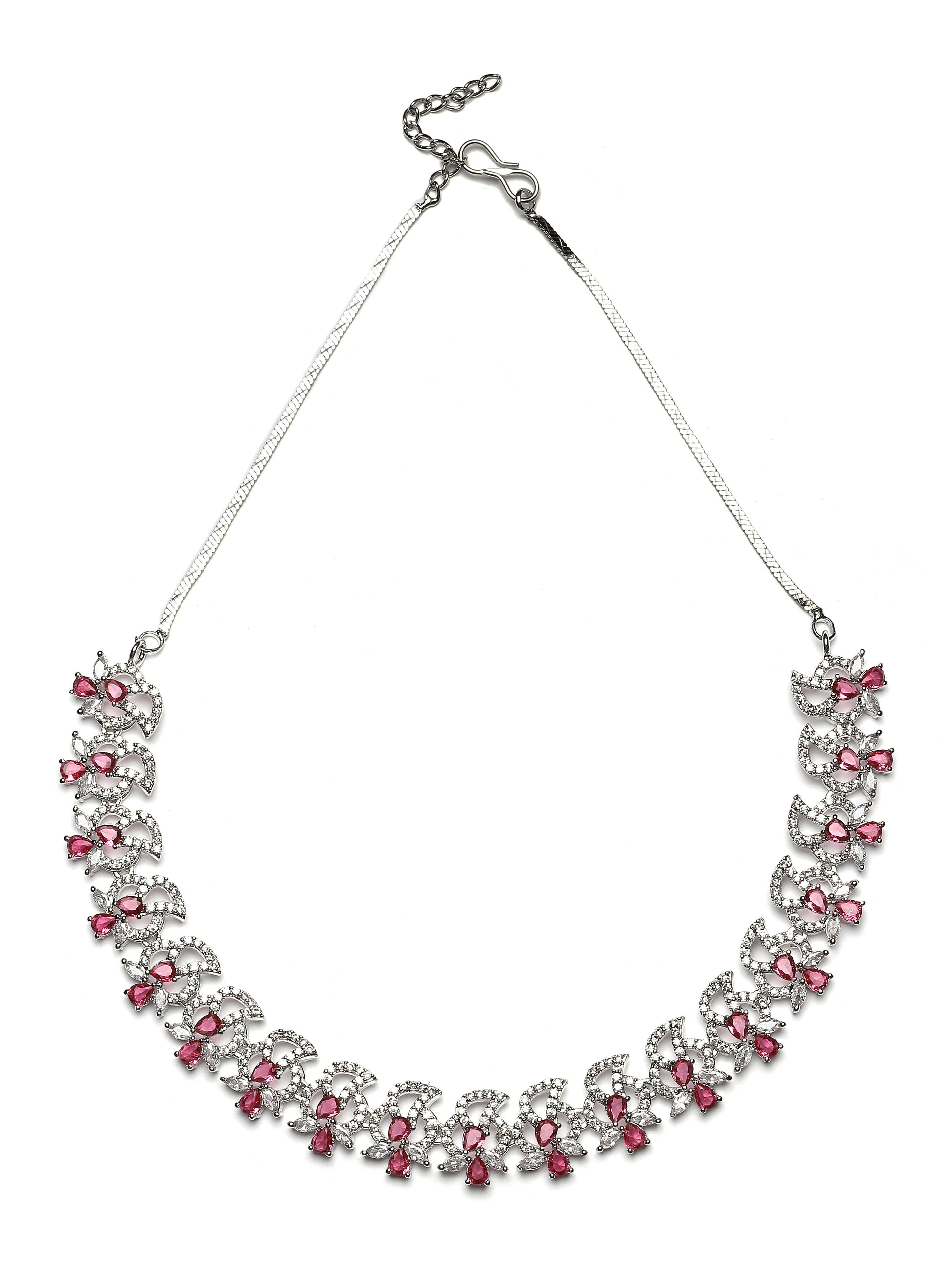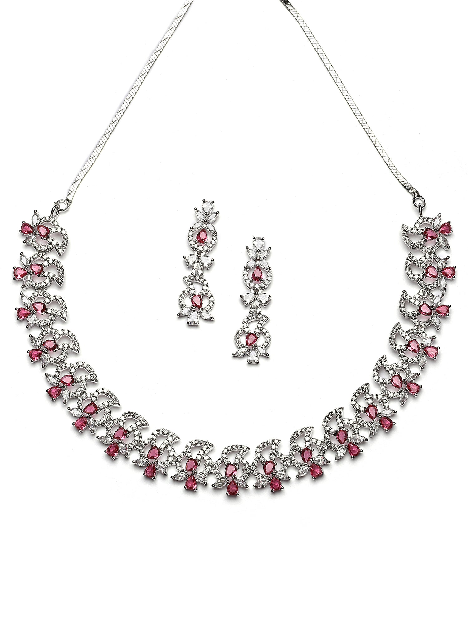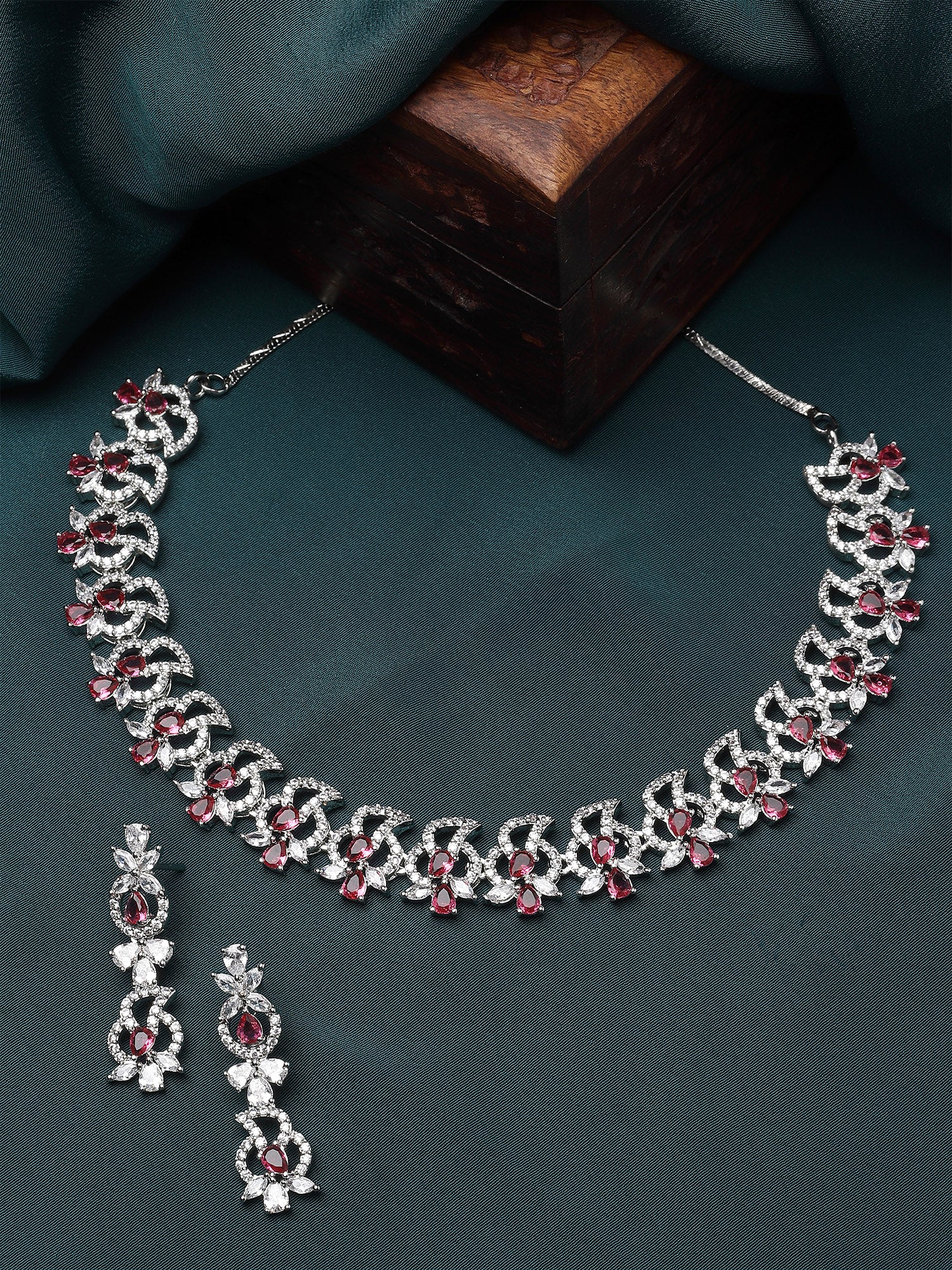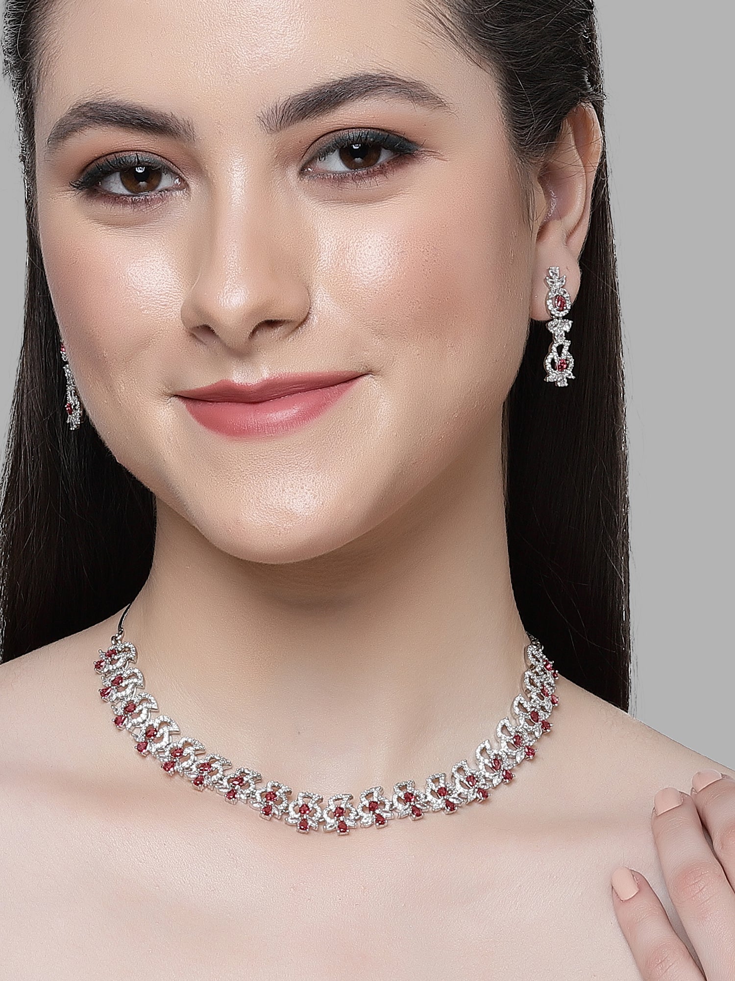 Karatcart Red Cubic Zirconia Studded Silver Plated Necklace Set for Women