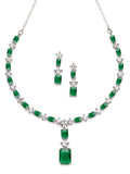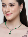 Karatcart Silver Tone Square Green Cubic Zirconia Necklace Set for Women
