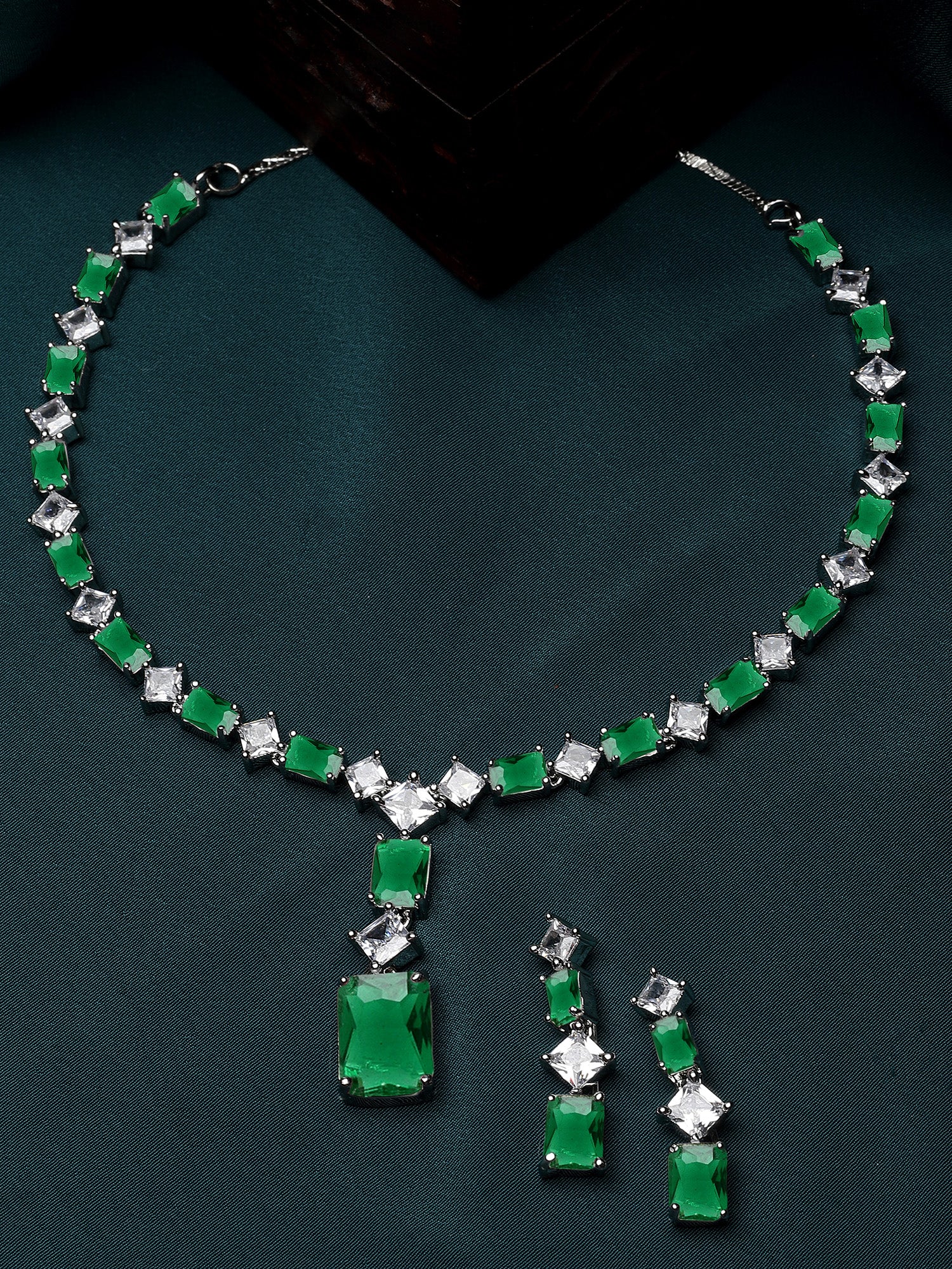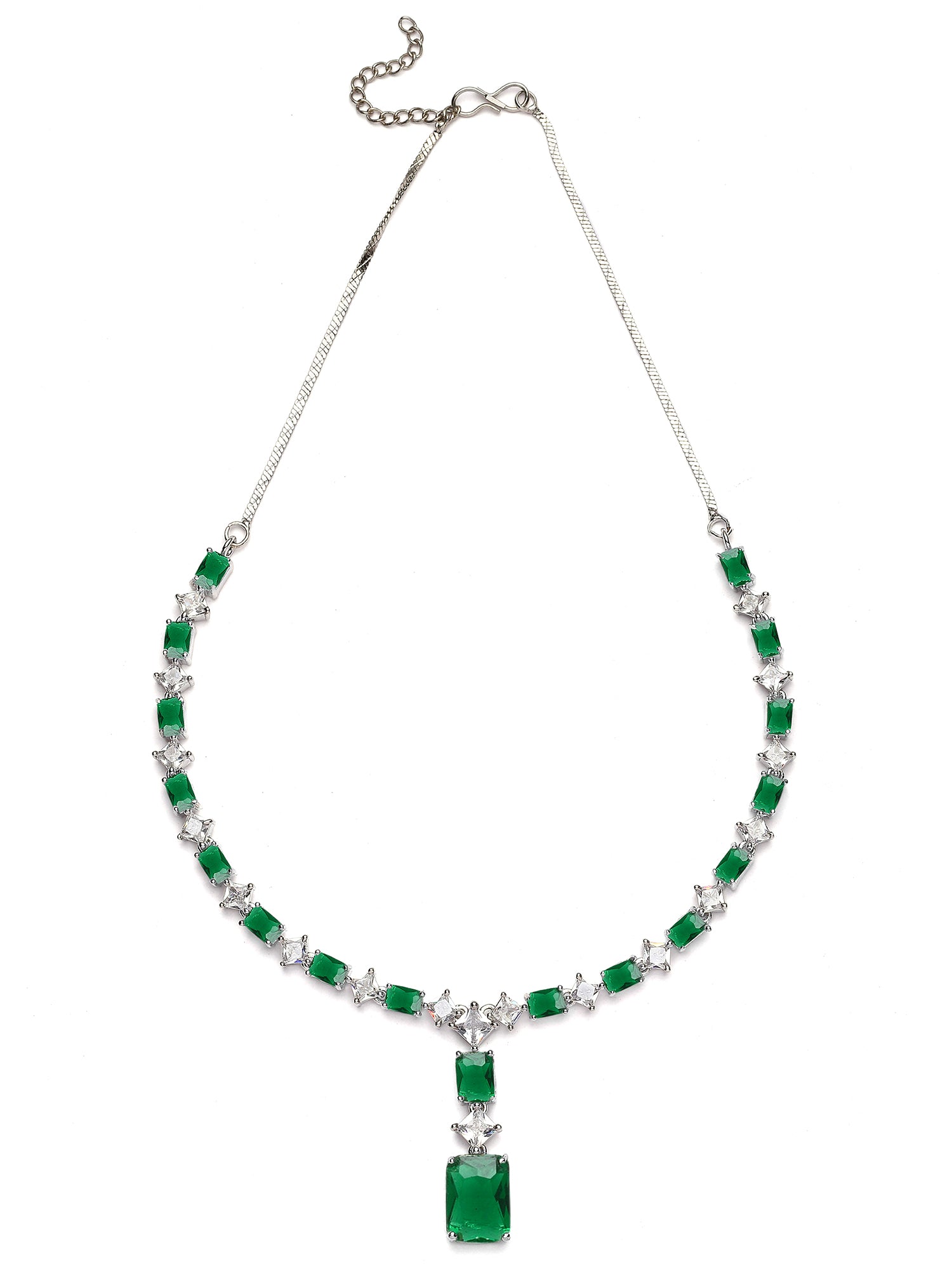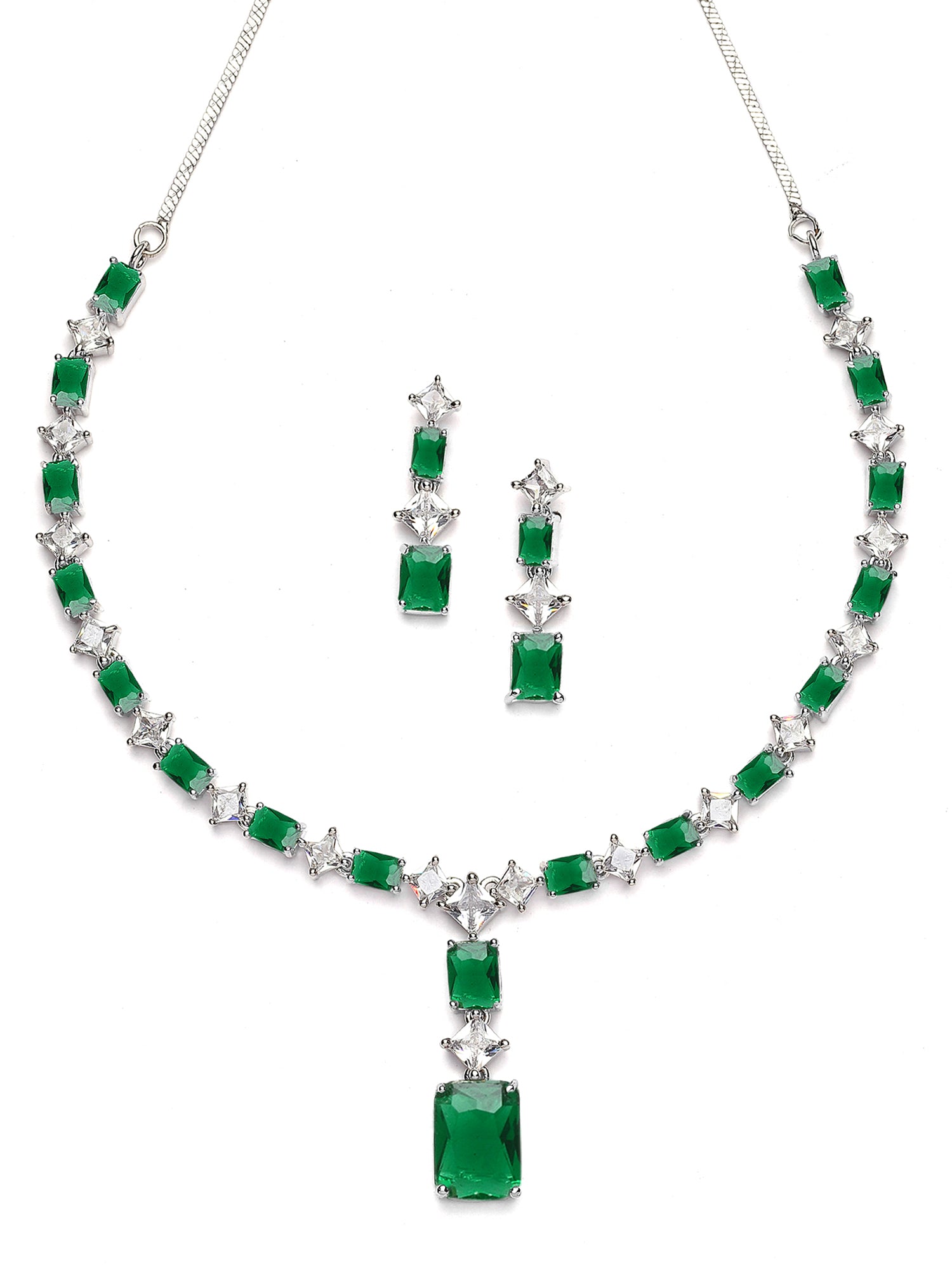 - Karatcart Silver Tone Square Green Cubic Zirconia Necklace Set for Women . Our products are designed with high-quality material and these products are enhanced with plating that are skin-friendly & with love to reach your heart.