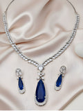 Karatcart Silver Tone Blue Drop Shape Cubic Zirconia Studded Jewellery Set for Women