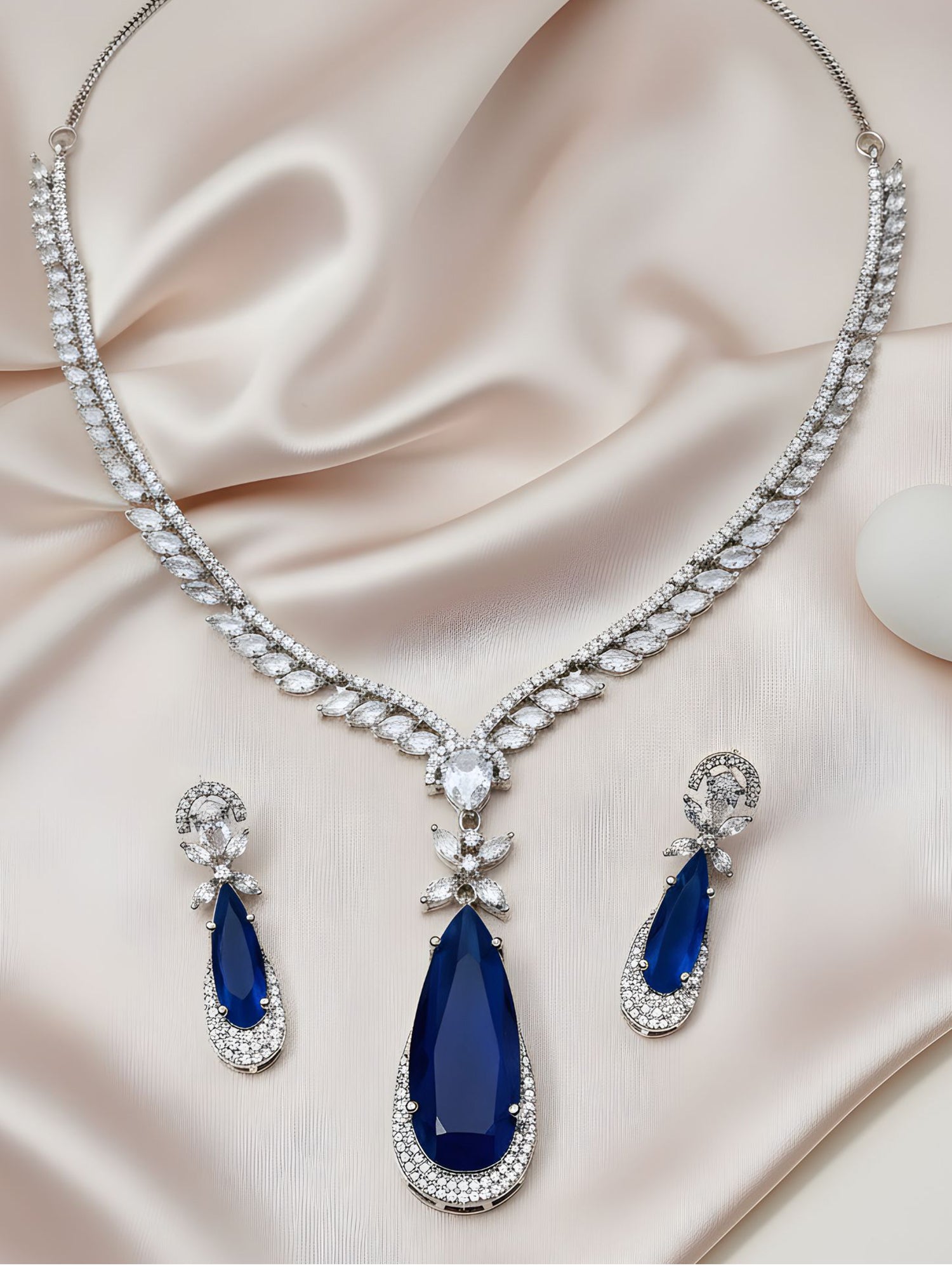 - This is a Blue Jewellery Set by Brand Karatcart which has American Diamond stones.This is Silver Plated. We at KARATCART understand your desire to look the best on any day & we thrive in making any day an occasion. Every individual at Karatcart carries a passion for jewellery and it reflects in our beautiful designs as well as in our breathtaking craftsmanship. We create unique jewellery so you can make heads turn..