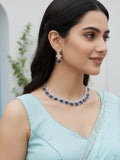 Karatcart Silver Tone Blue Triangular Shape Cubic Zirconia Necklace Set for Women