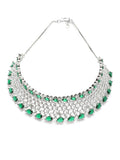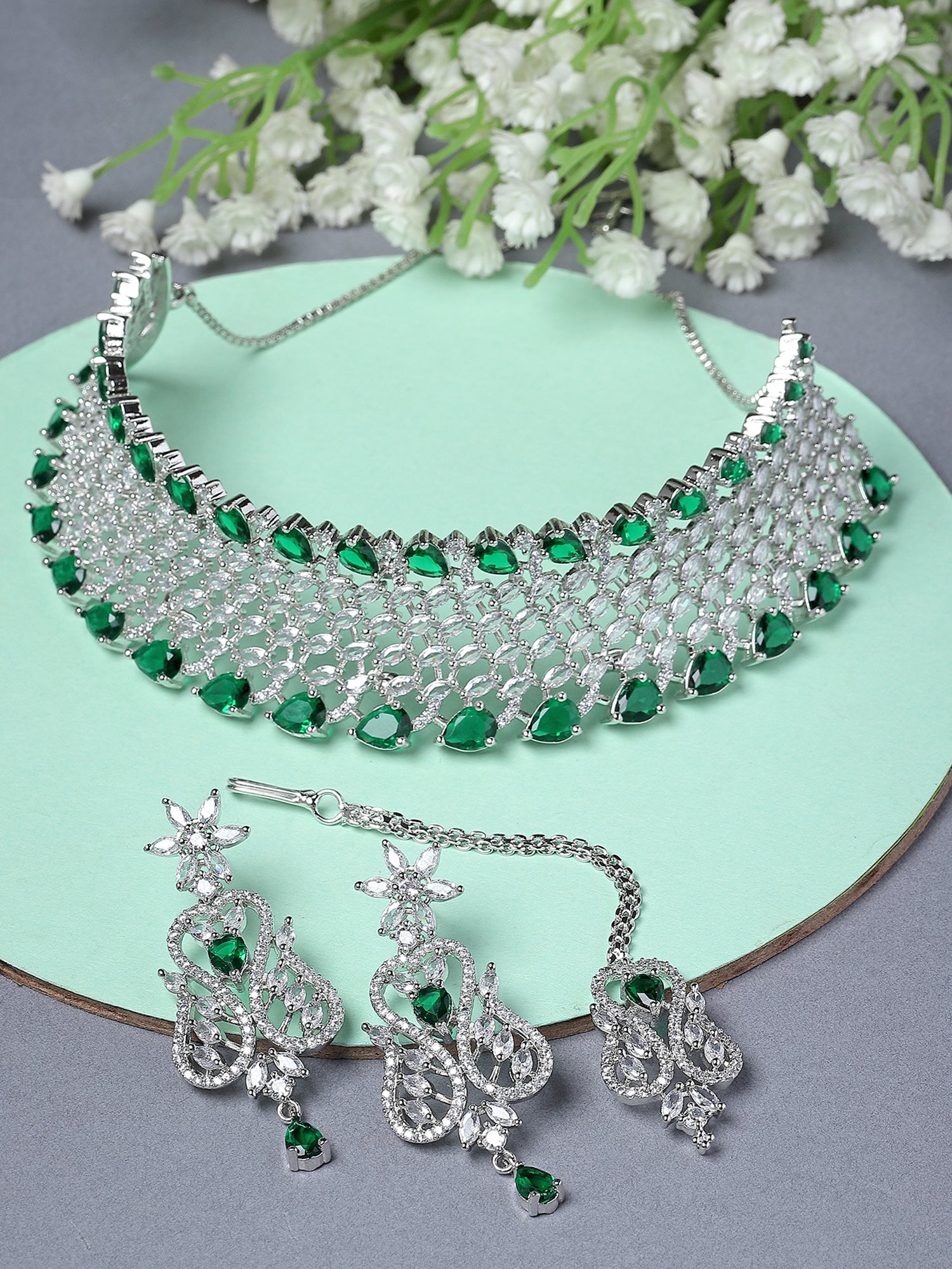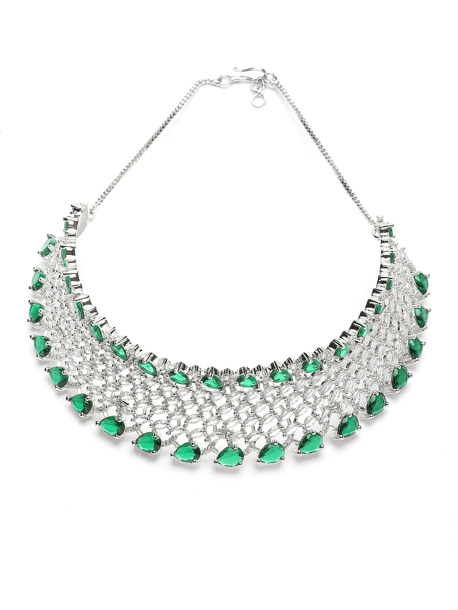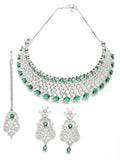 Karatcart Green Cubic Zirconia Silver Plated Choker Necklace Set for Women