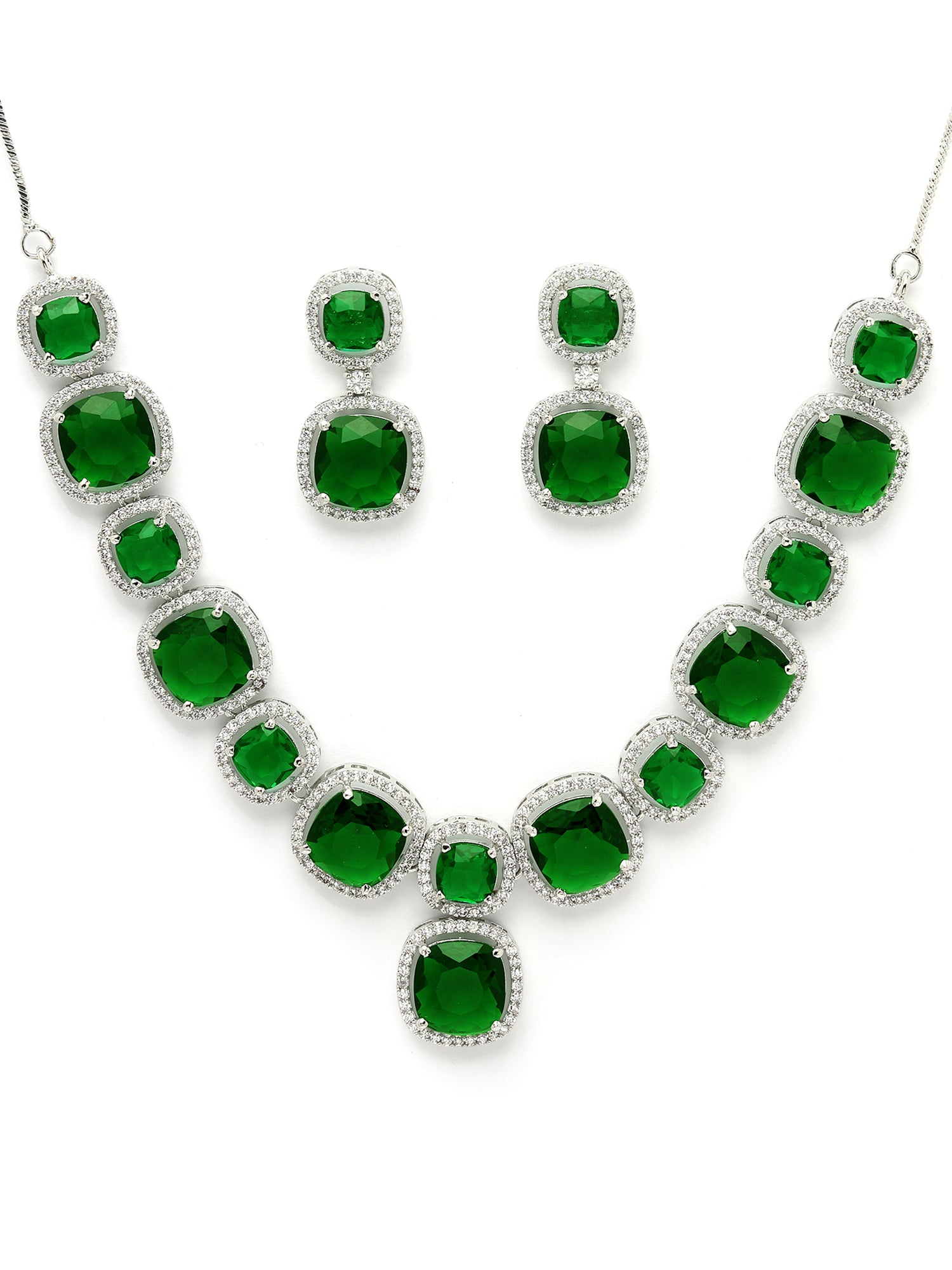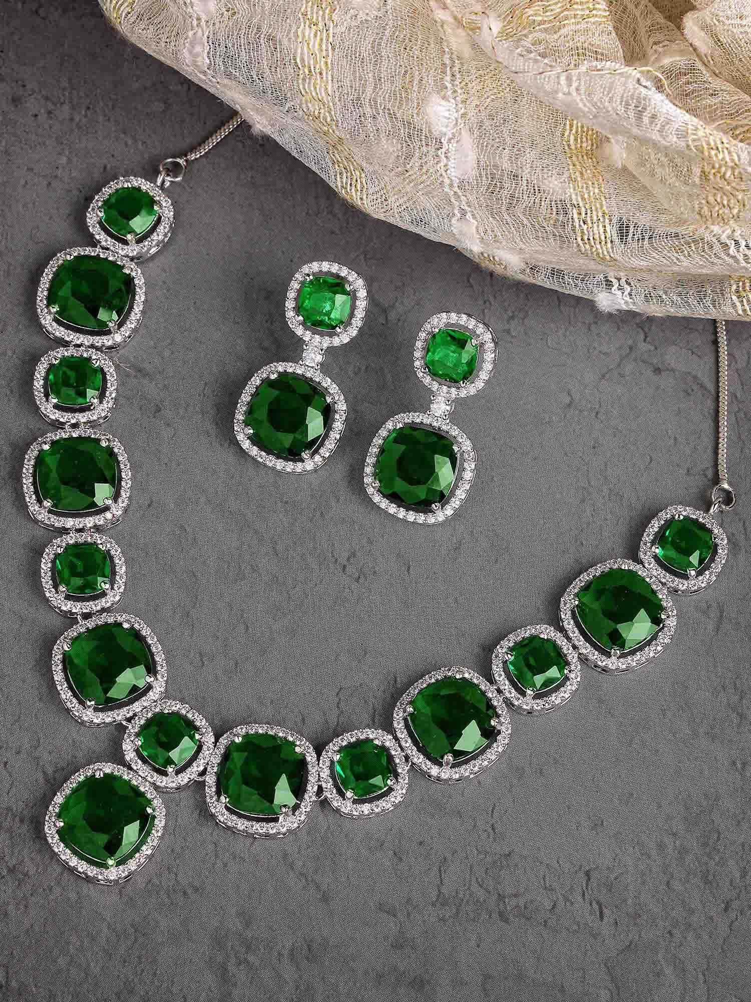 - This is a Green Jewellery Set by Brand Karatcart which has American Diamond stones.This is Silver Plated. We at KARATCART understand your desire to look the best on any day & we thrive in making any day an occasion. Every individual at Karatcart carries a passion for jewellery and it reflects in our beautiful designs as well as in our breathtaking craftsmanship. We create unique jewellery so you can make heads turn..