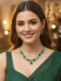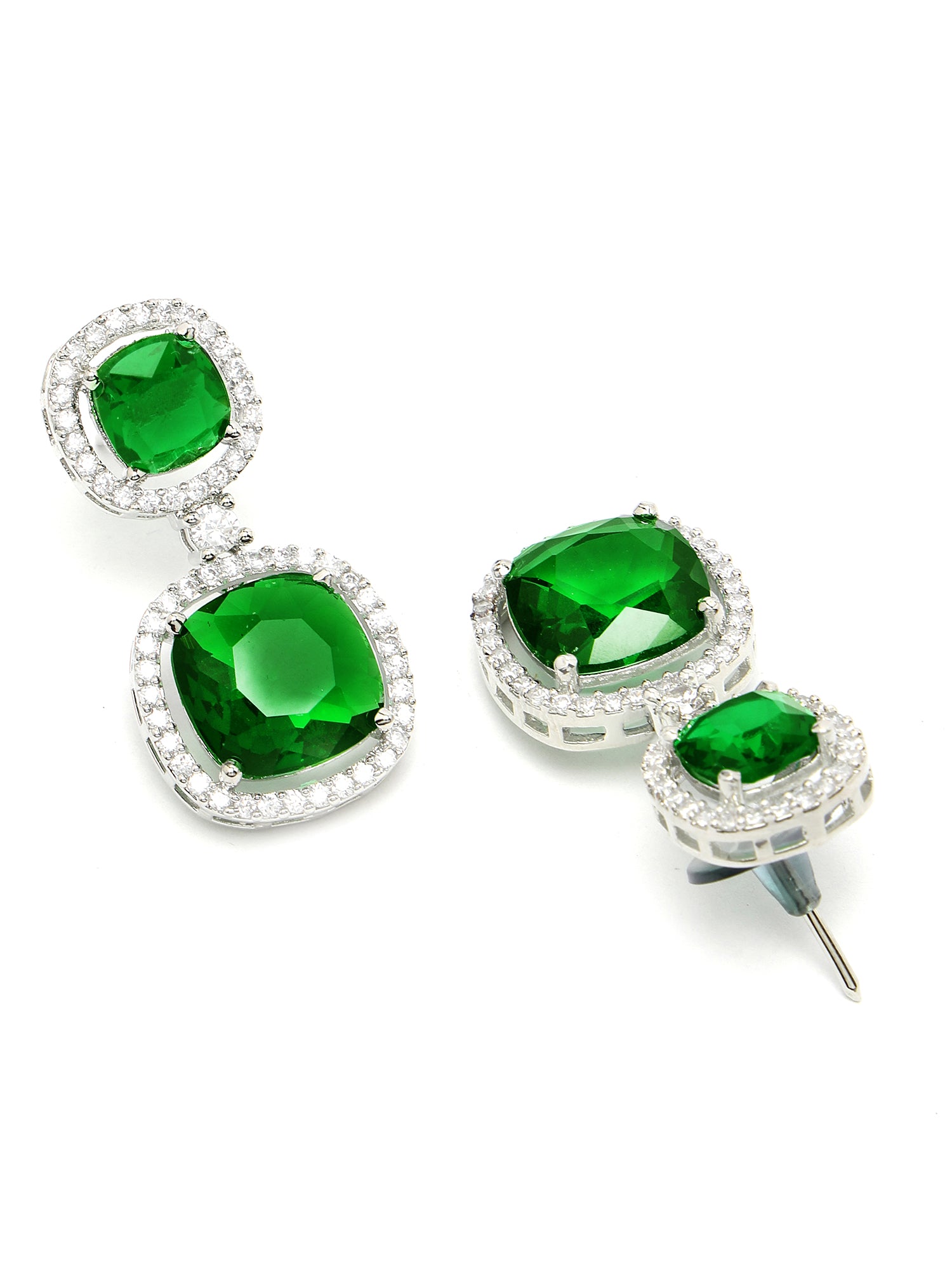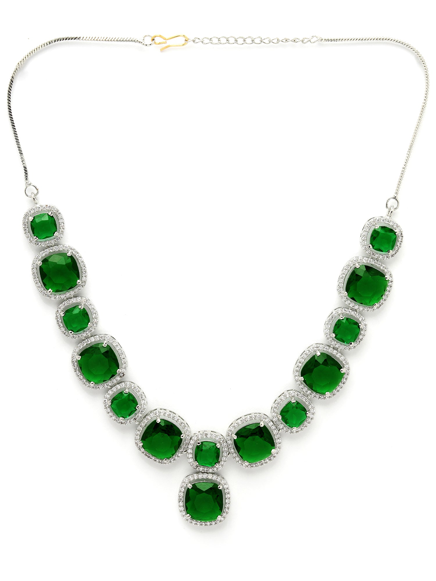 Karatcart Silver Plated Green Cubic Zirconia Traditional Jewellery Set