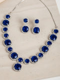 Karatcart Silver Plated Blue Cubic Zirconia Traditional Jewellery Set