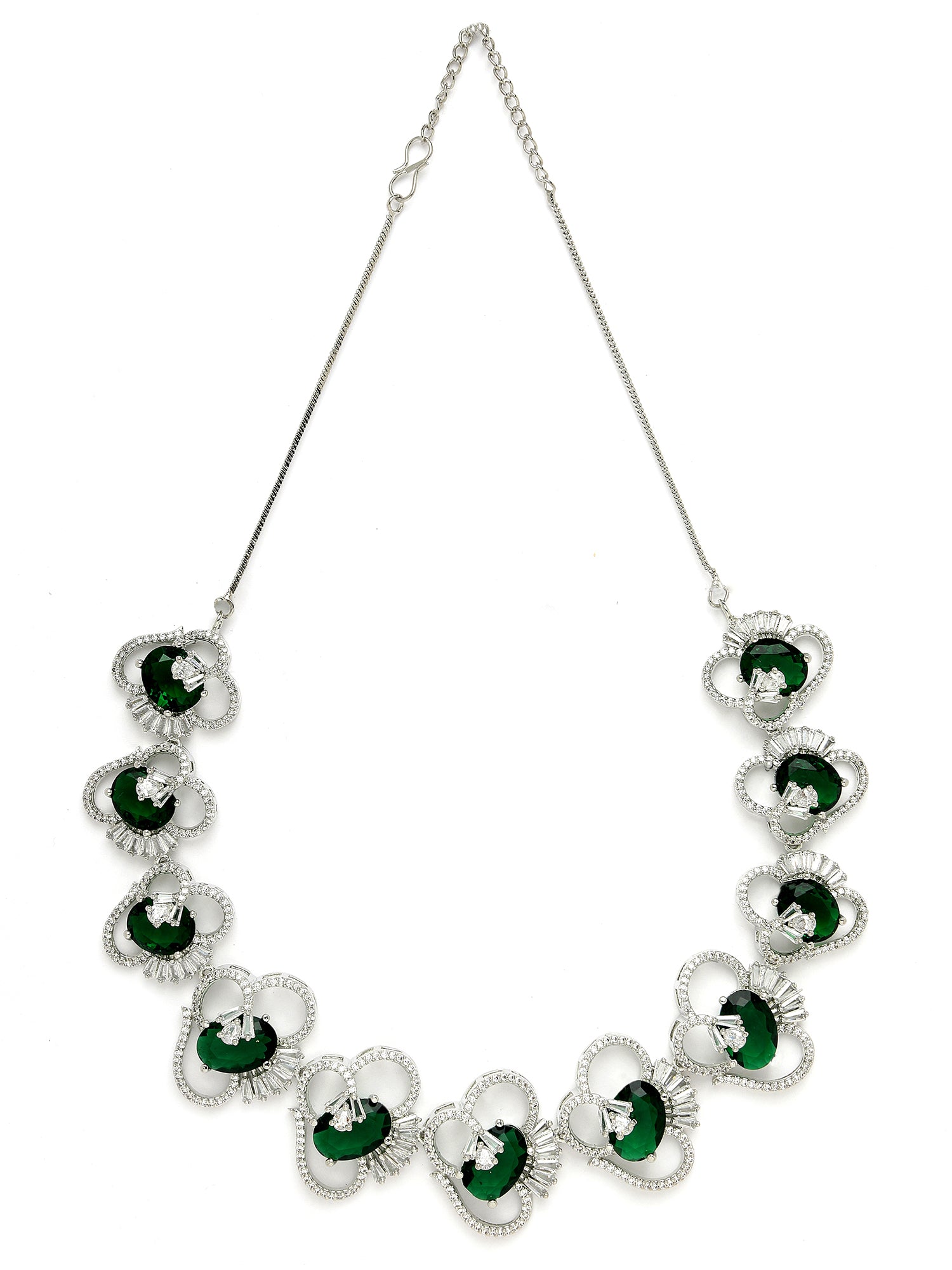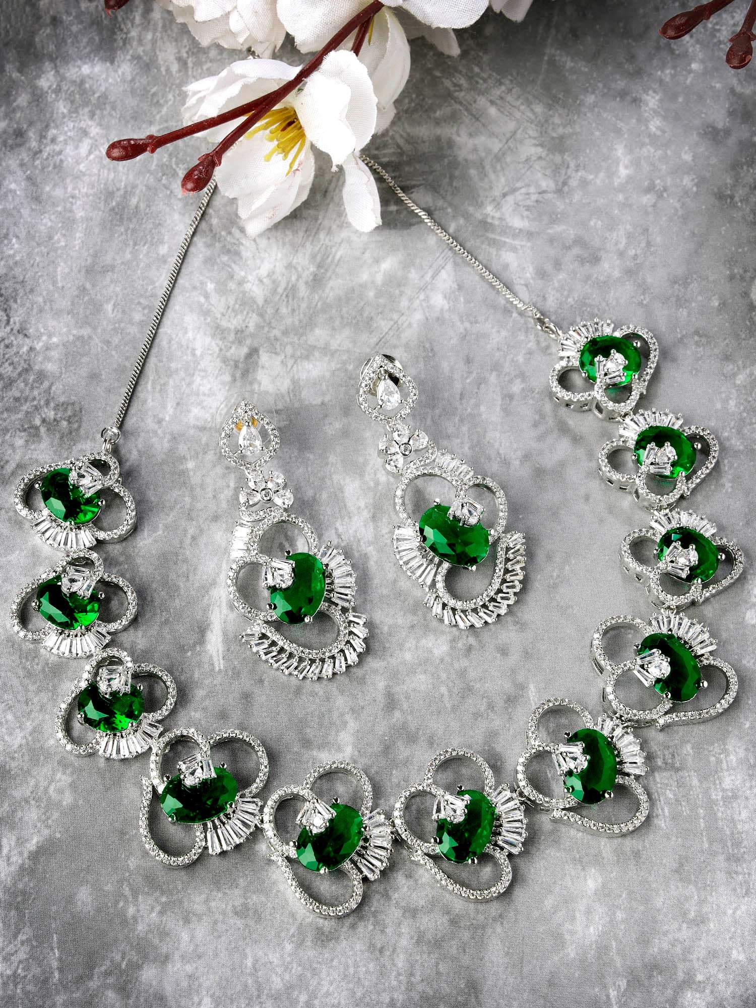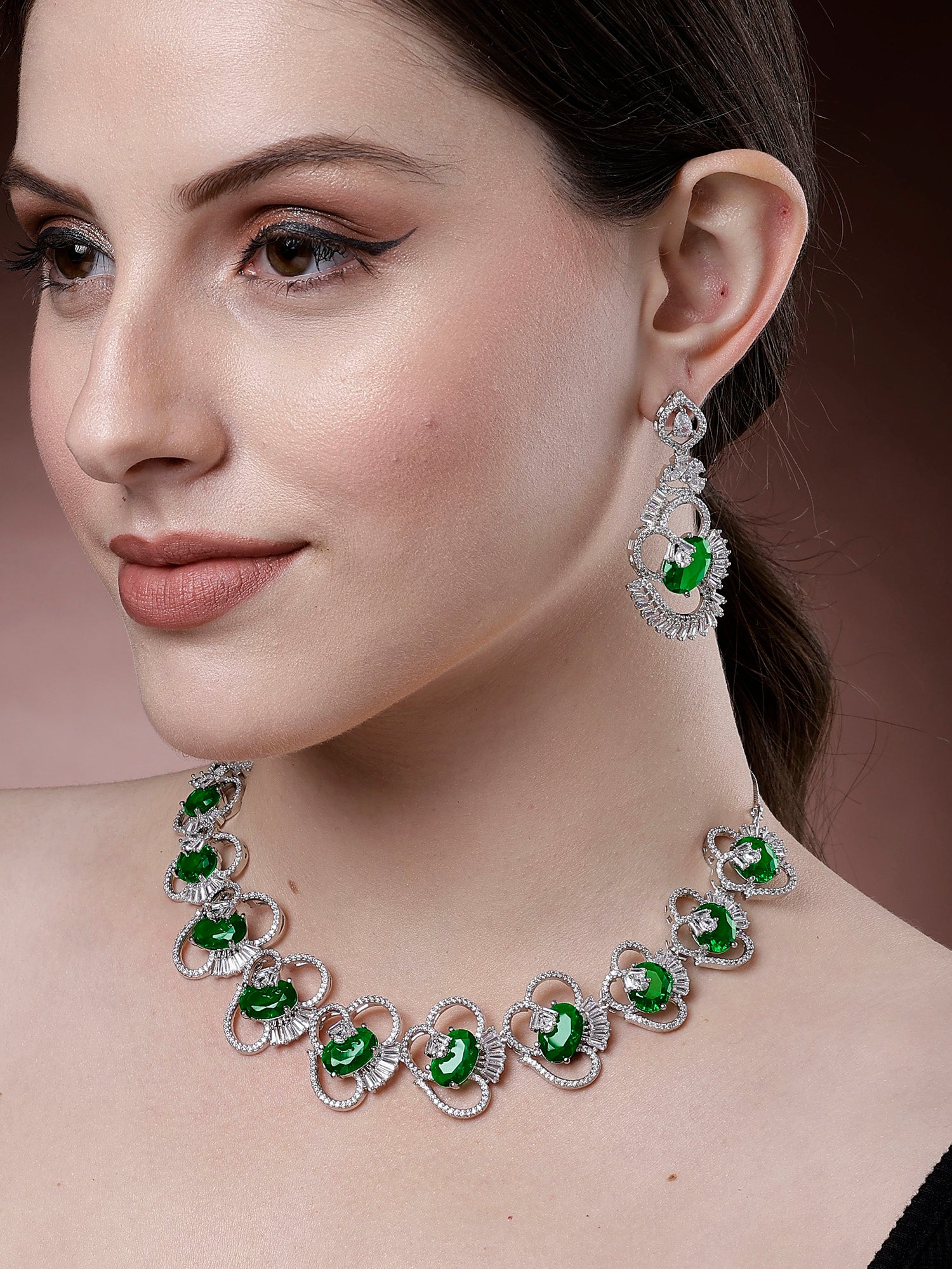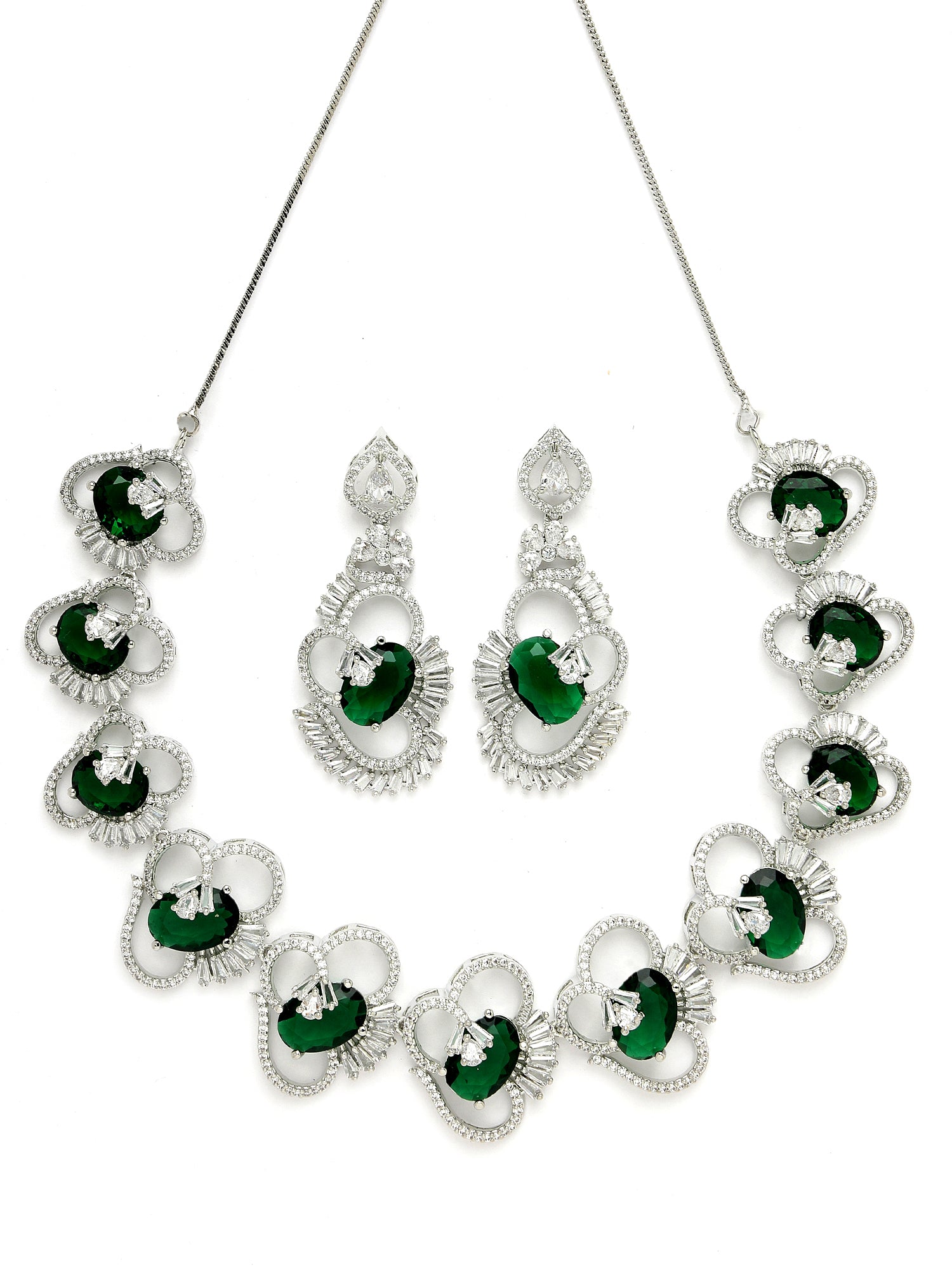 - This is a Green Jewellery Set by Brand Karatcart which has American Diamond stones.This is Silver Plated. We at KARATCART understand your desire to look the best on any day & we thrive in making any day an occasion. Every individual at Karatcart carries a passion for jewellery and it reflects in our beautiful designs as well as in our breathtaking craftsmanship. We create unique jewellery so you can make heads turn..