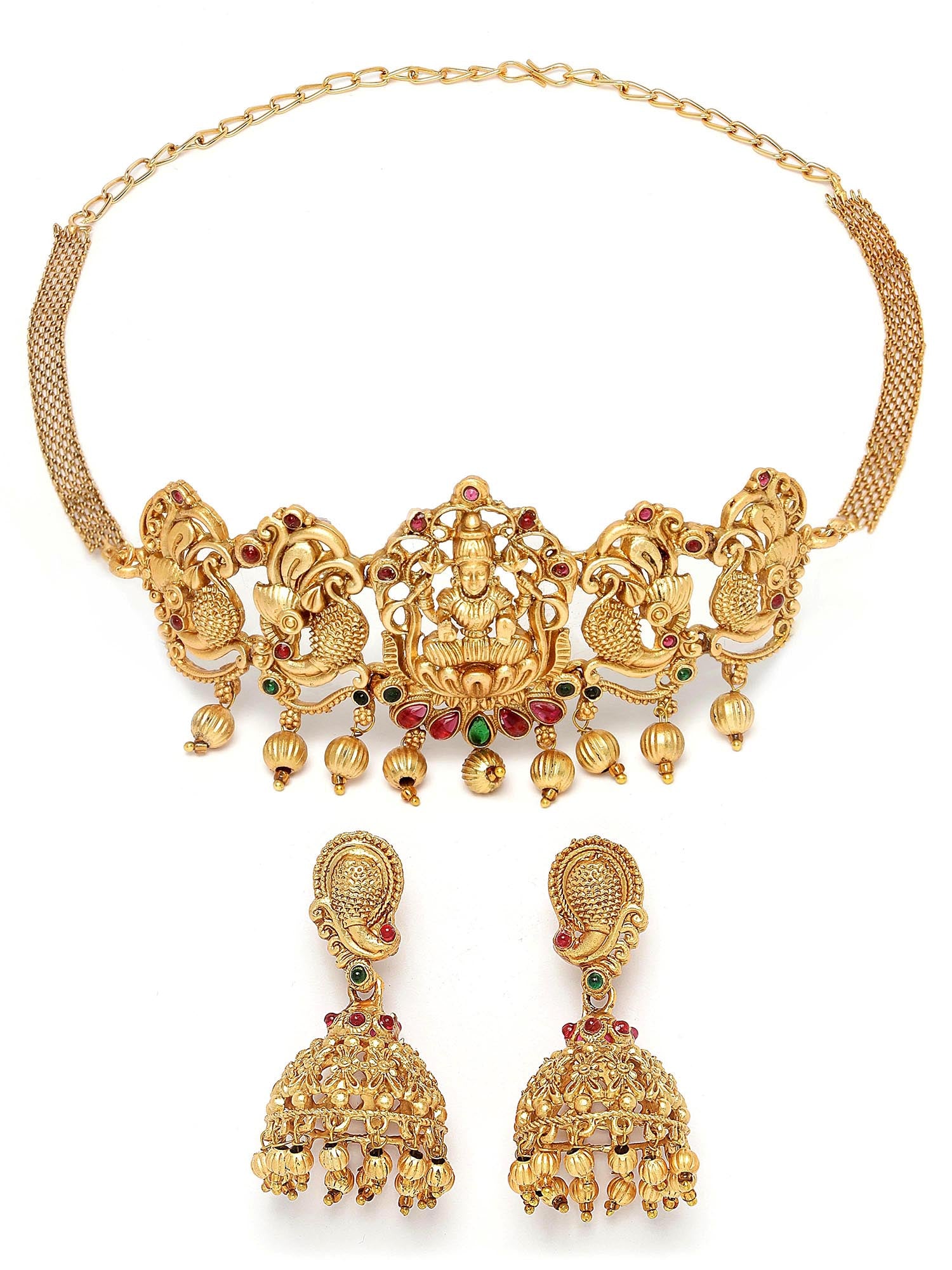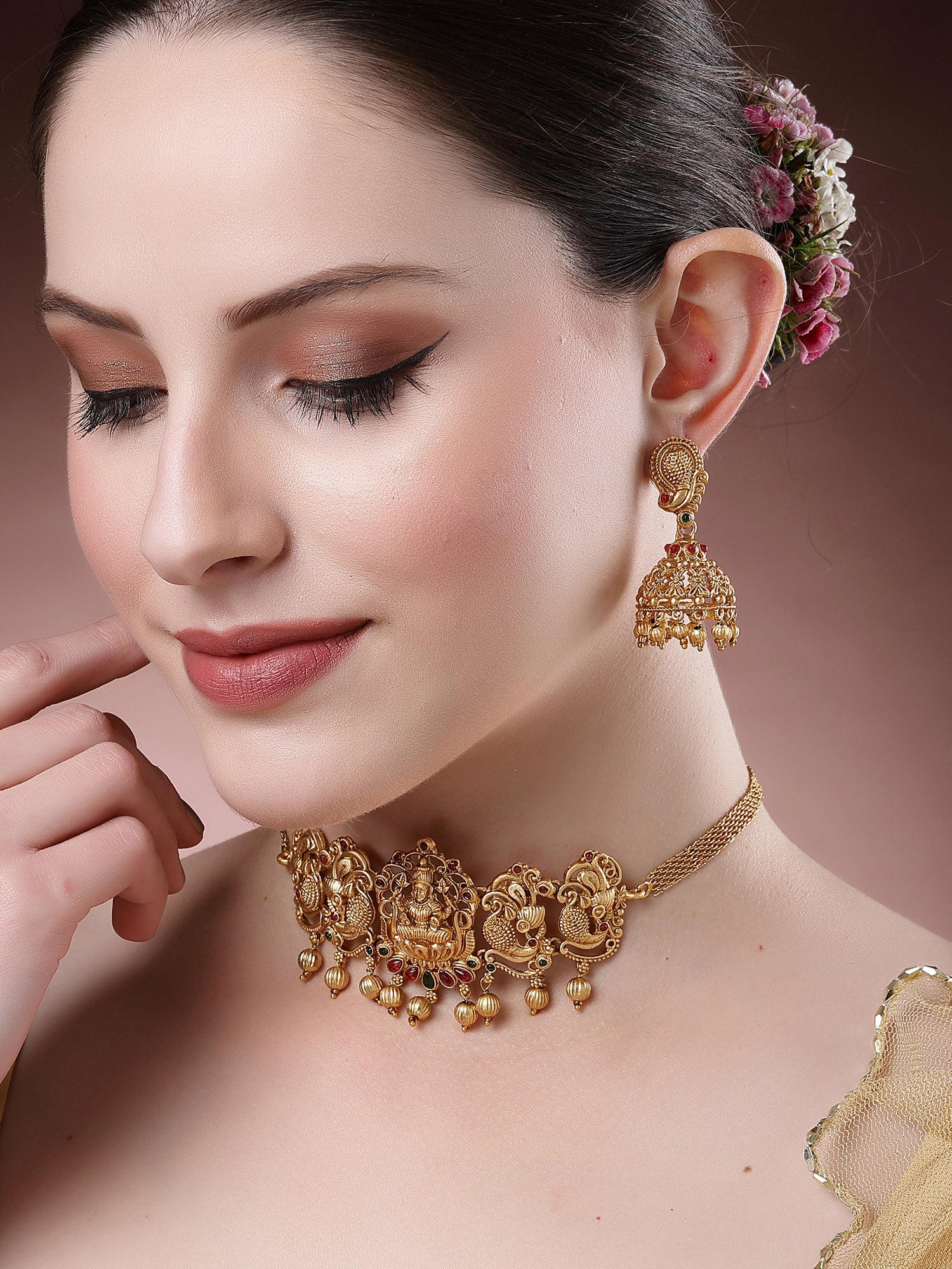 Karatcart Gold-Plated Laxmi Mata Choker Temple Jewellery Set