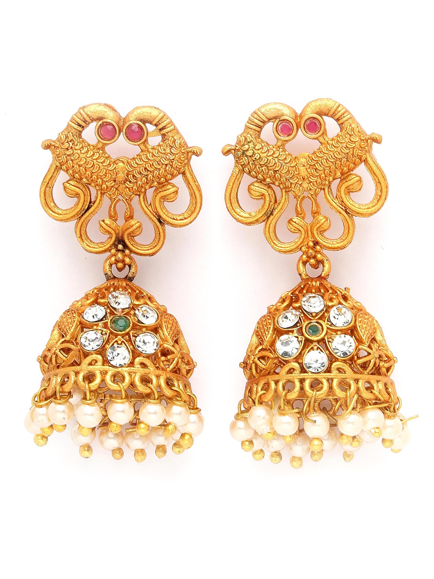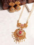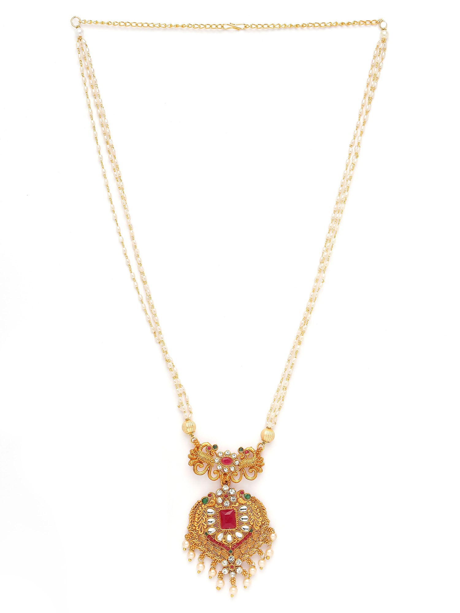 Karatcart Gold-Plated Stone-Studded Pearl Drop Beaded Temple Jewellery Set