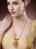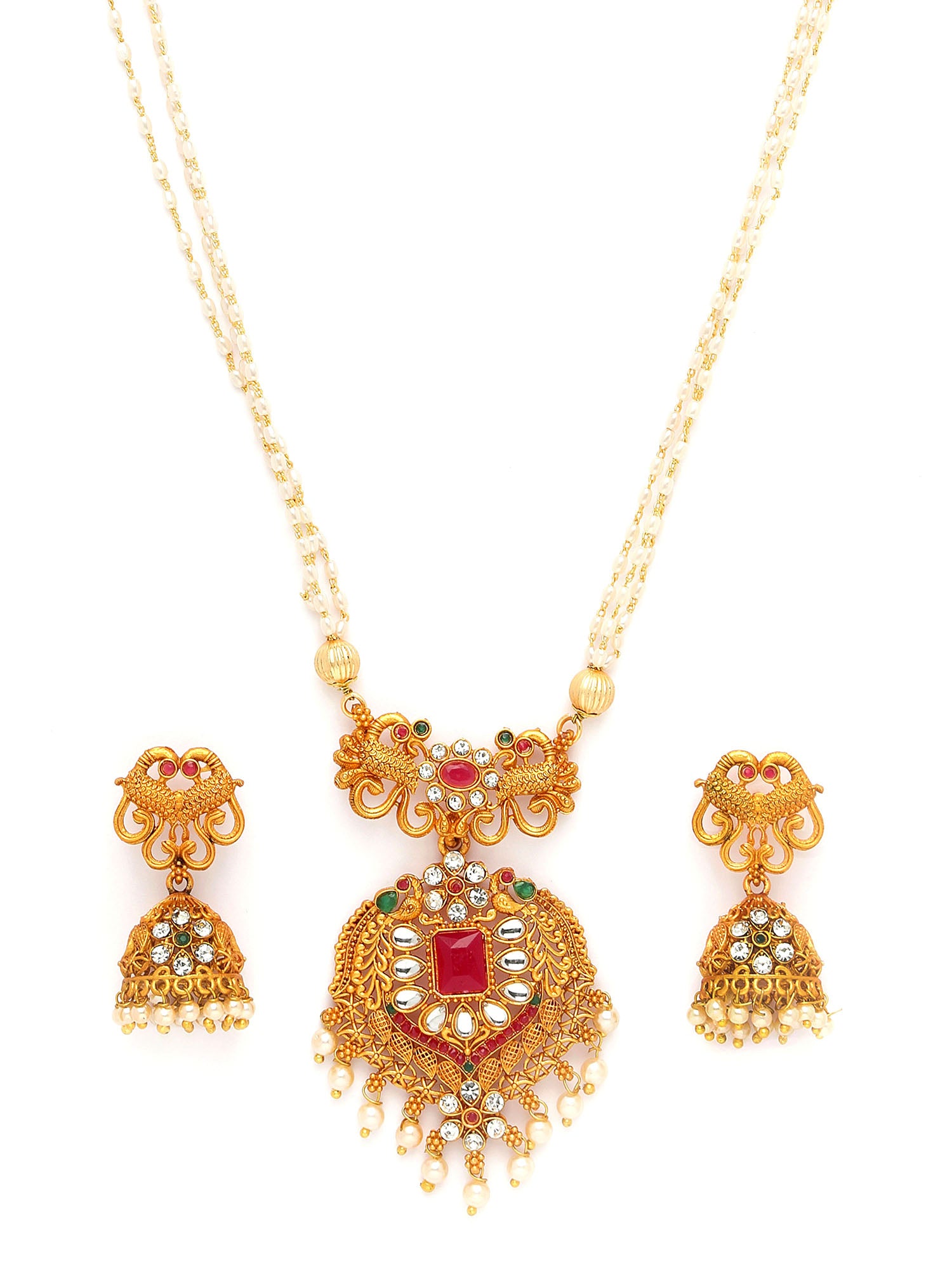 - This is a Red Jewellery Set by Brand Karatcart which has Temple stones.This is Gold Plated. We at KARATCART understand your desire to look the best on any day & we thrive in making any day an occasion. Every individual at Karatcart carries a passion for jewellery and it reflects in our beautiful designs as well as in our breathtaking craftsmanship. We create unique jewellery so you can make heads turn..