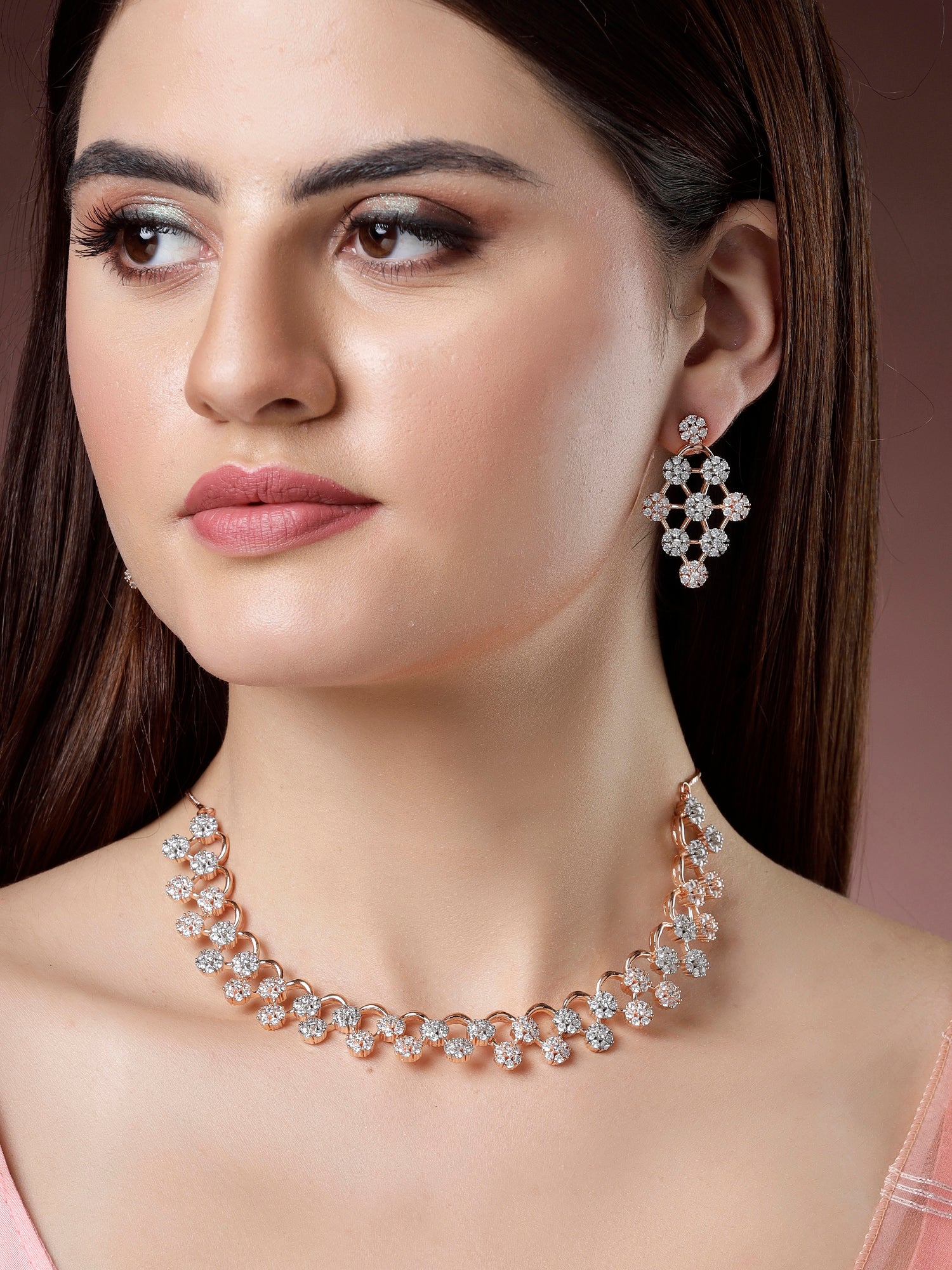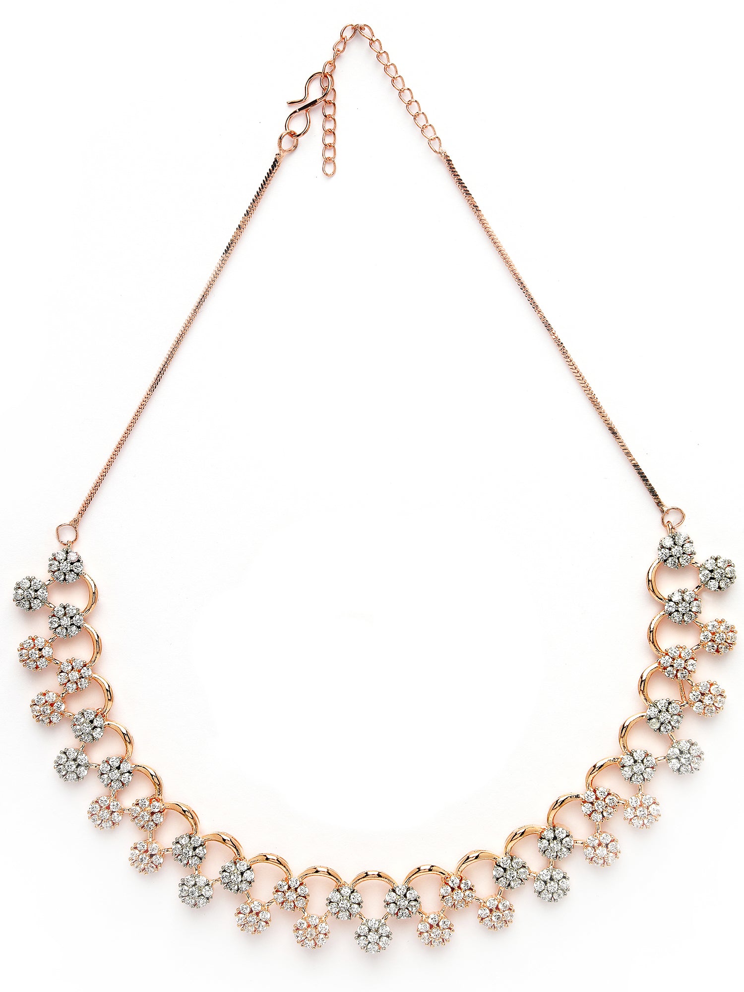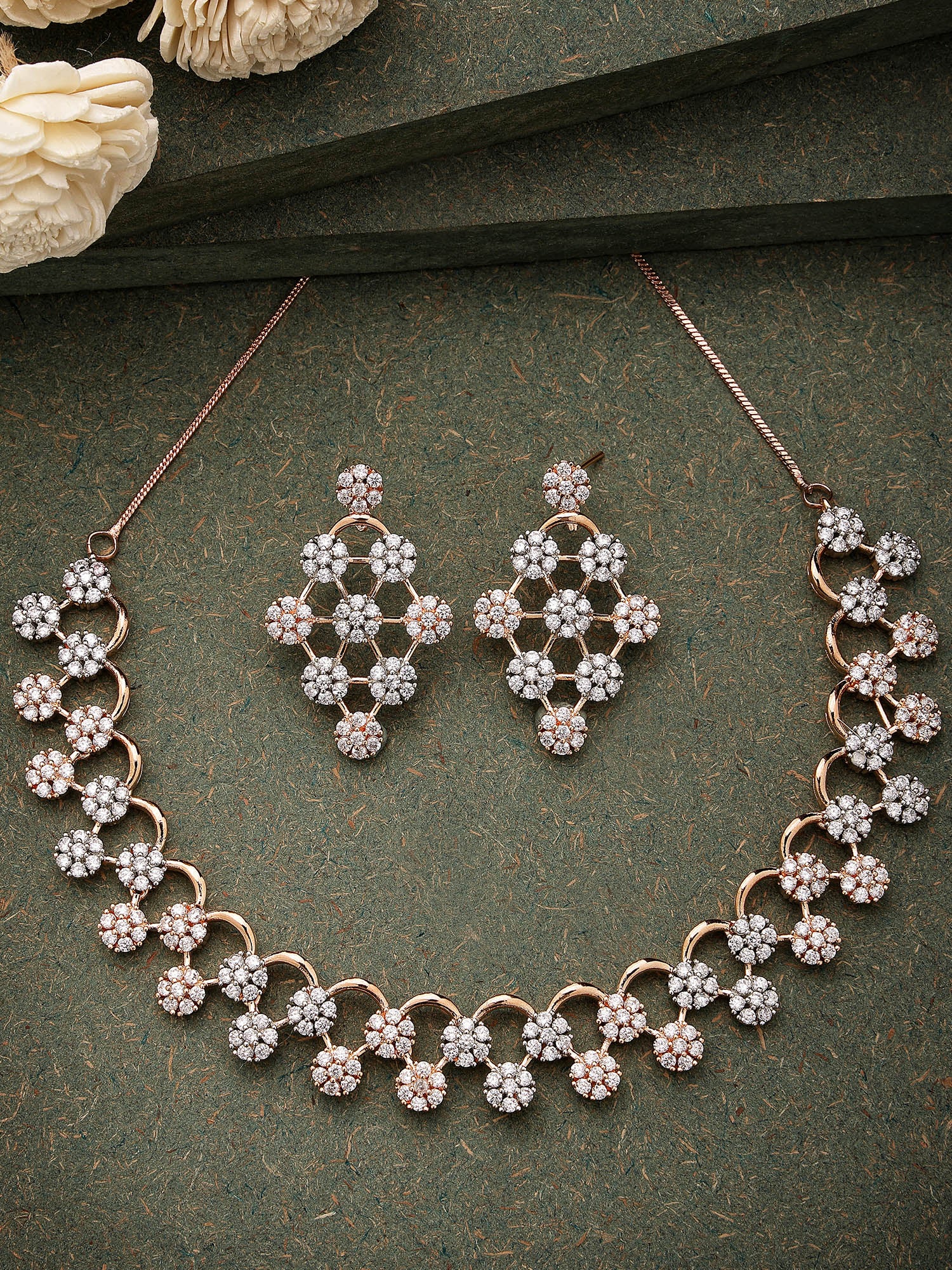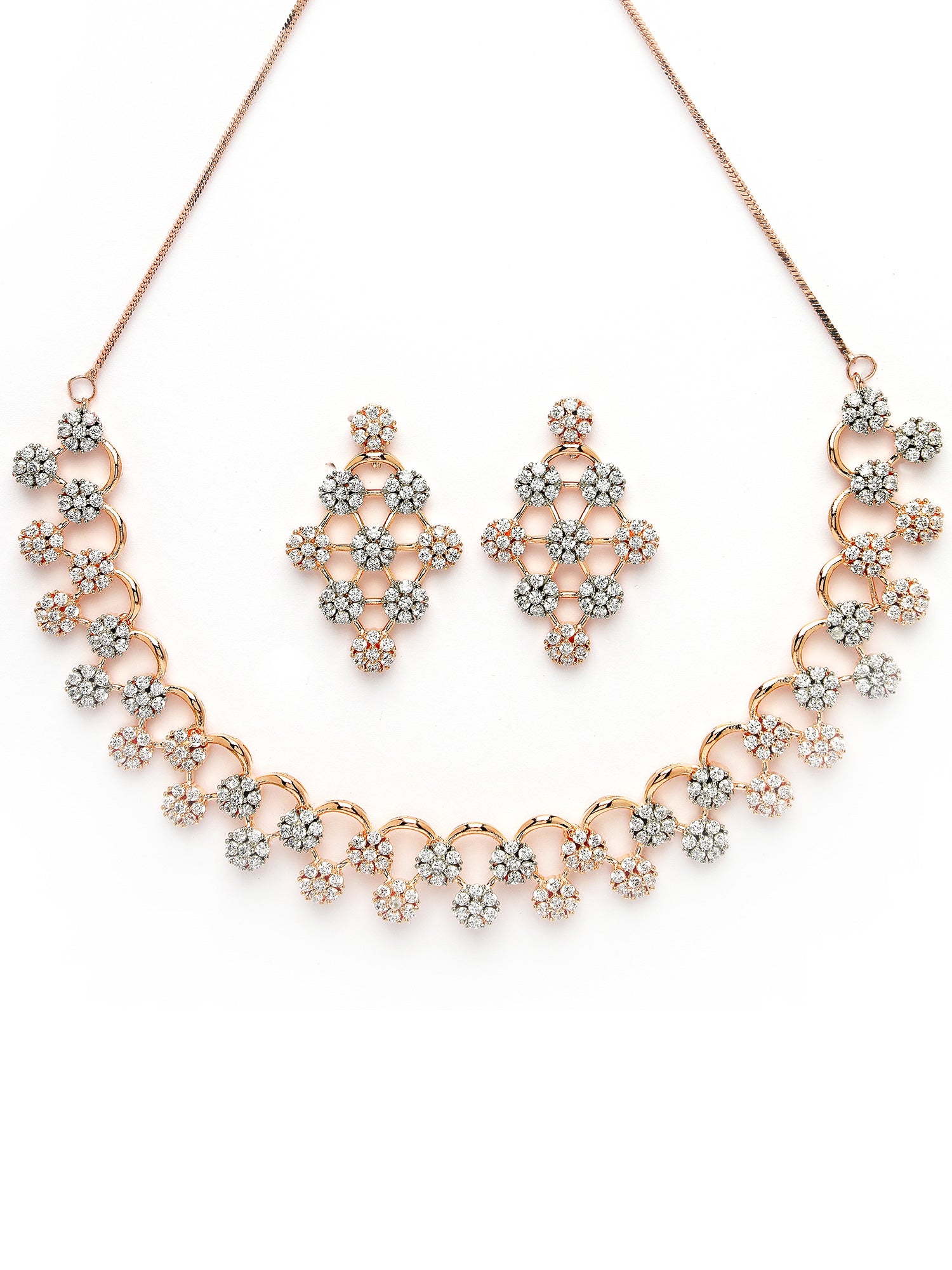 Karatcart Elegant Rose Gold Plated Necklace Set Studded with Cubic Zirconia and Rhodium Finish