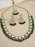 Karatcart Traditional Gold Plated Green Beads Polki Kundan Rani Haar Necklace Set
