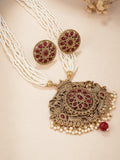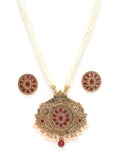 Karatcart Gold Plated Traditional Red Stone Chakra Long Temple Jewellery Set for Women