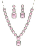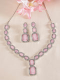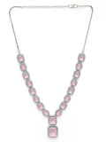 Karatcart Silver Tone Pink Cubic Zirconia Studded Necklace Set for Women