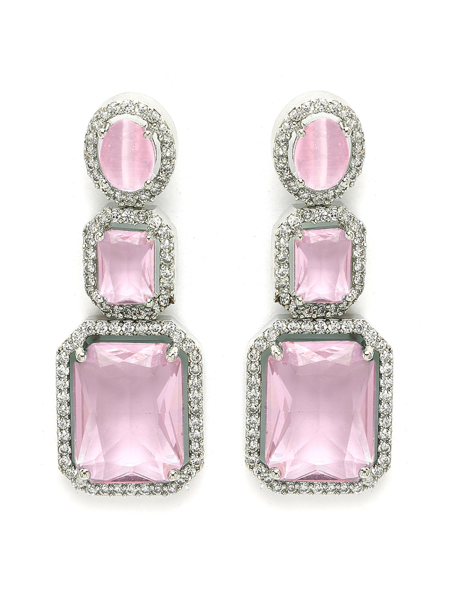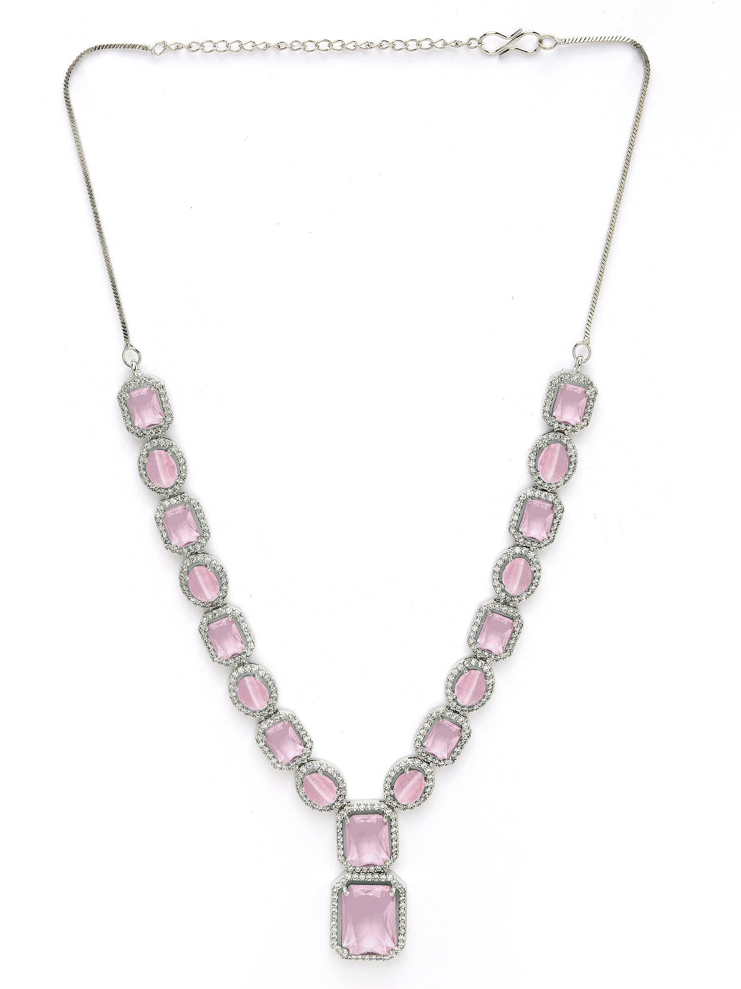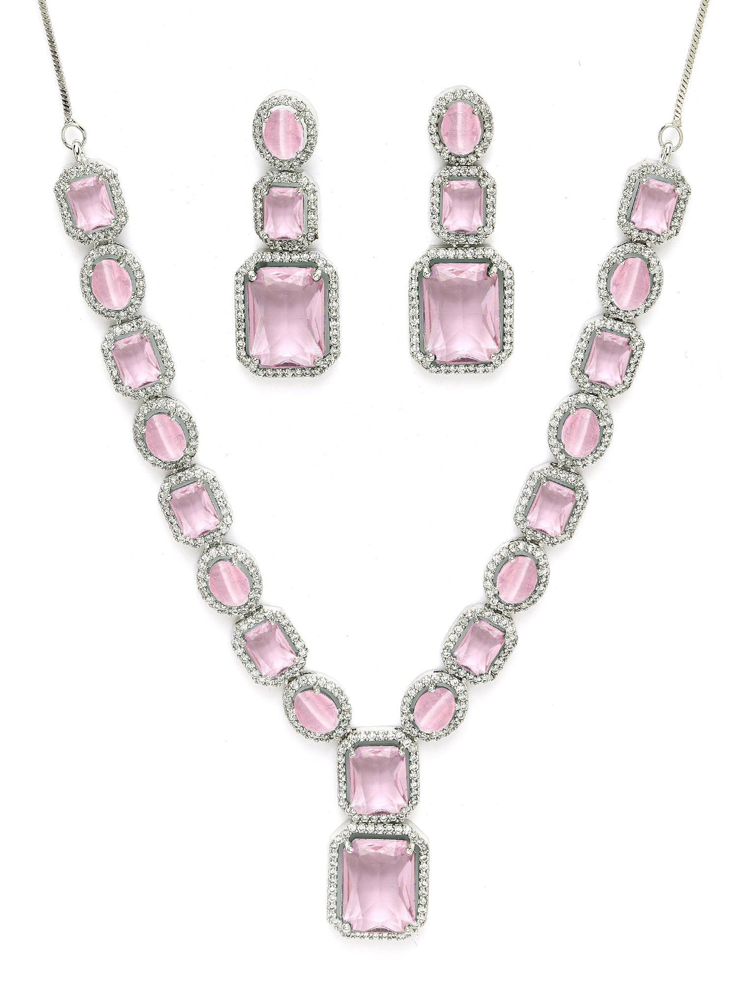 Karatcart Silver Tone Pink Cubic Zirconia Studded Necklace Set for Women. Our products are designed with high-quality material and these products are enhanced with plating that are skin-friendly & with love to reach your heart.