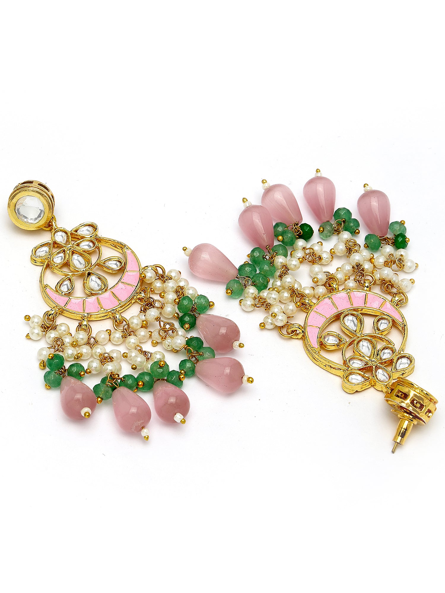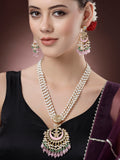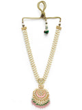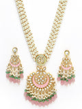 Karatcart Gold Plated Pink Meena Green Crystal Pearl Rani Haar Necklace for Women