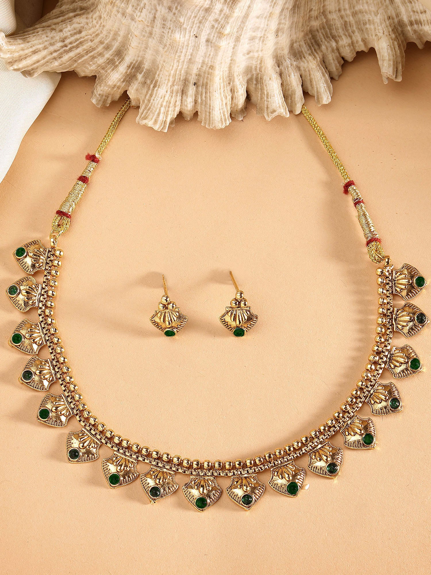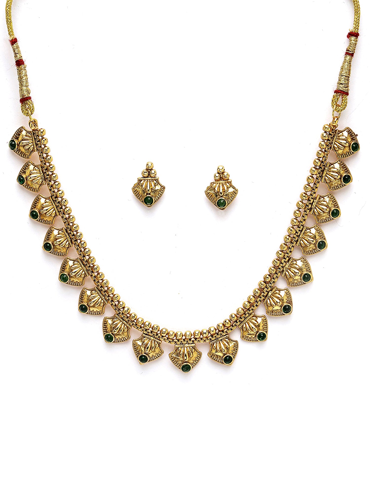 Karatcart Gold Plated Green Stone Minimal Necklace Set for Women