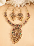 Karatcart Red and Green Stone Gold Plated Laxmi Mata Temple Jewellery Set for Women