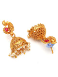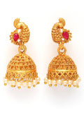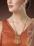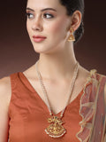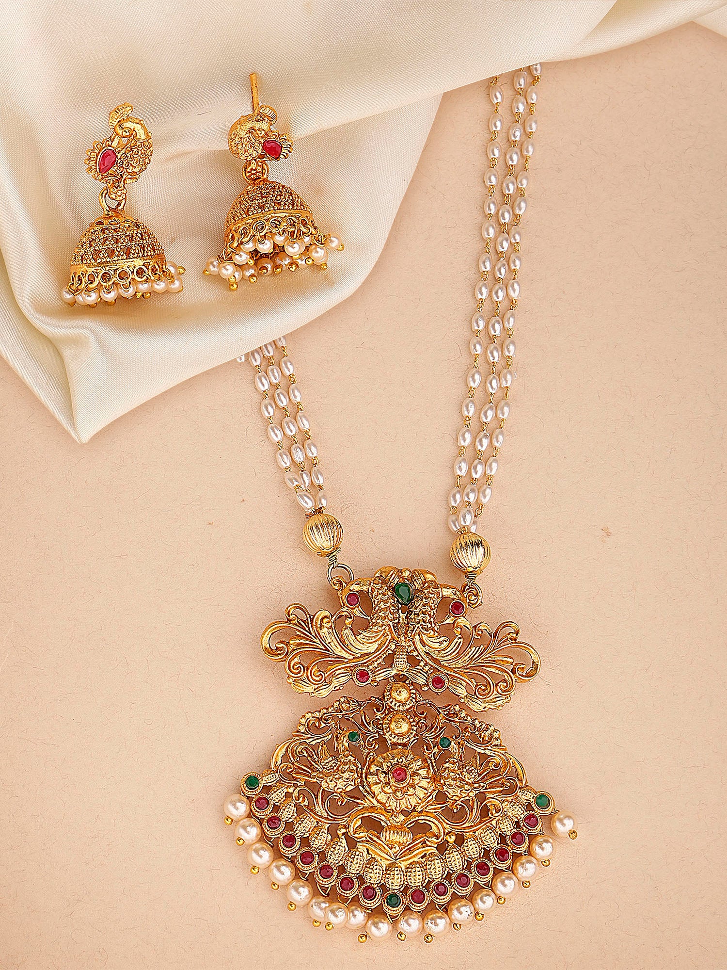 Karatcart Gold Plated Pearl Studded Peacock Design Temple Jewellery Set for Women