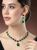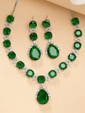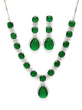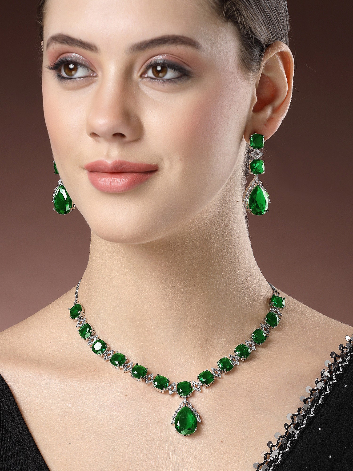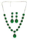 Karatcart Silver Plated Green Drop Shape Cubic Zirconia Studded Necklace Set for Women