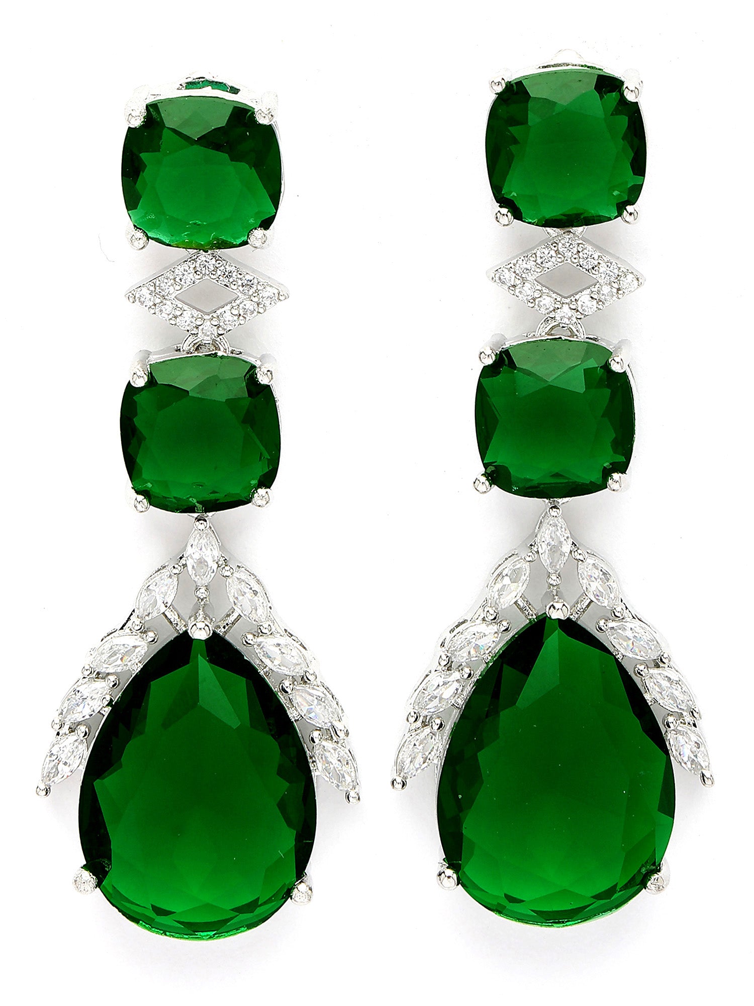 Karatcart Silver Plated Green Drop Shape Cubic Zirconia Studded Necklace Set for Women. Our products are designed with high-quality material and these products are enhanced with plating that are skin-friendly & with love to reach your heart.
