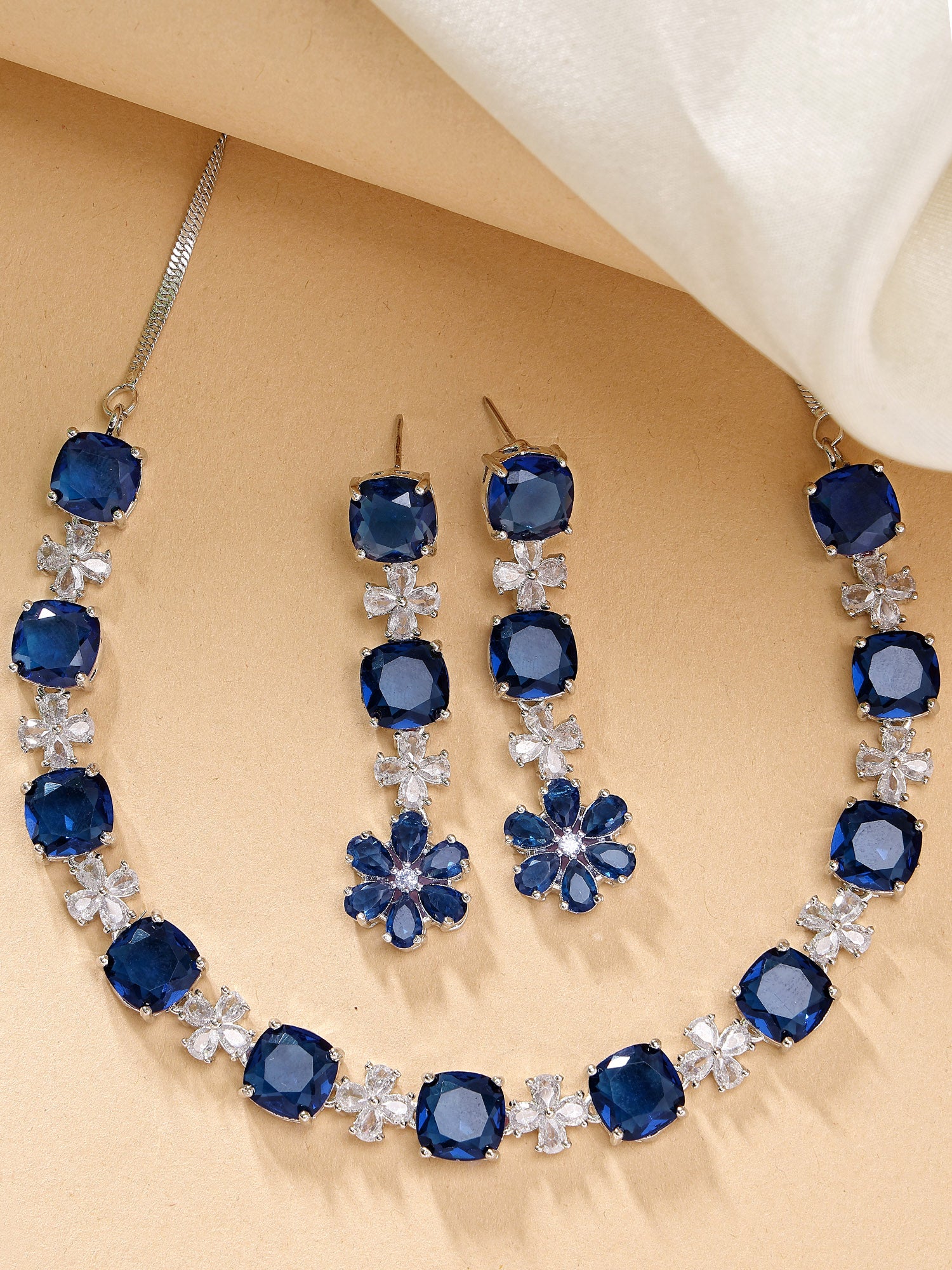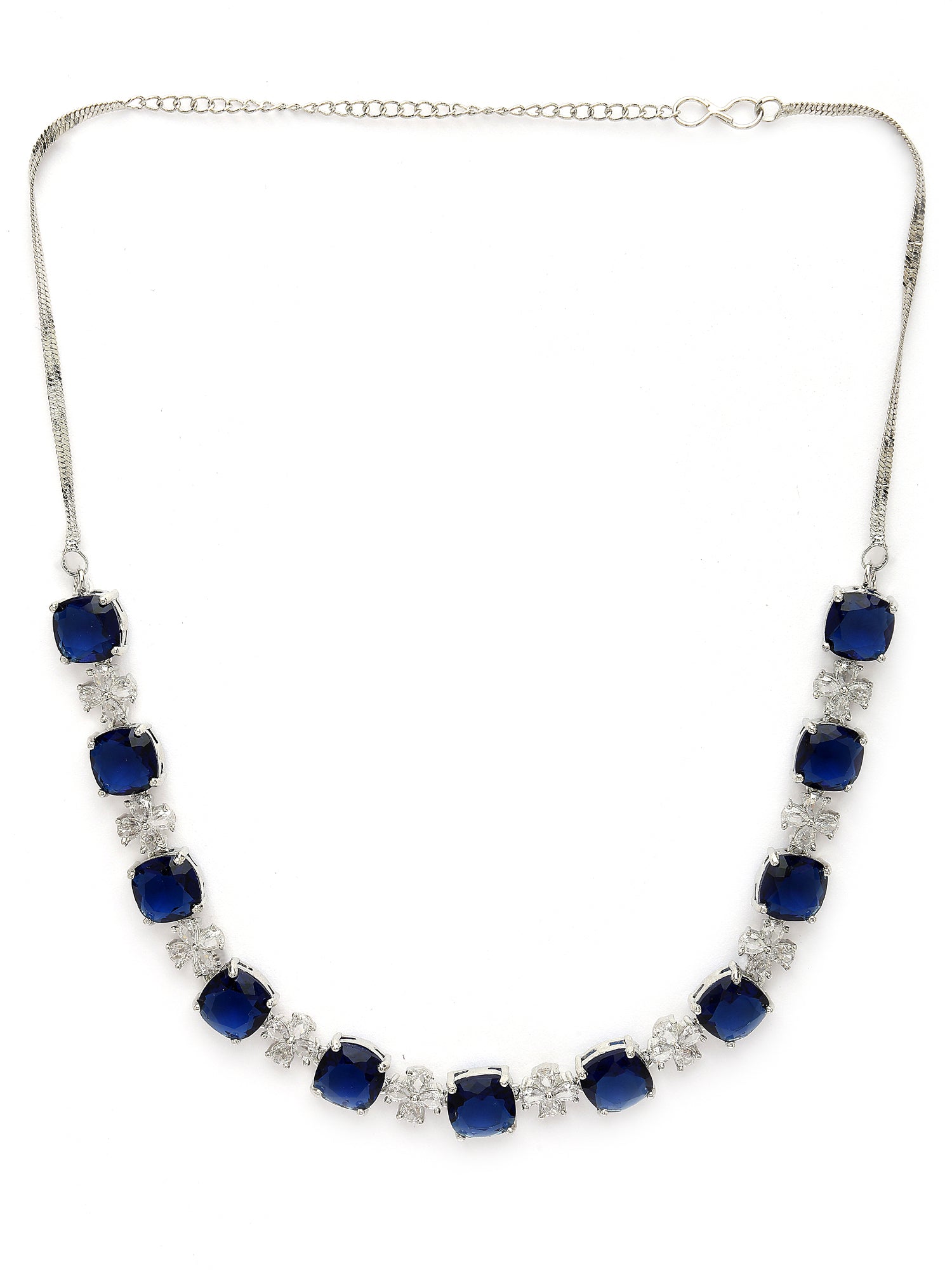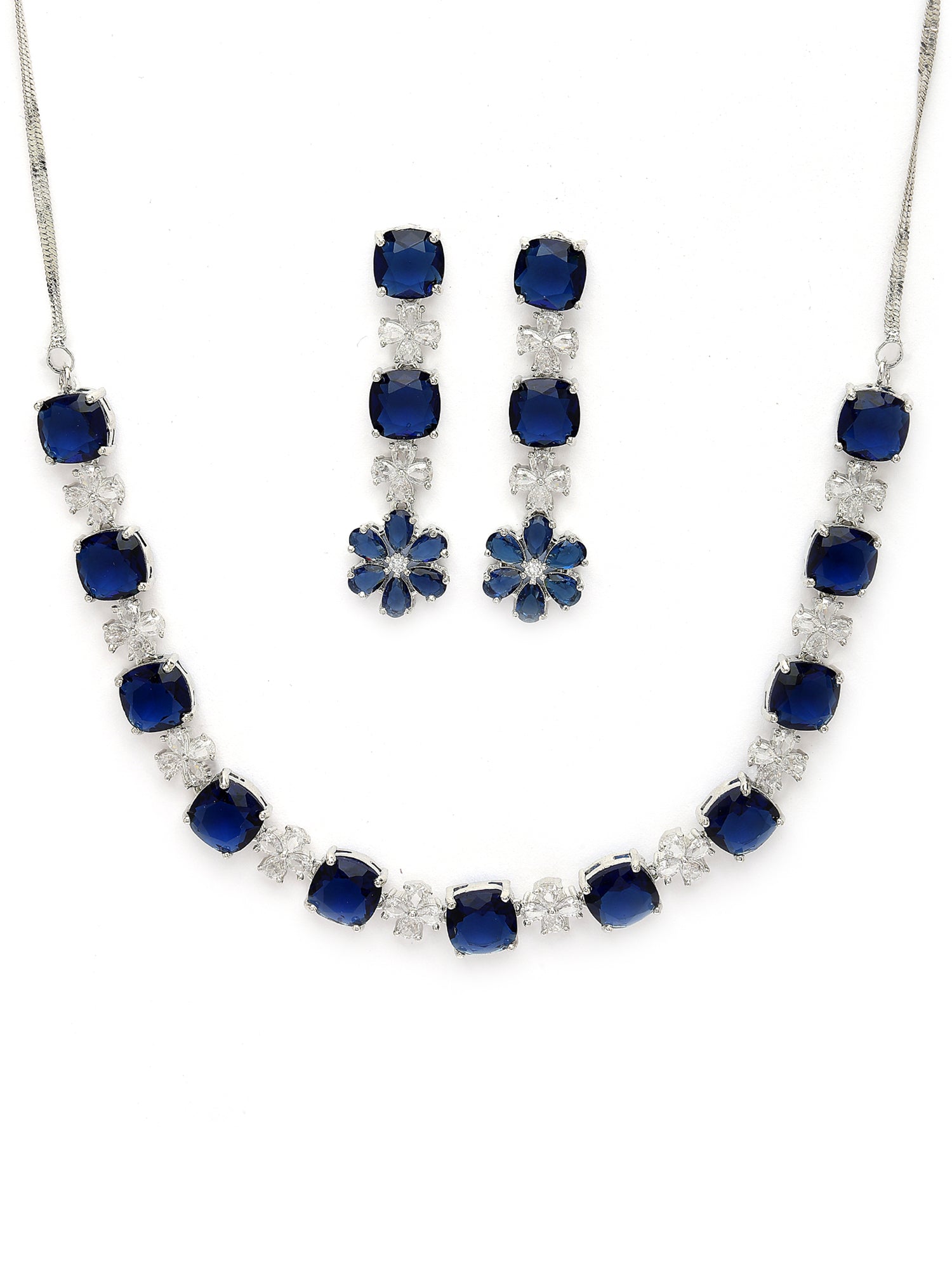 Karatcart Silver Plated Blue Floral Cubic Zirconia Studded Necklace Set for Women. Our products are designed with high-quality material and these products are enhanced with plating that are skin-friendly & with love to reach your heart.