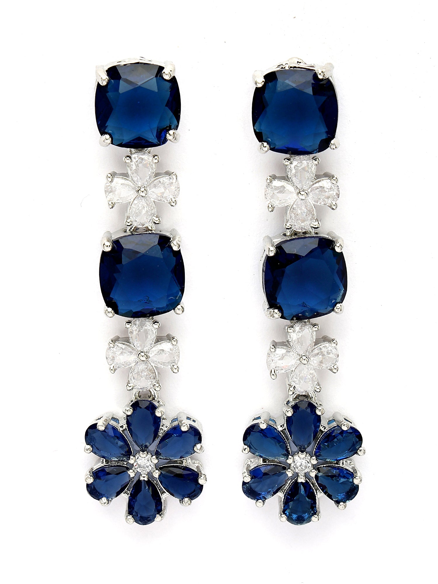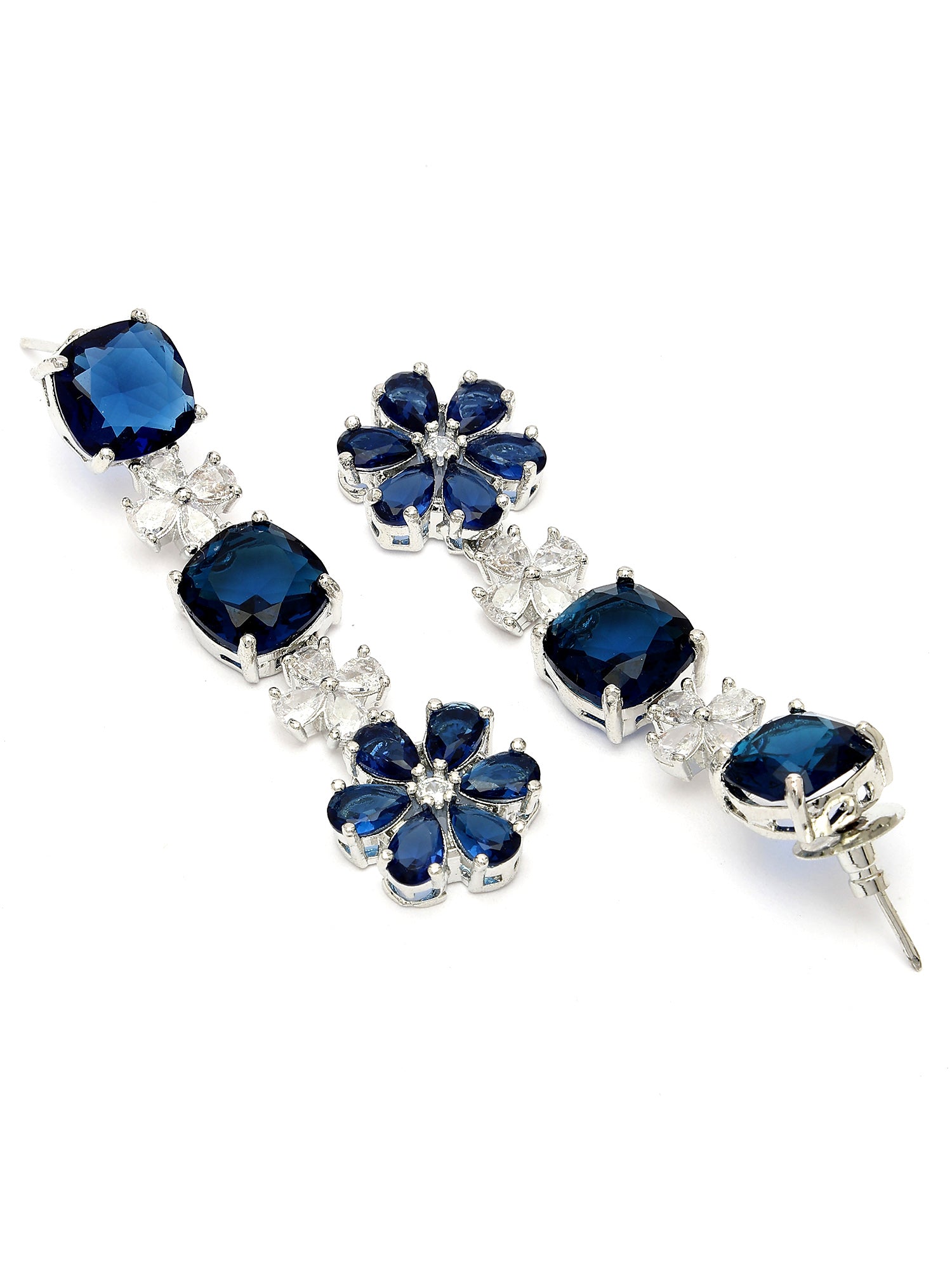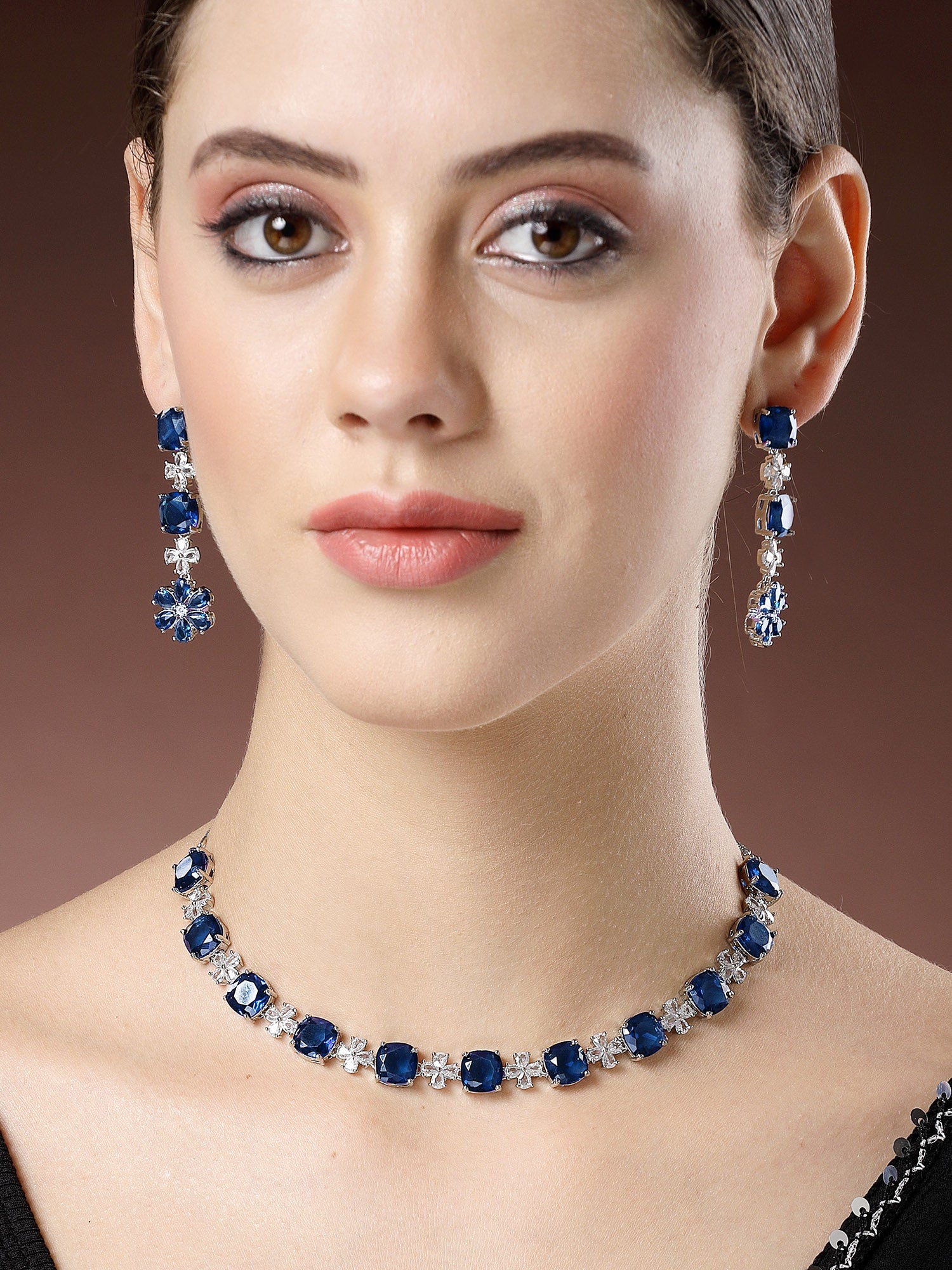 Karatcart Silver Plated Blue Floral Cubic Zirconia Studded Necklace Set for Women. Our products are designed with high-quality material and these products are enhanced with plating that are skin-friendly & with love to reach your heart.