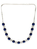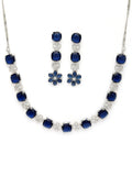 Karatcart Silver Plated Blue Floral Cubic Zirconia Studded Necklace Set for Women