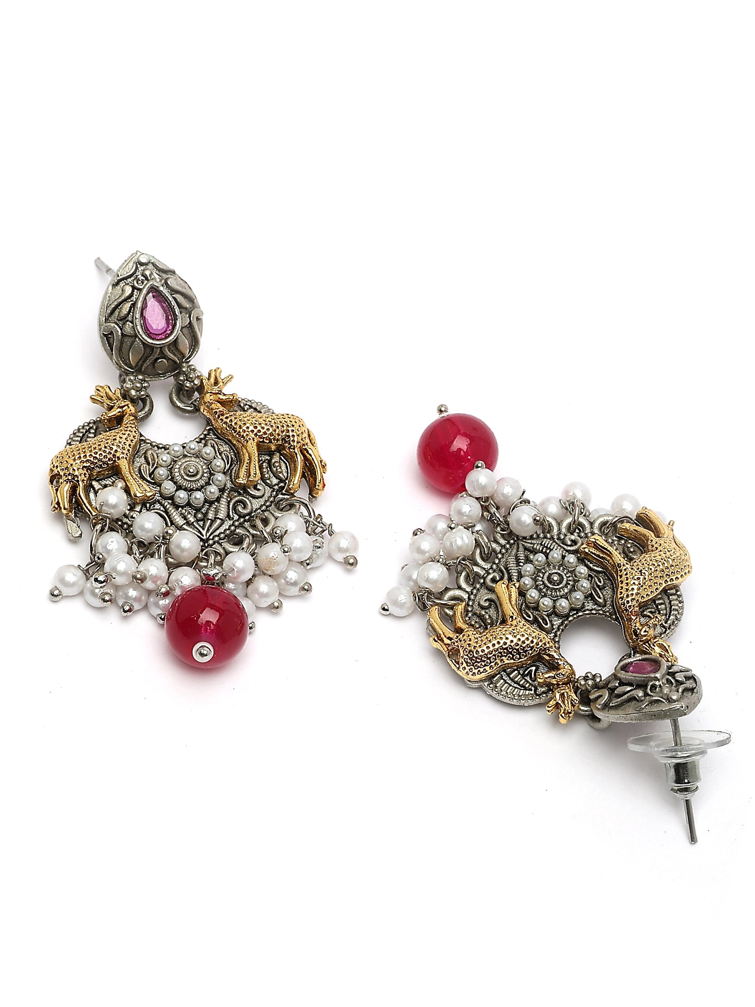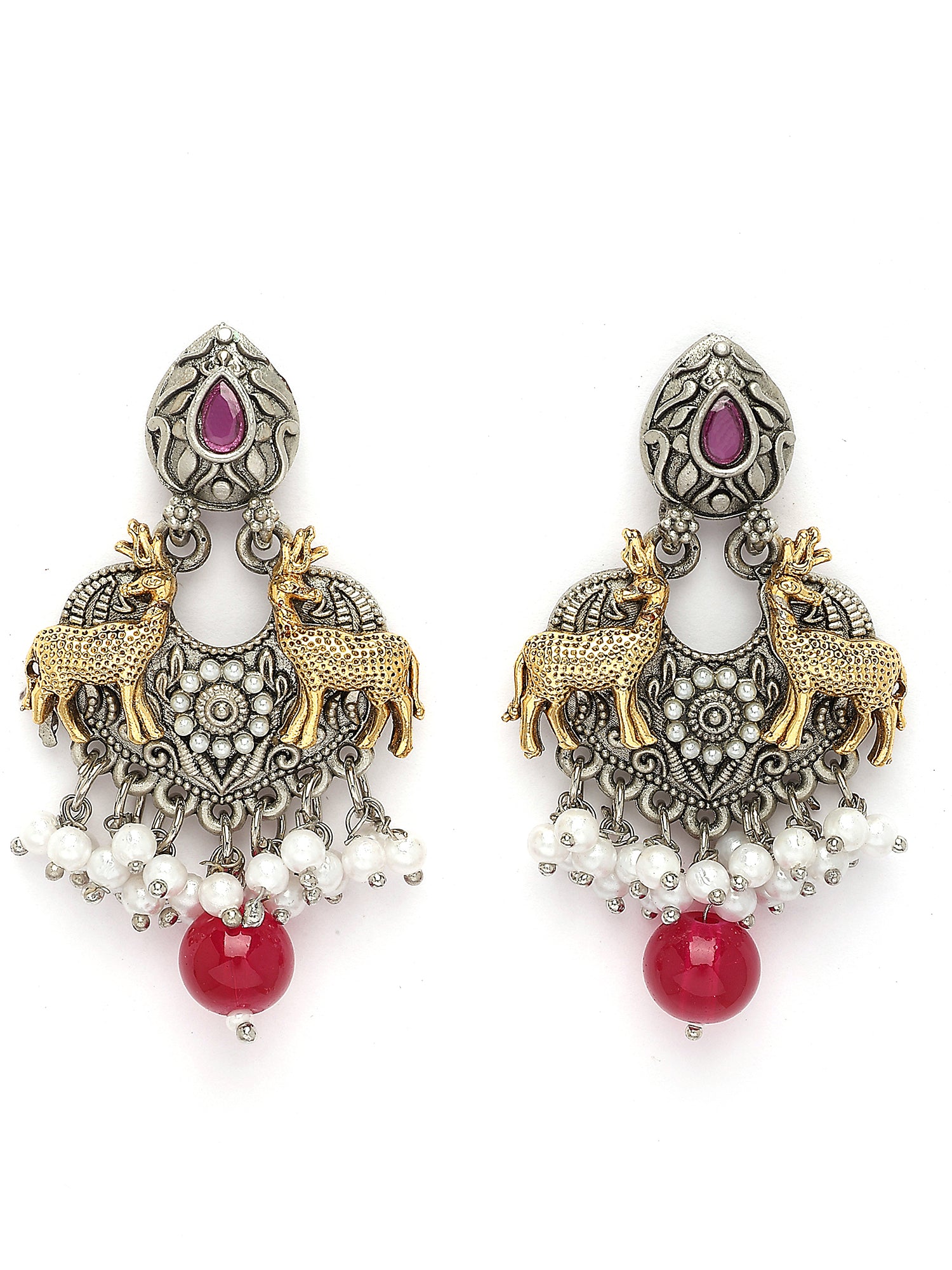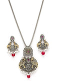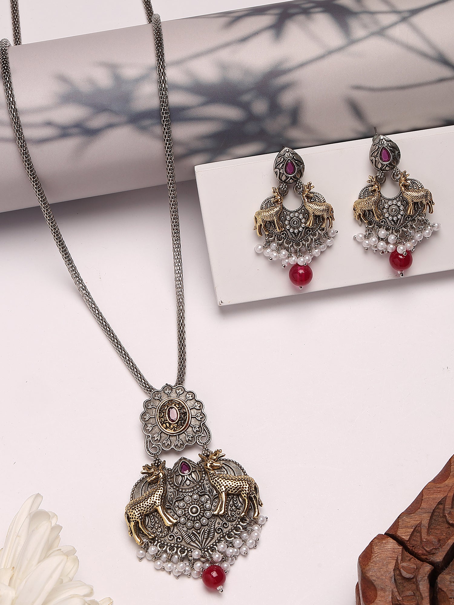 Karatcart Dual Tone Antique Silver and Gold Red Deer Pendant Set. Our products are designed with high-quality material and these products are enhanced with plating that are skin-friendly & with love to reach your heart.