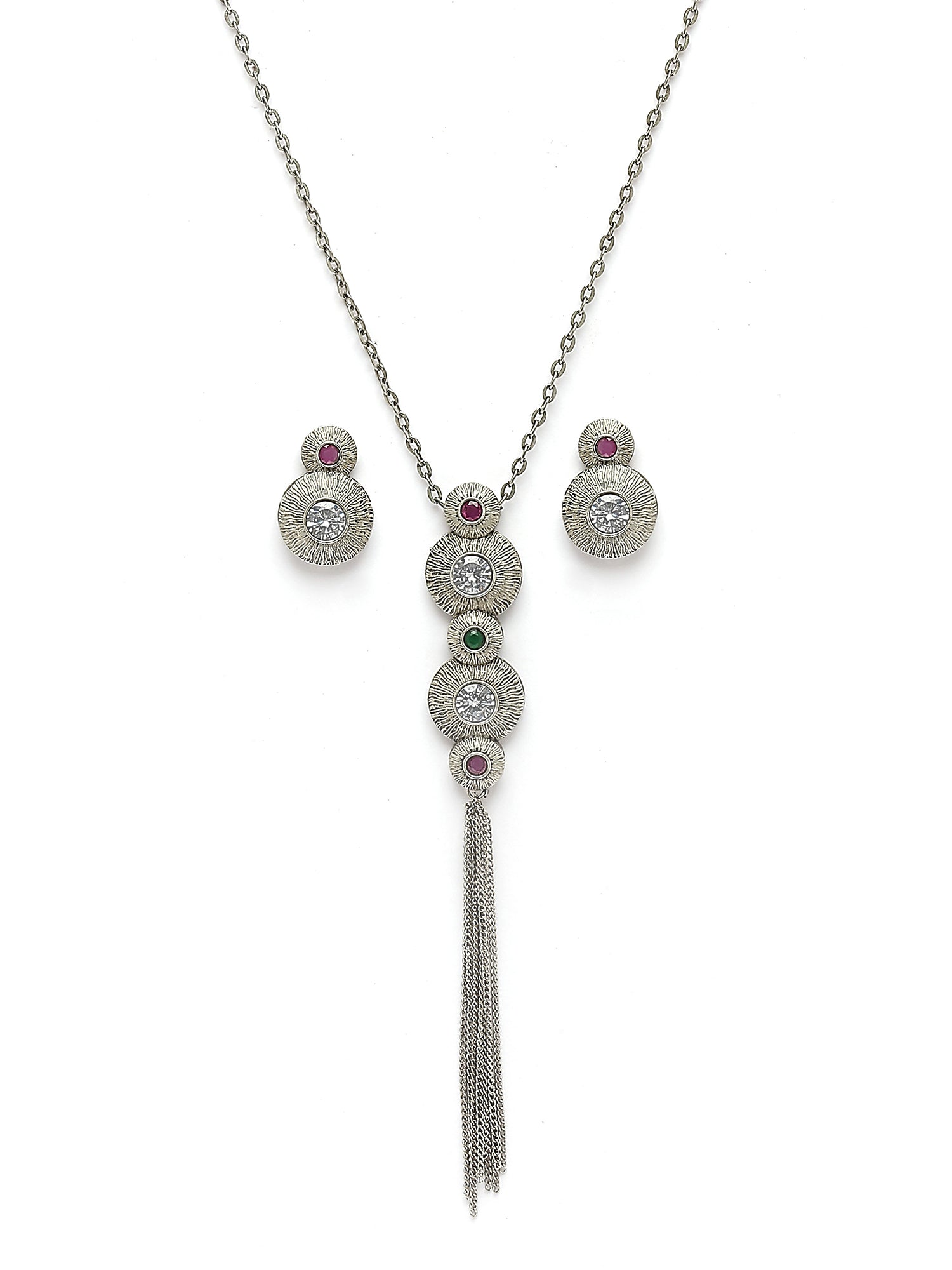 Karatcart Oxidised Silver Red and Green Stone Pendant Set for Women