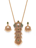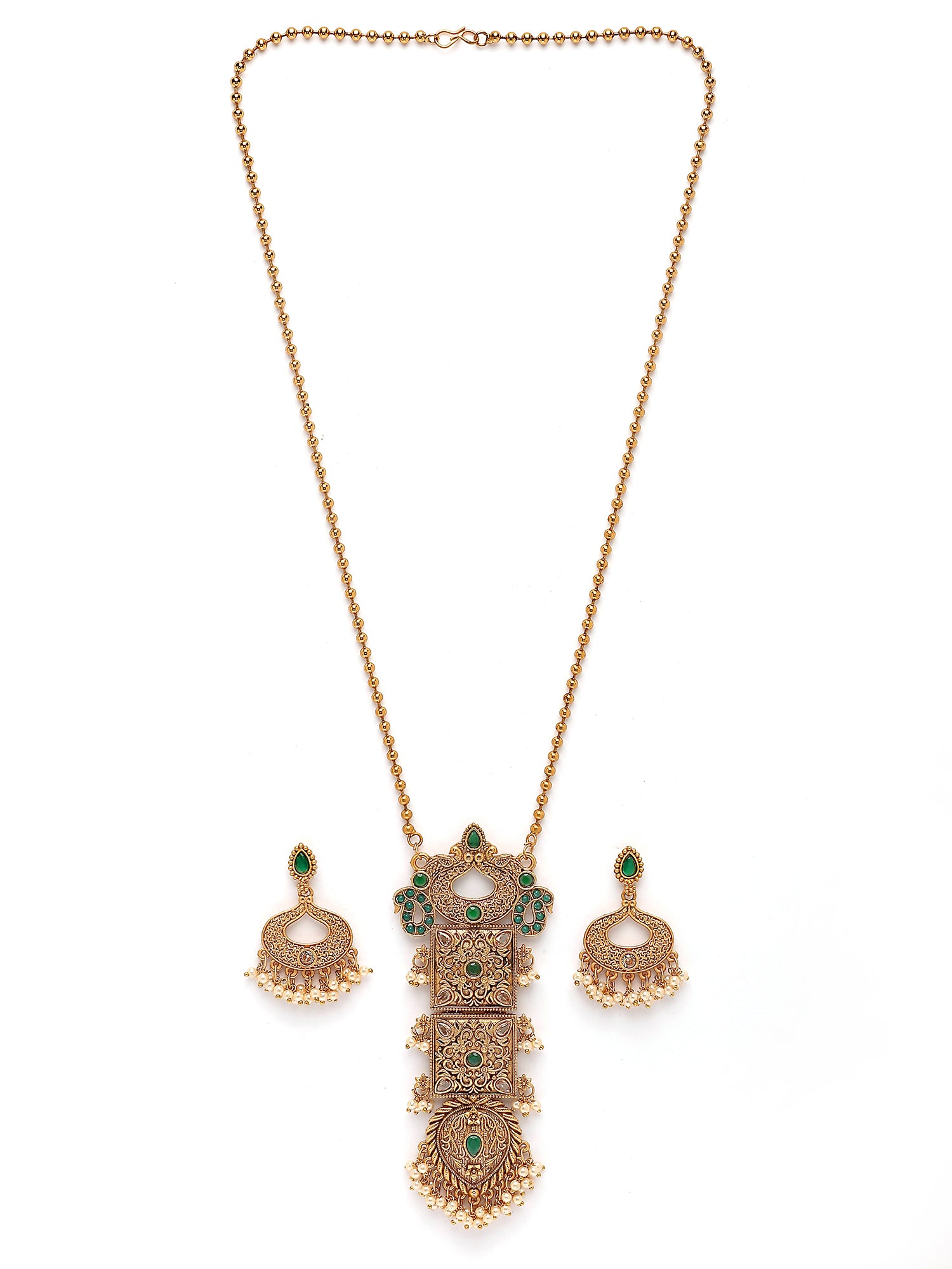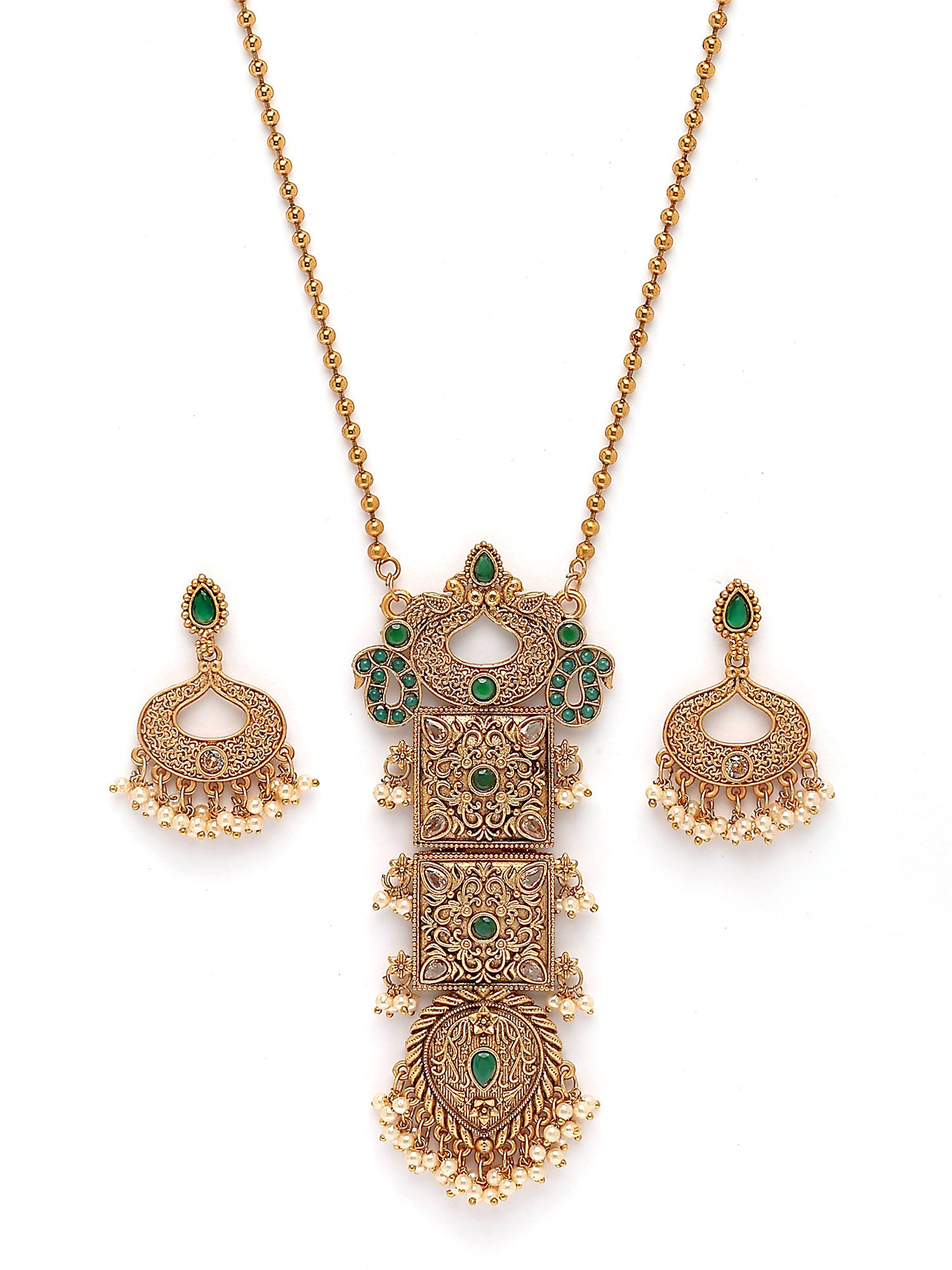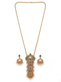 Karatcart Antique Gold Plated Green Stone Pendant Set for Women