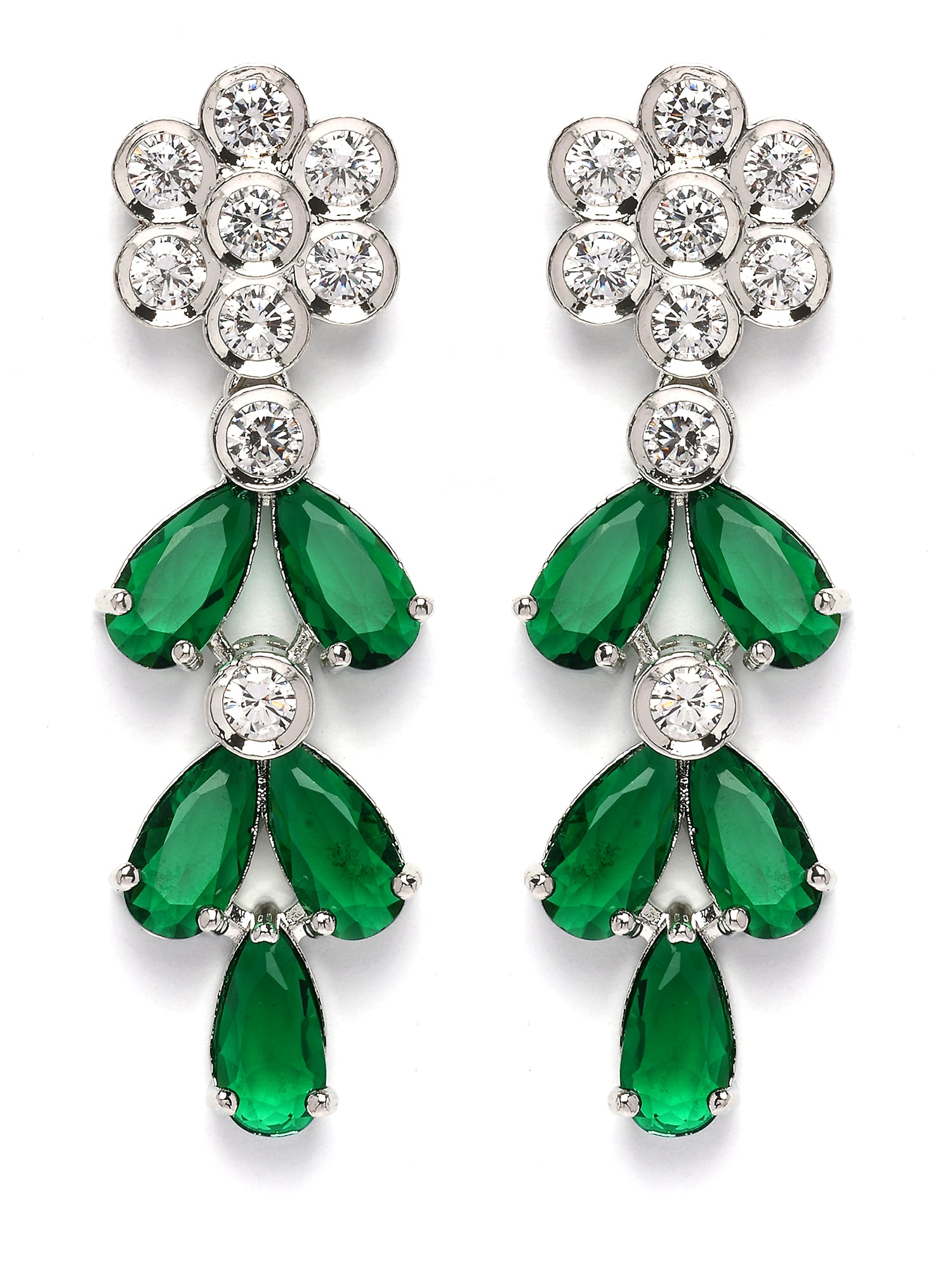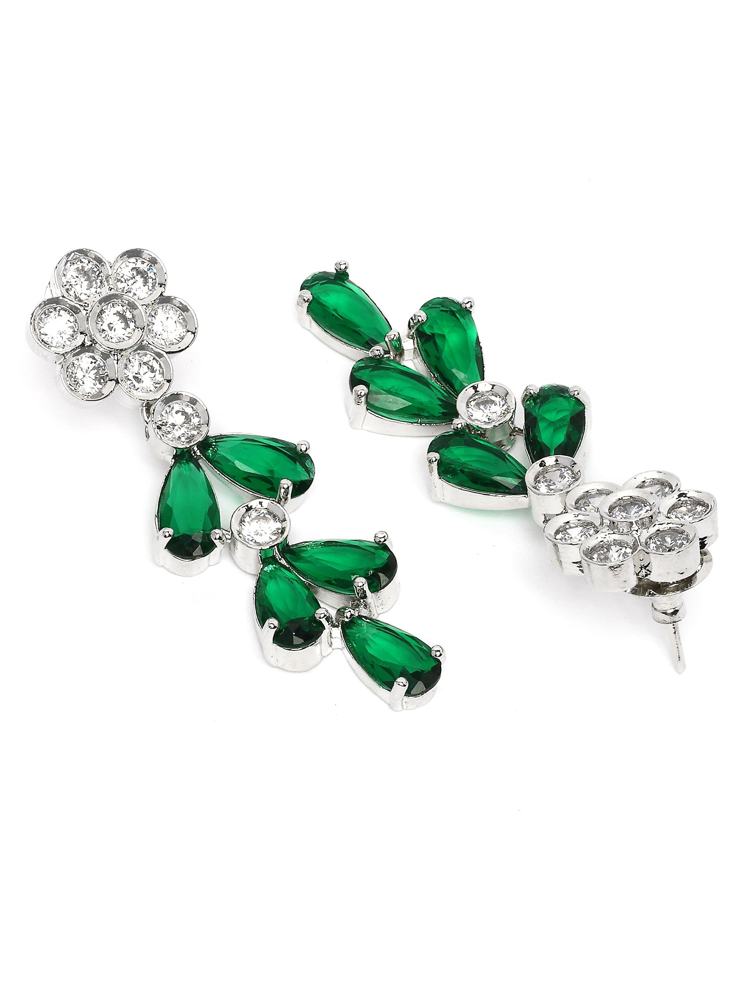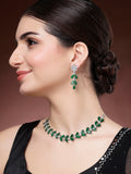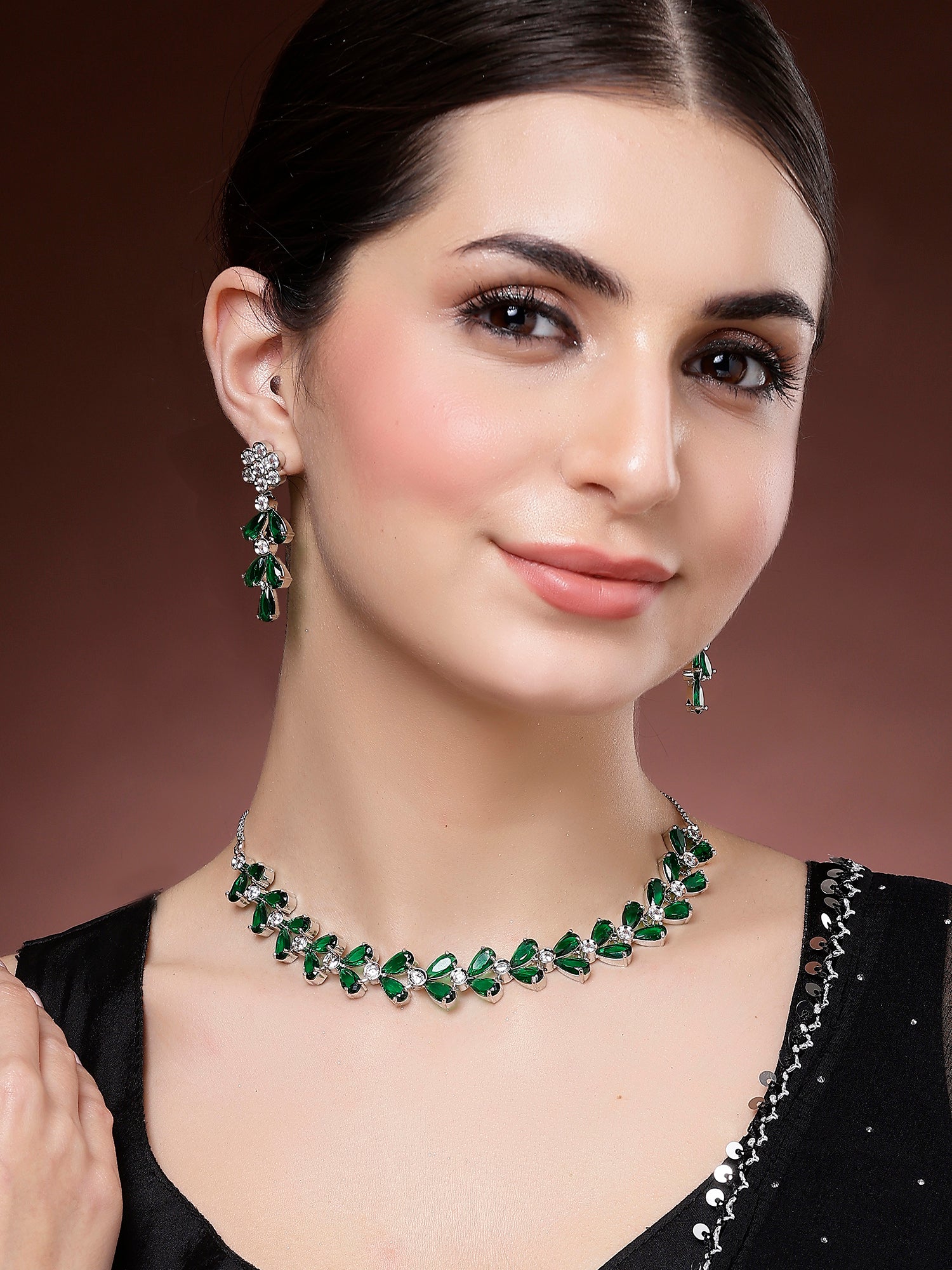 Karatcart Elegant Green American Diamond Silver Plated Leaf Design Necklace Set for Women