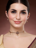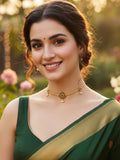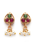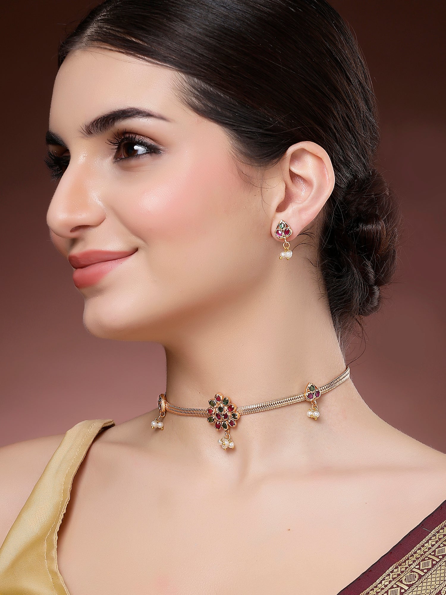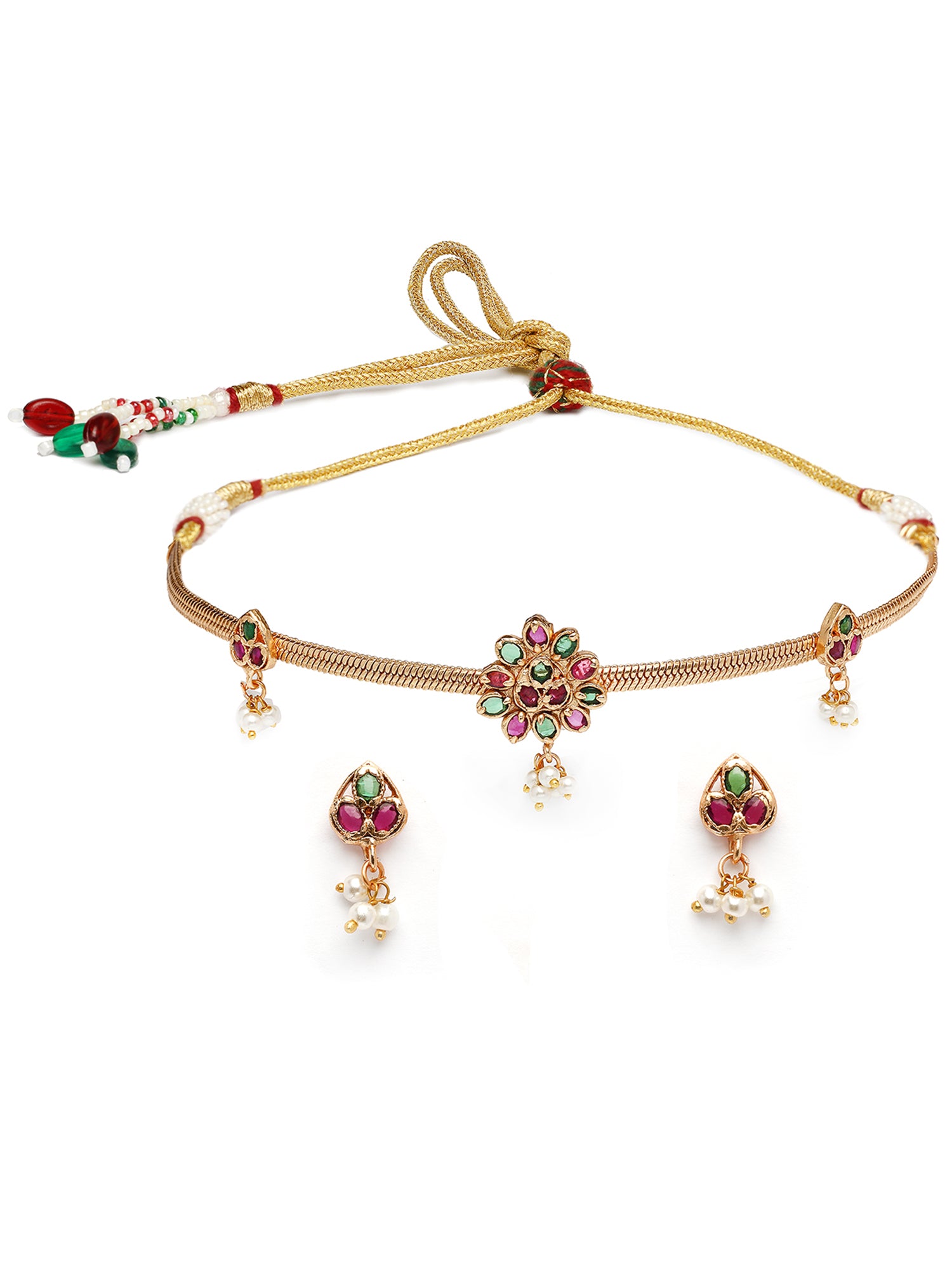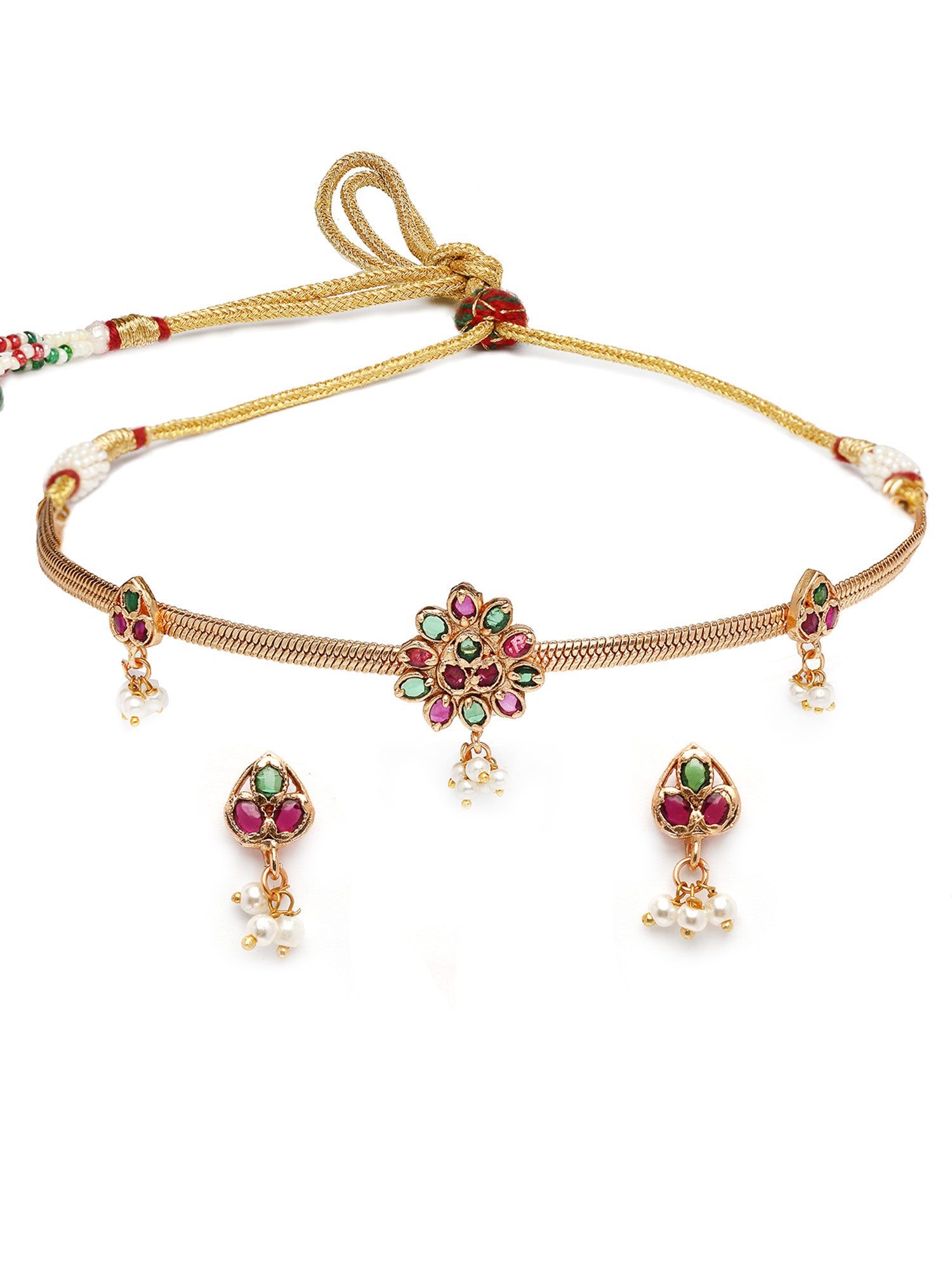 Karatcart Floral Design Gold Plated Red and Green Stone Necklace Set for Women