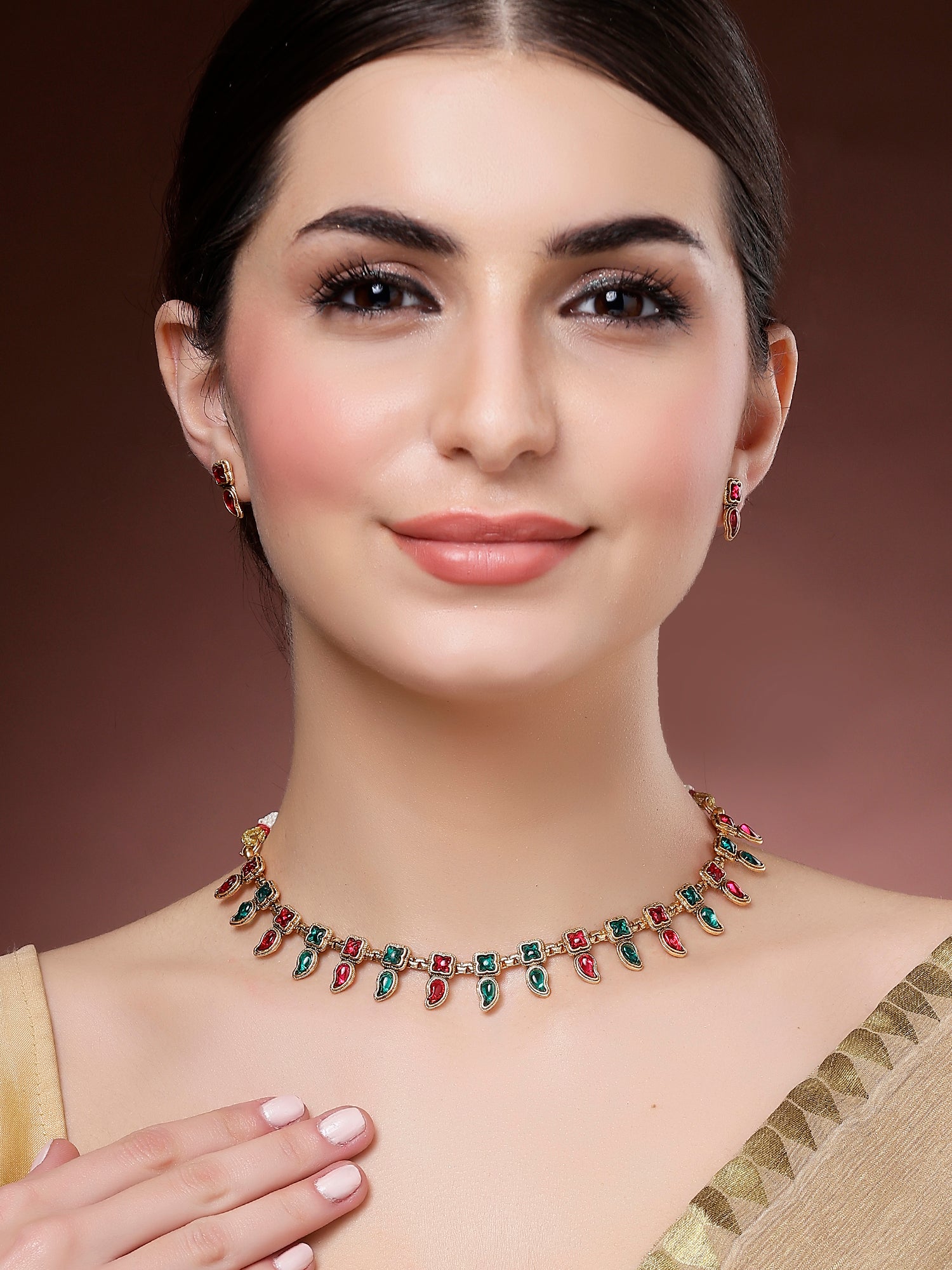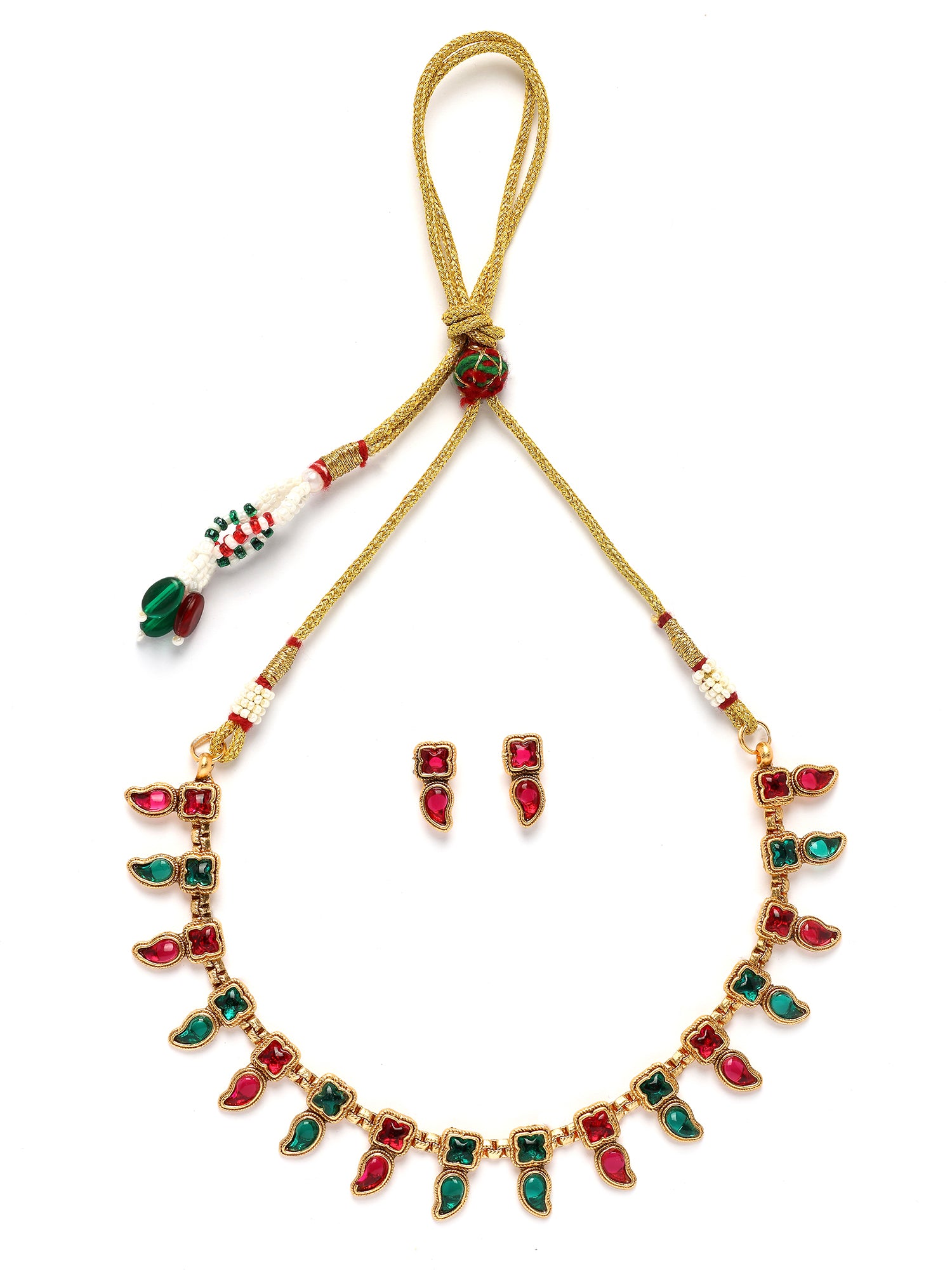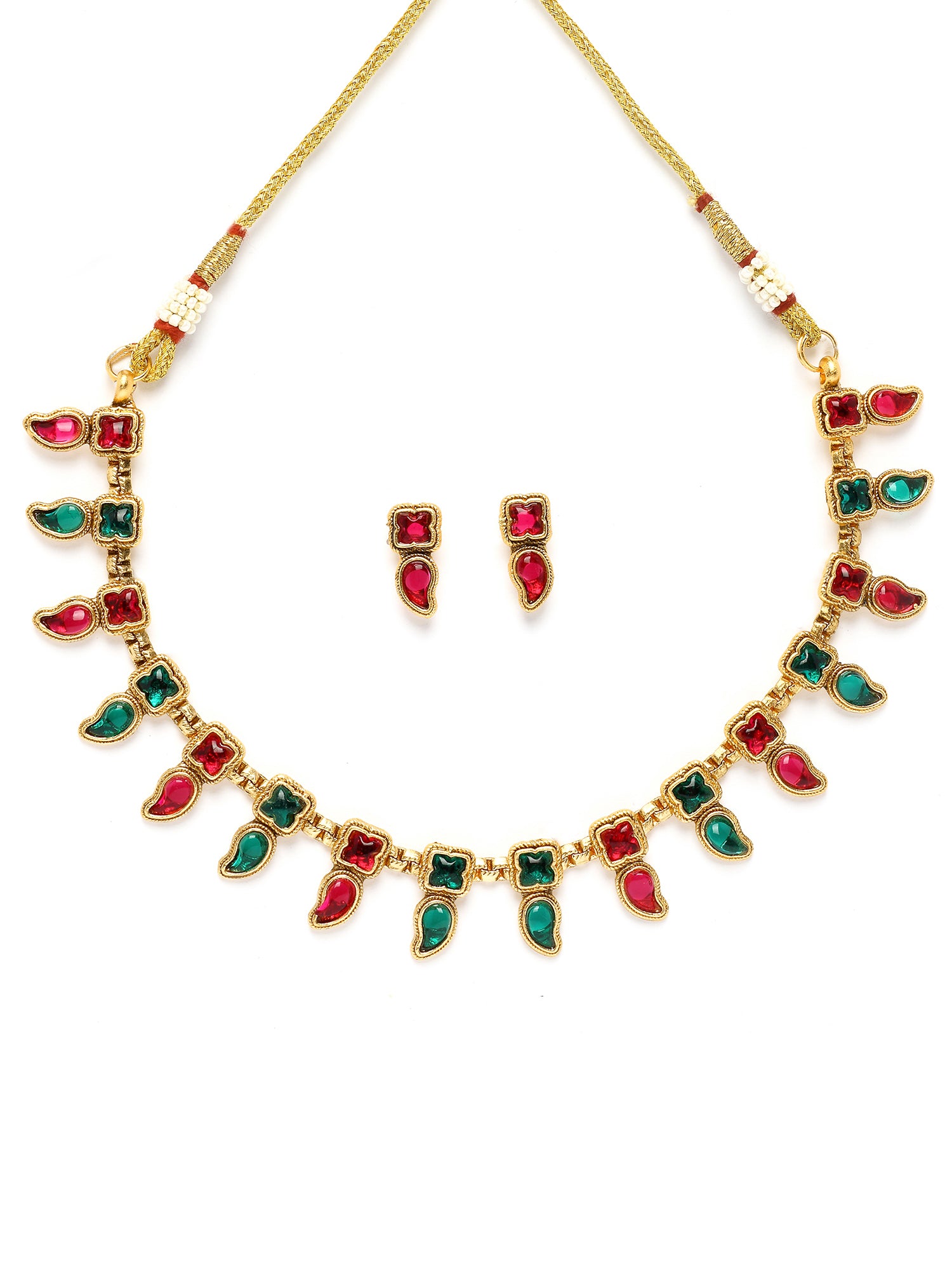 Karatcart Red and Green Stone Necklace Set for Women
