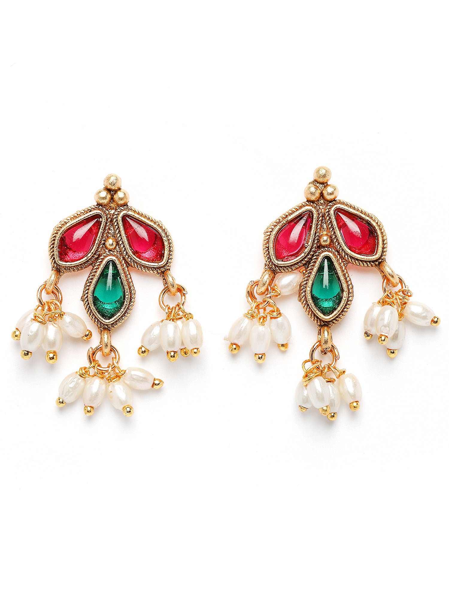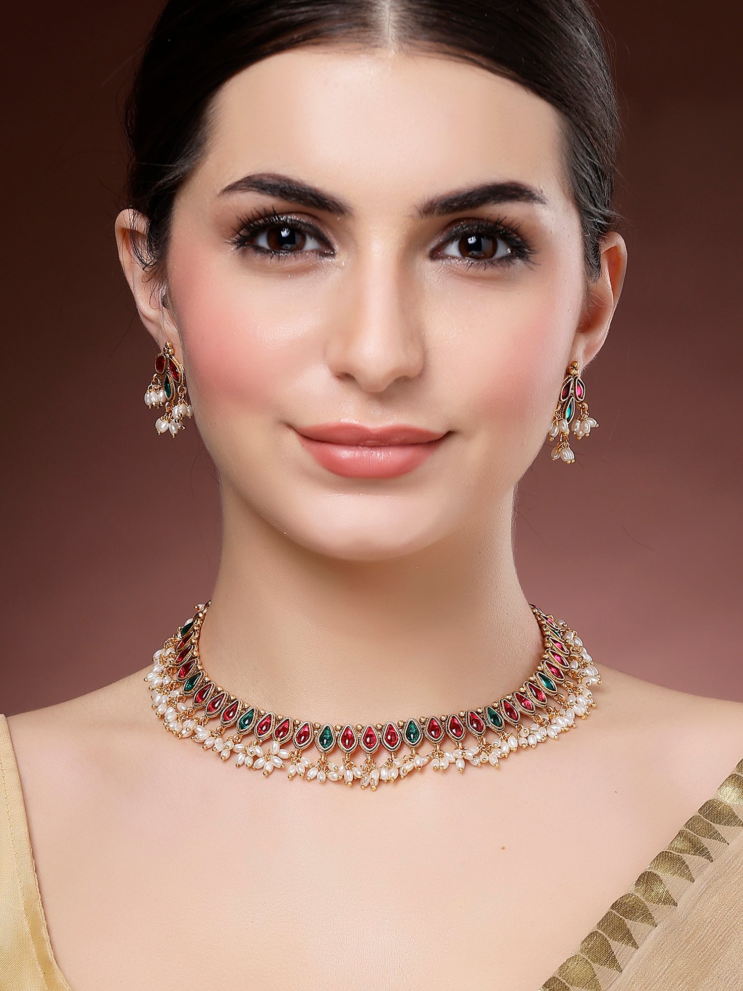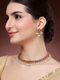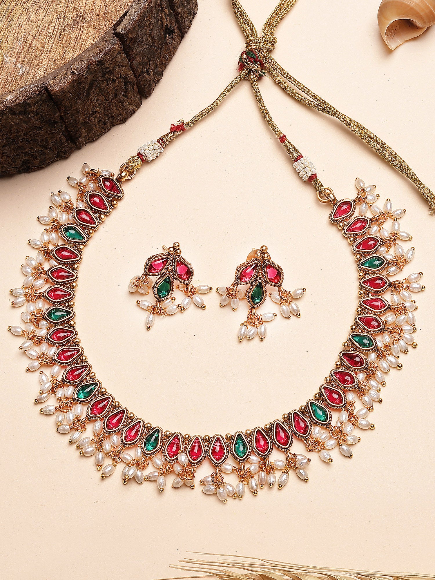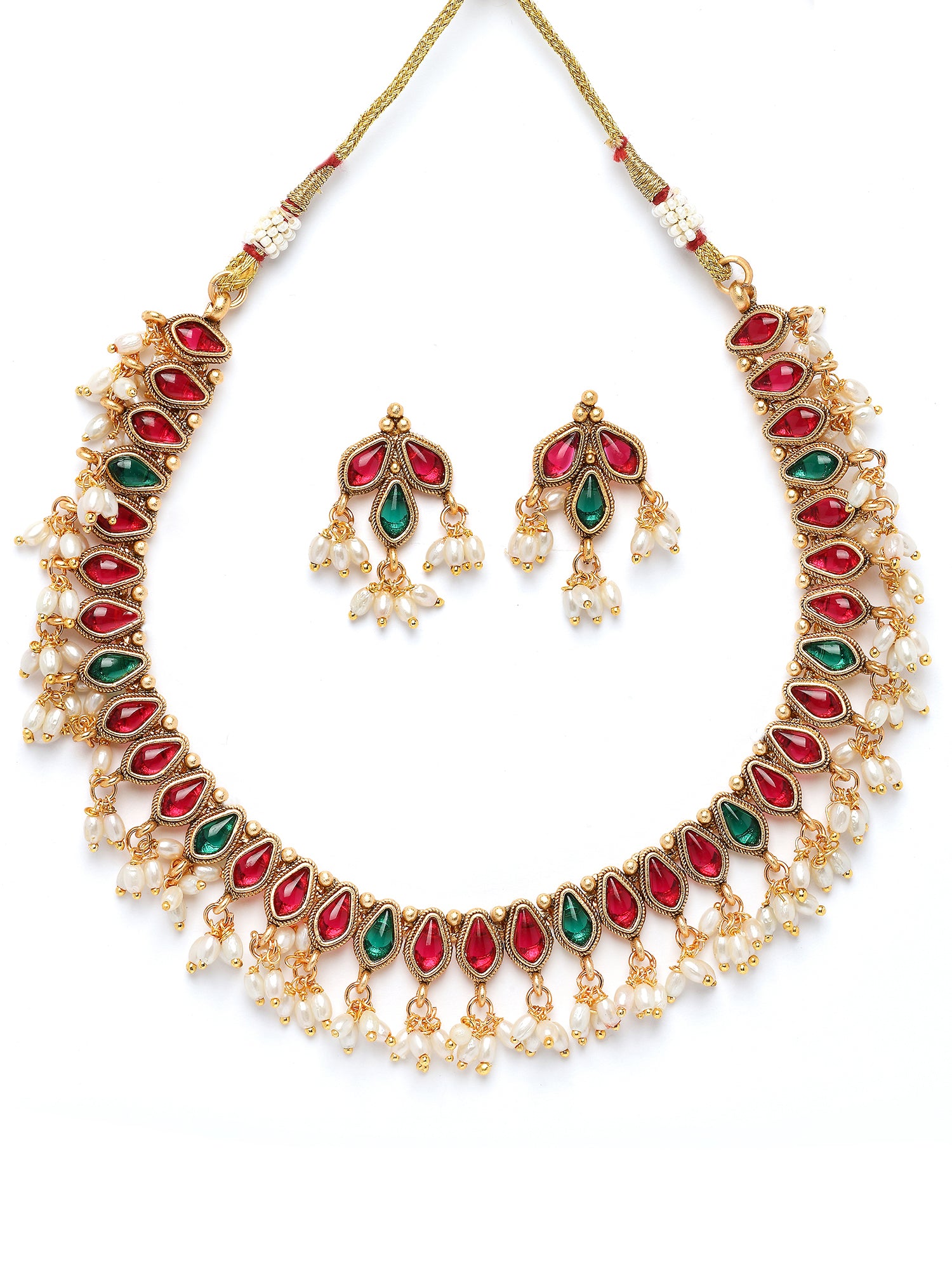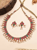 Karatcart Drop Shape Red and Green Stone Necklace Set for Women