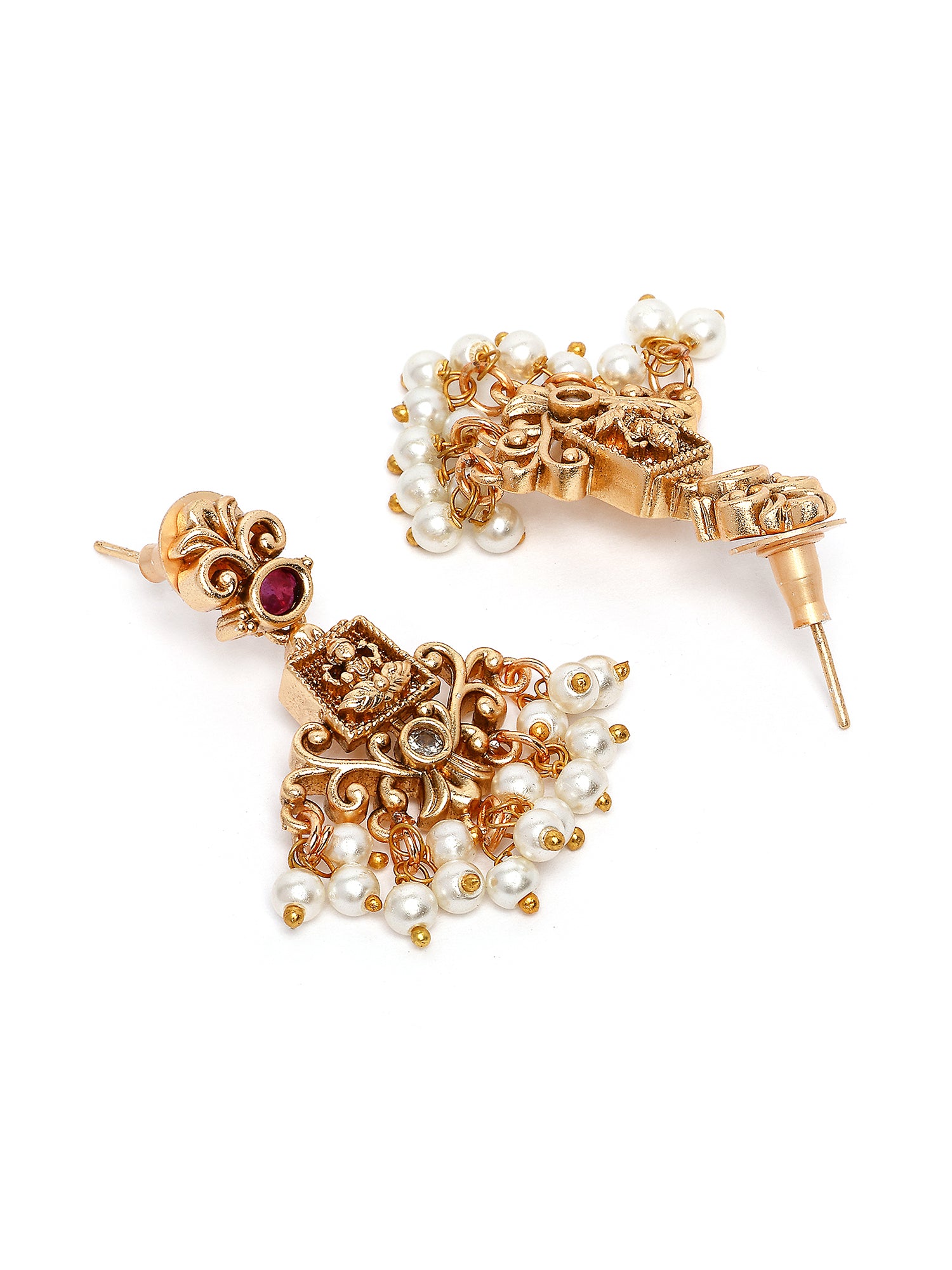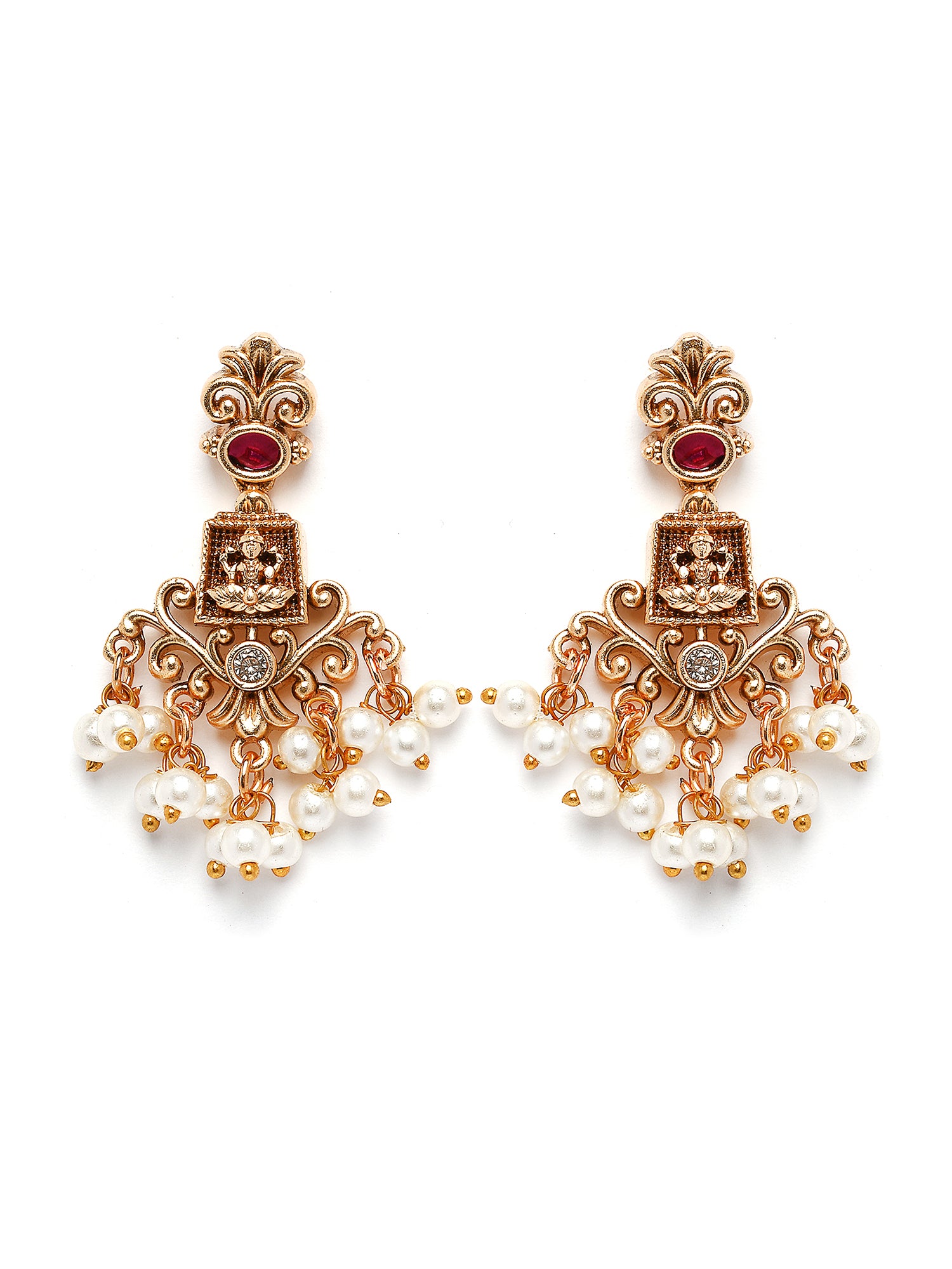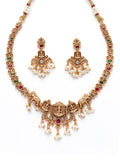 Karatcart Gold Plated Red and Green Stones Laxmi Mata Temple Jewellery Set for Women