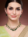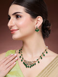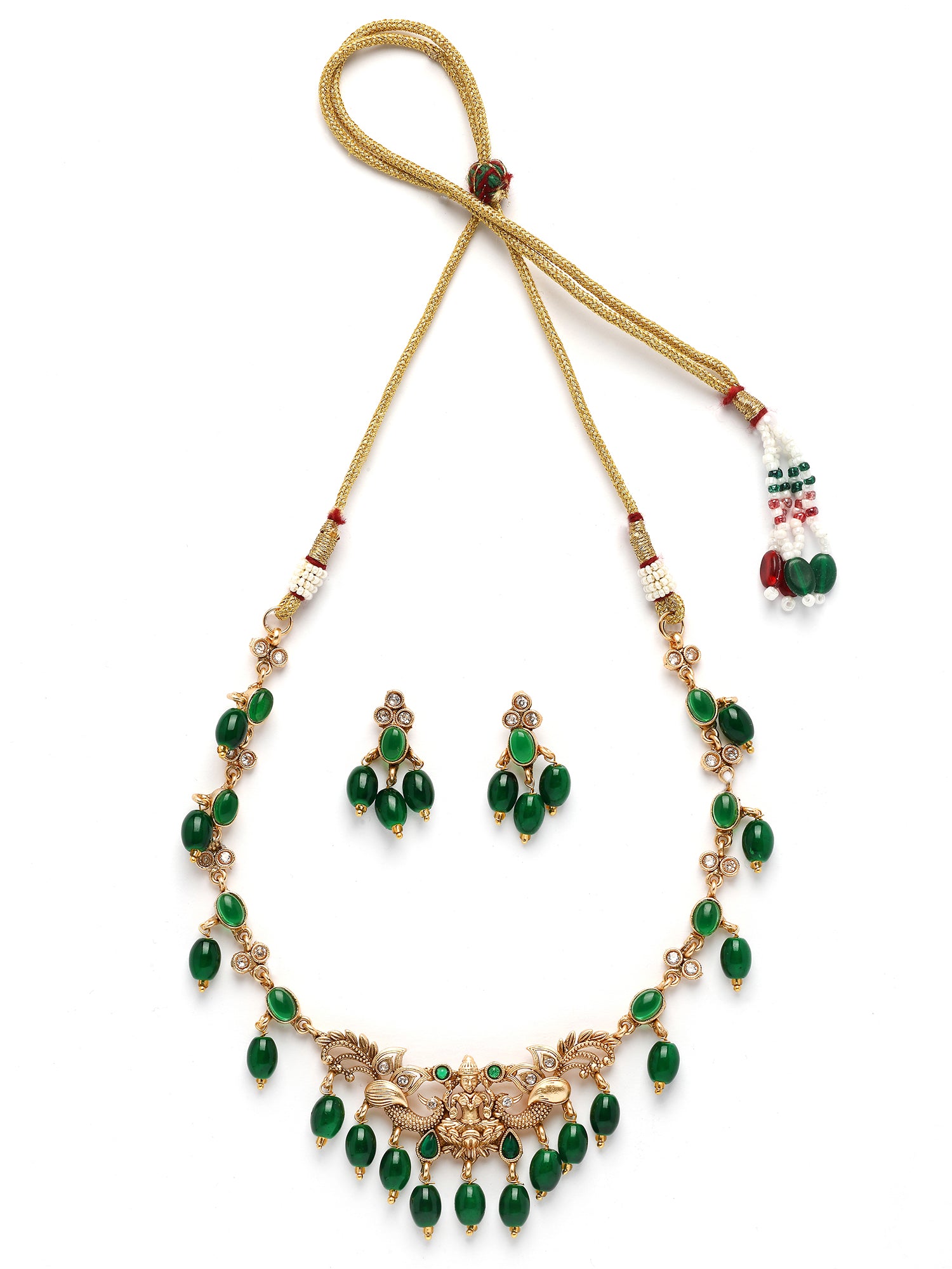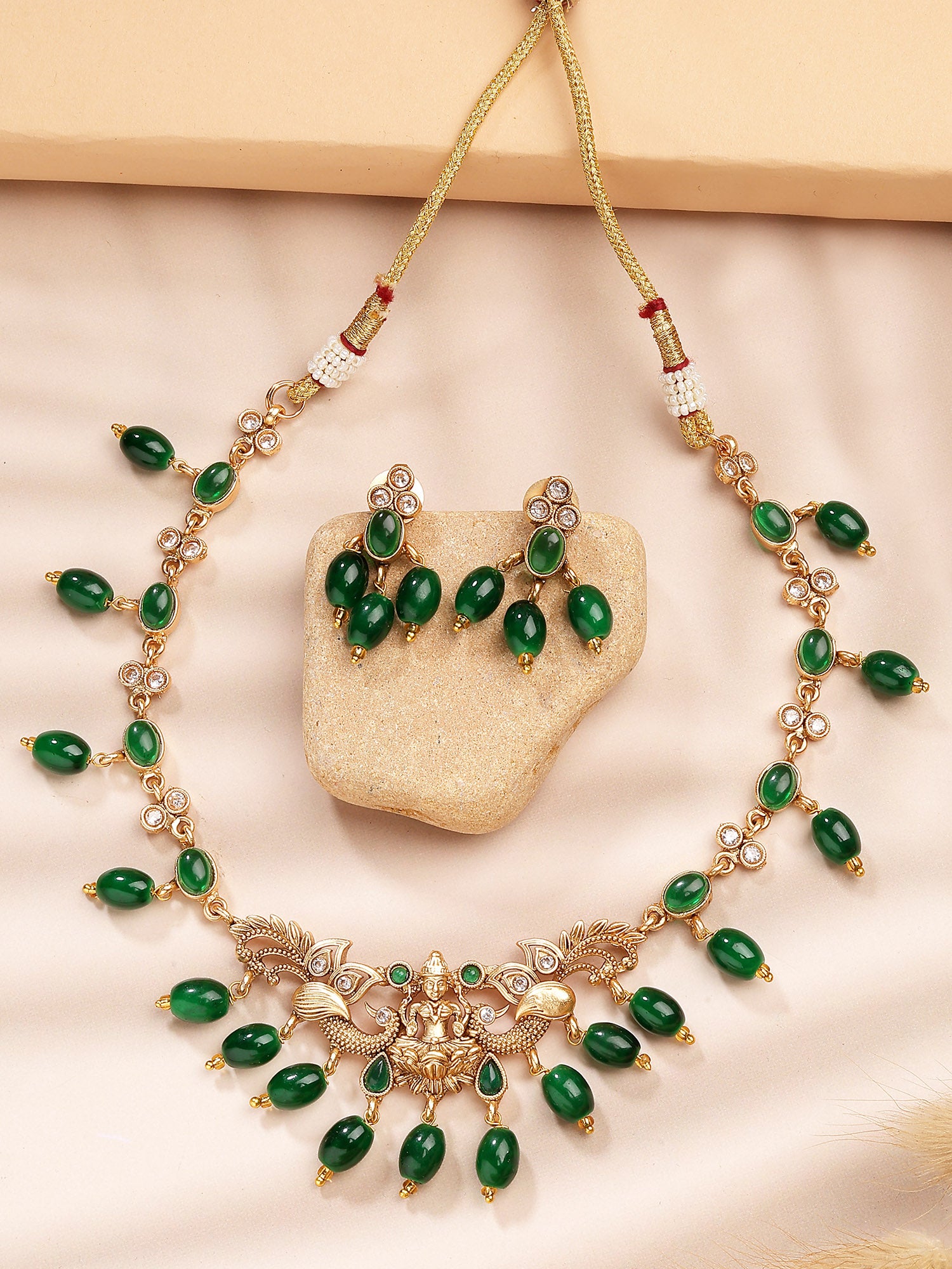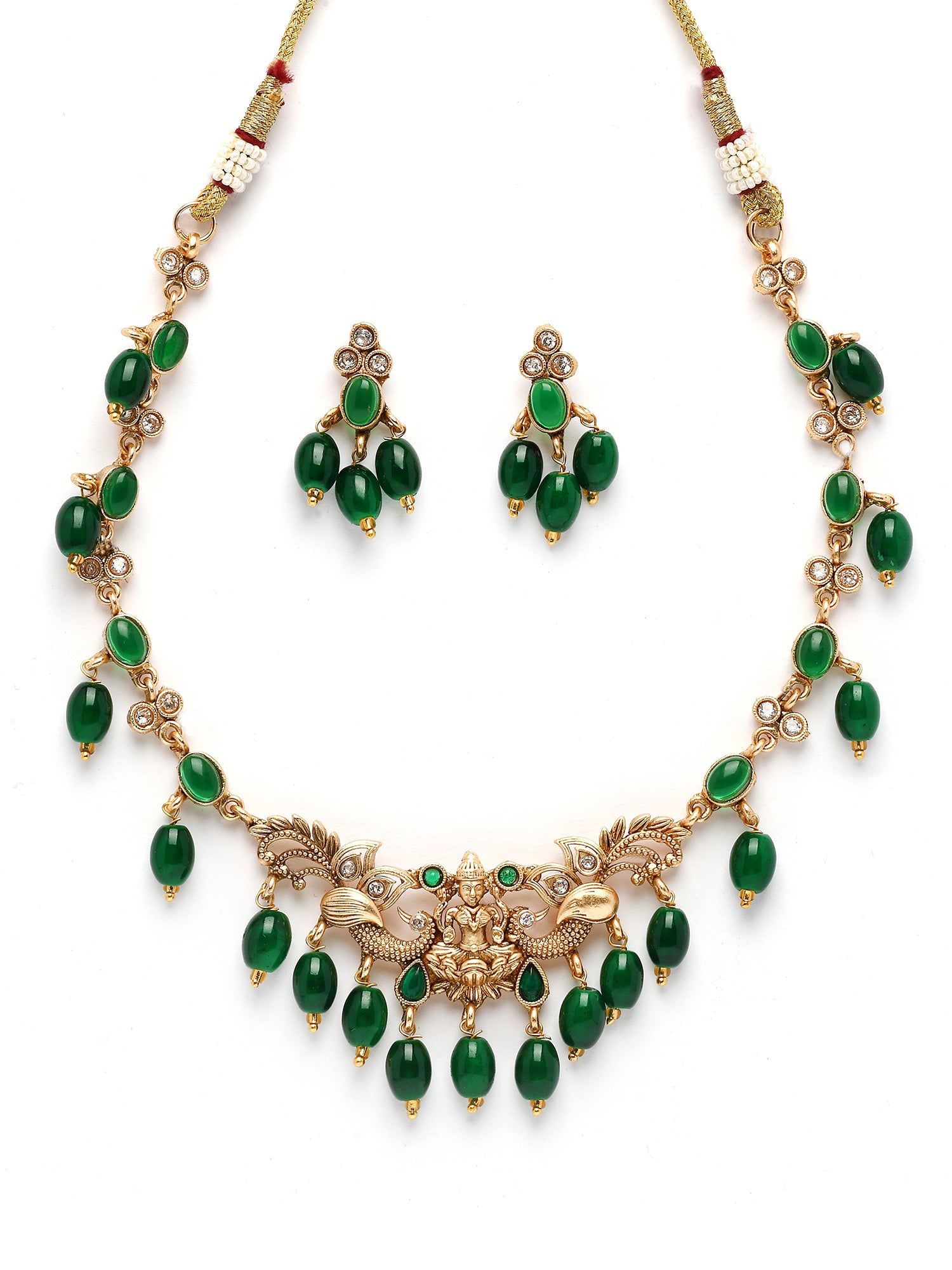 Karatcart Green Tumble Stone Gold Plated Laxmi Mata Temple Jewellery Set for Women