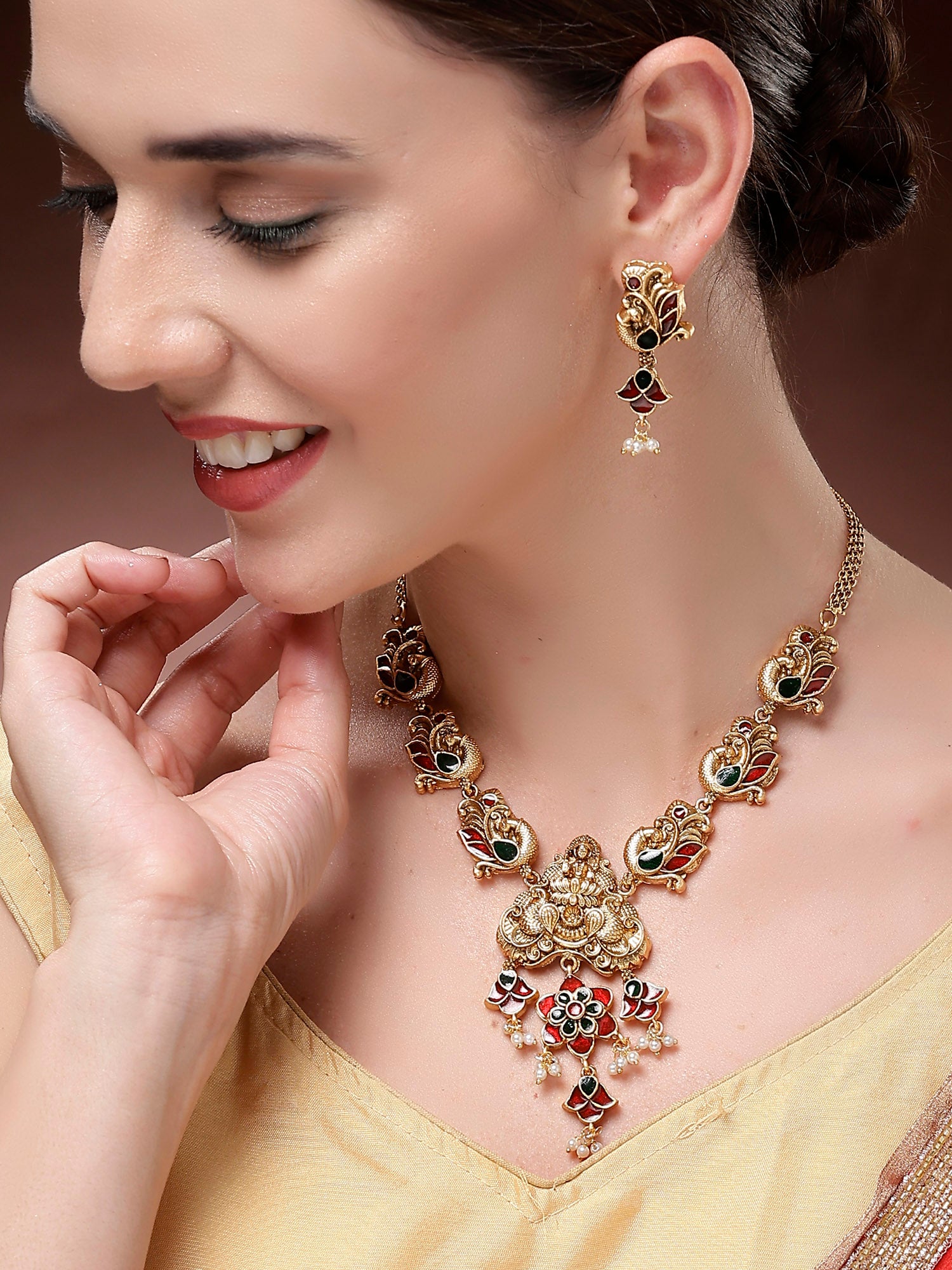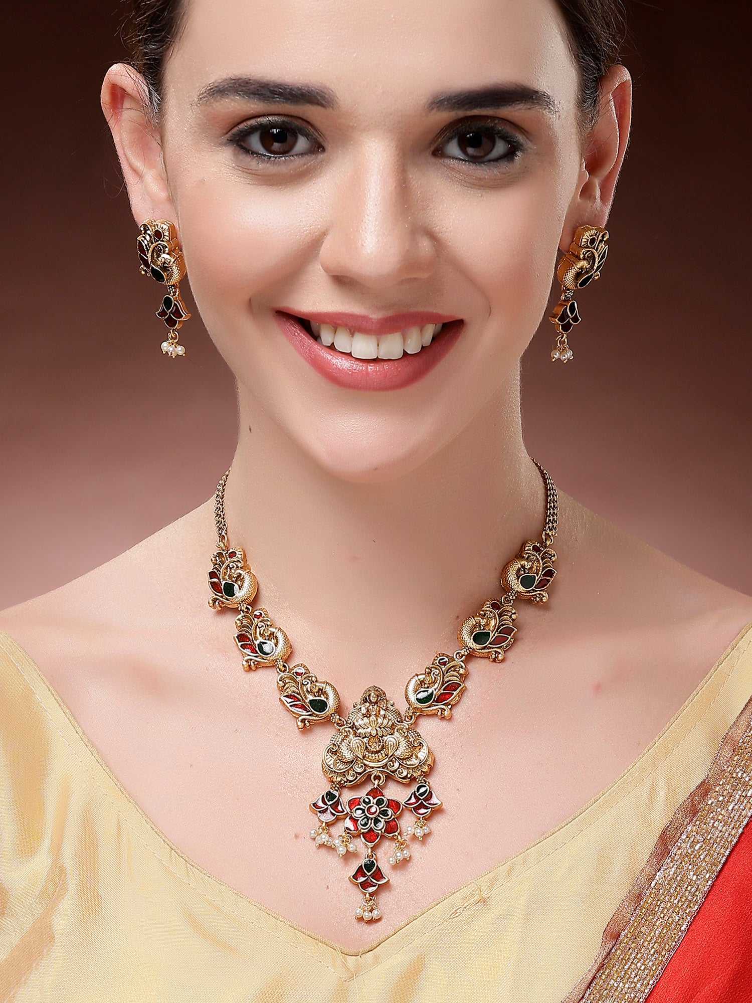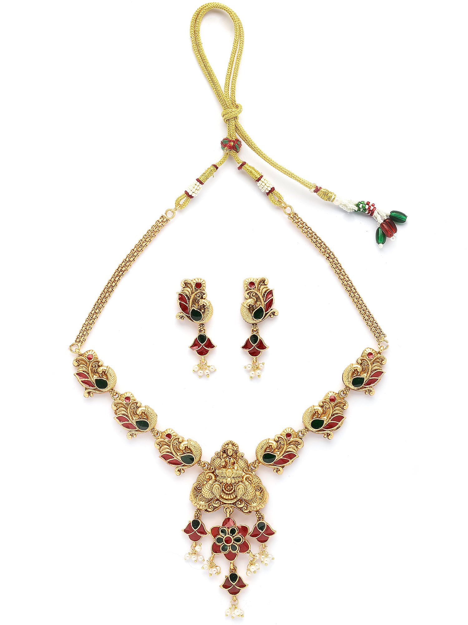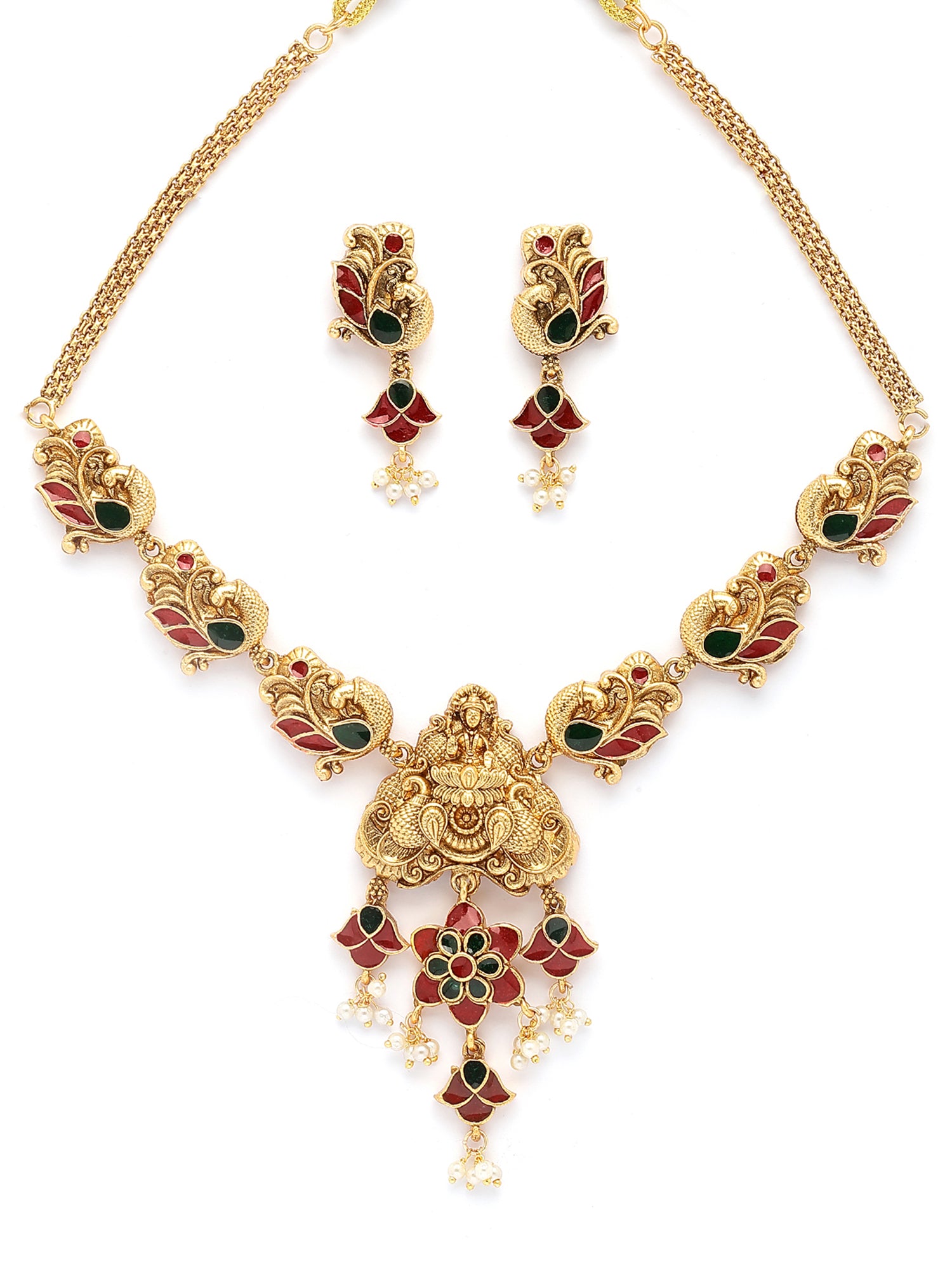 Karatcart Traditional Laxmi Mata Gold Plated Meenakari Temple Jewellery Set for Women