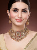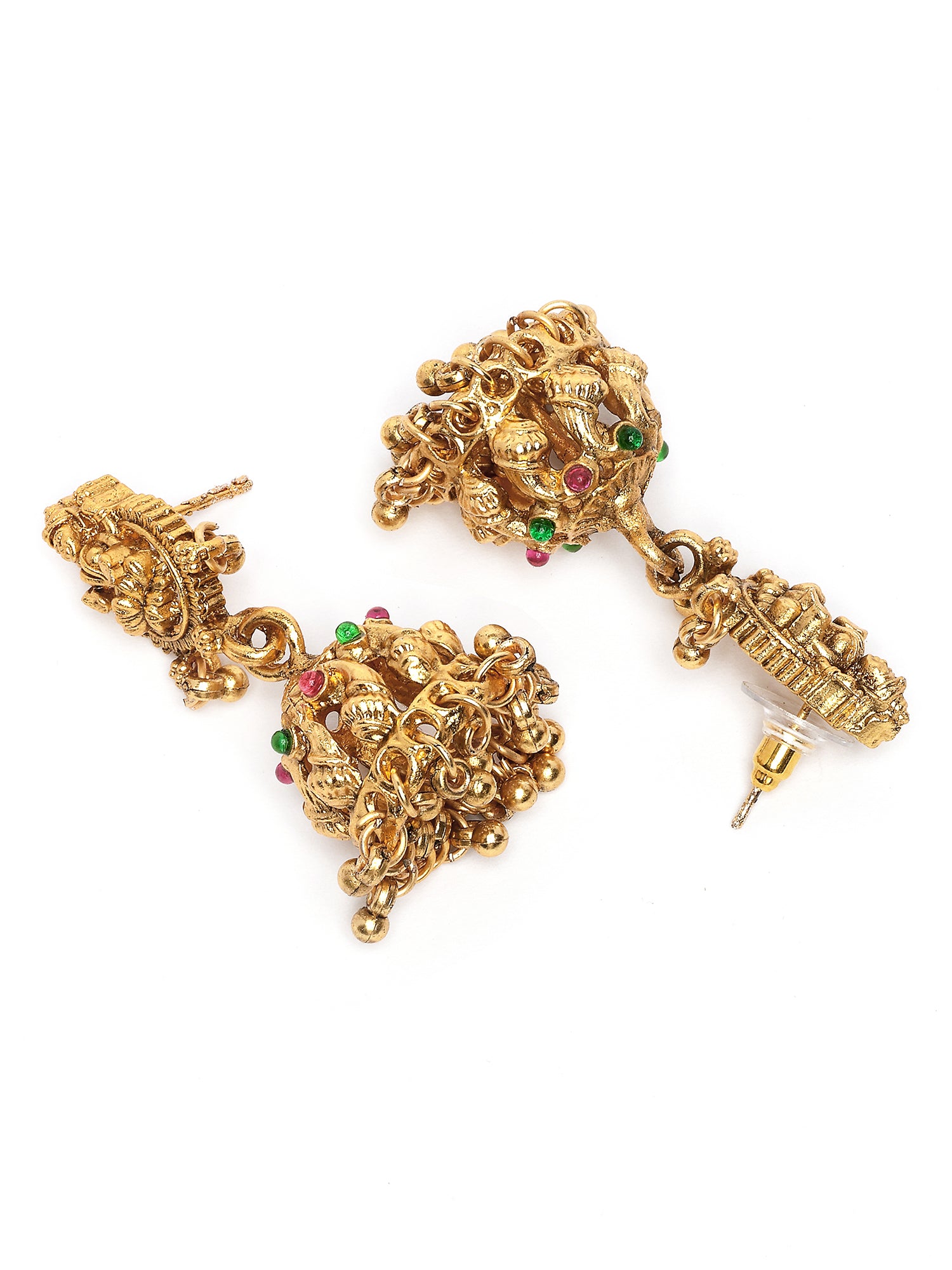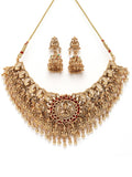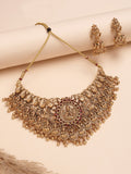Karatcart Gold Plated Red Beads Studded Laxmi Mata Temple Jewellery Set for Women