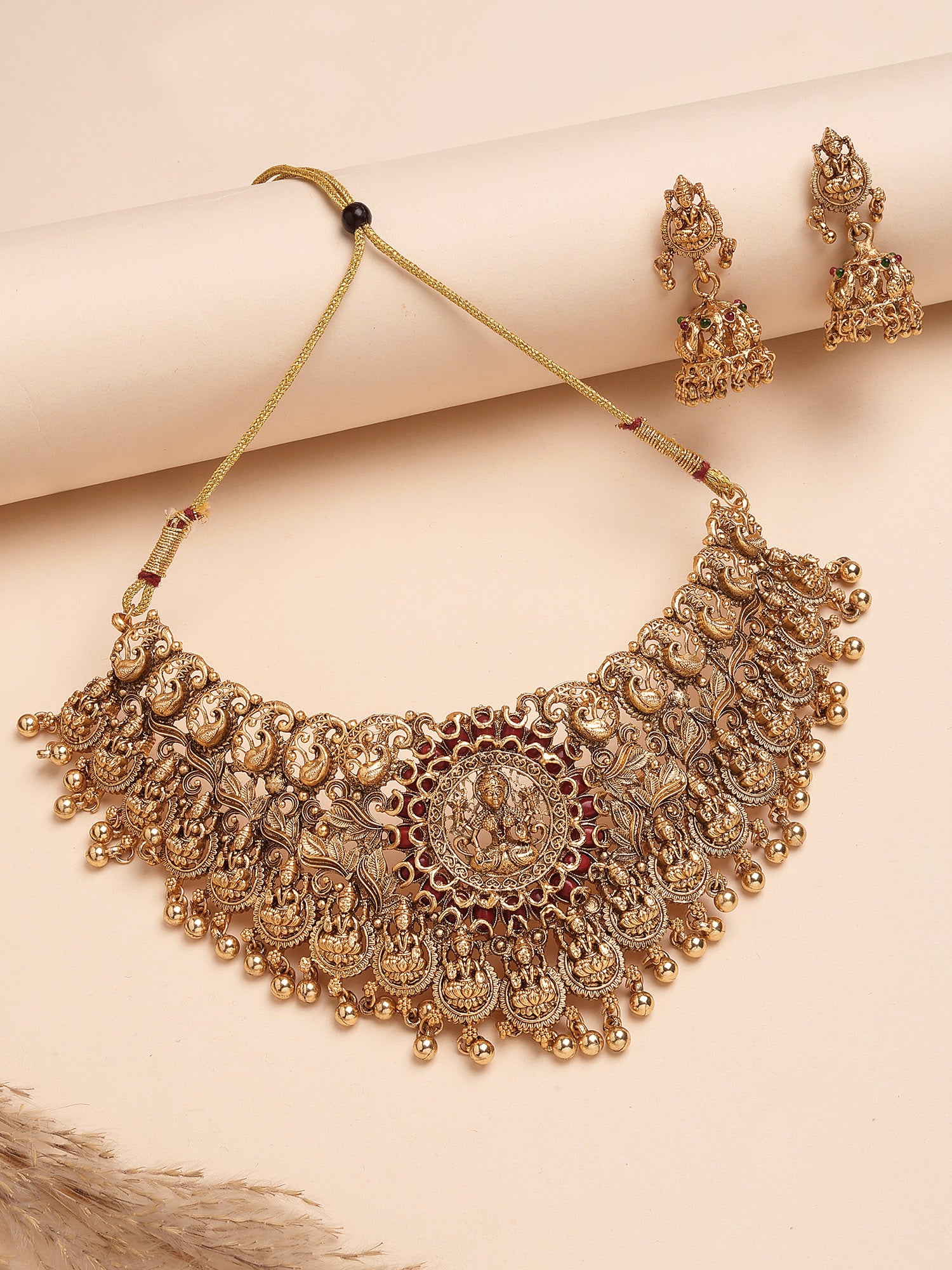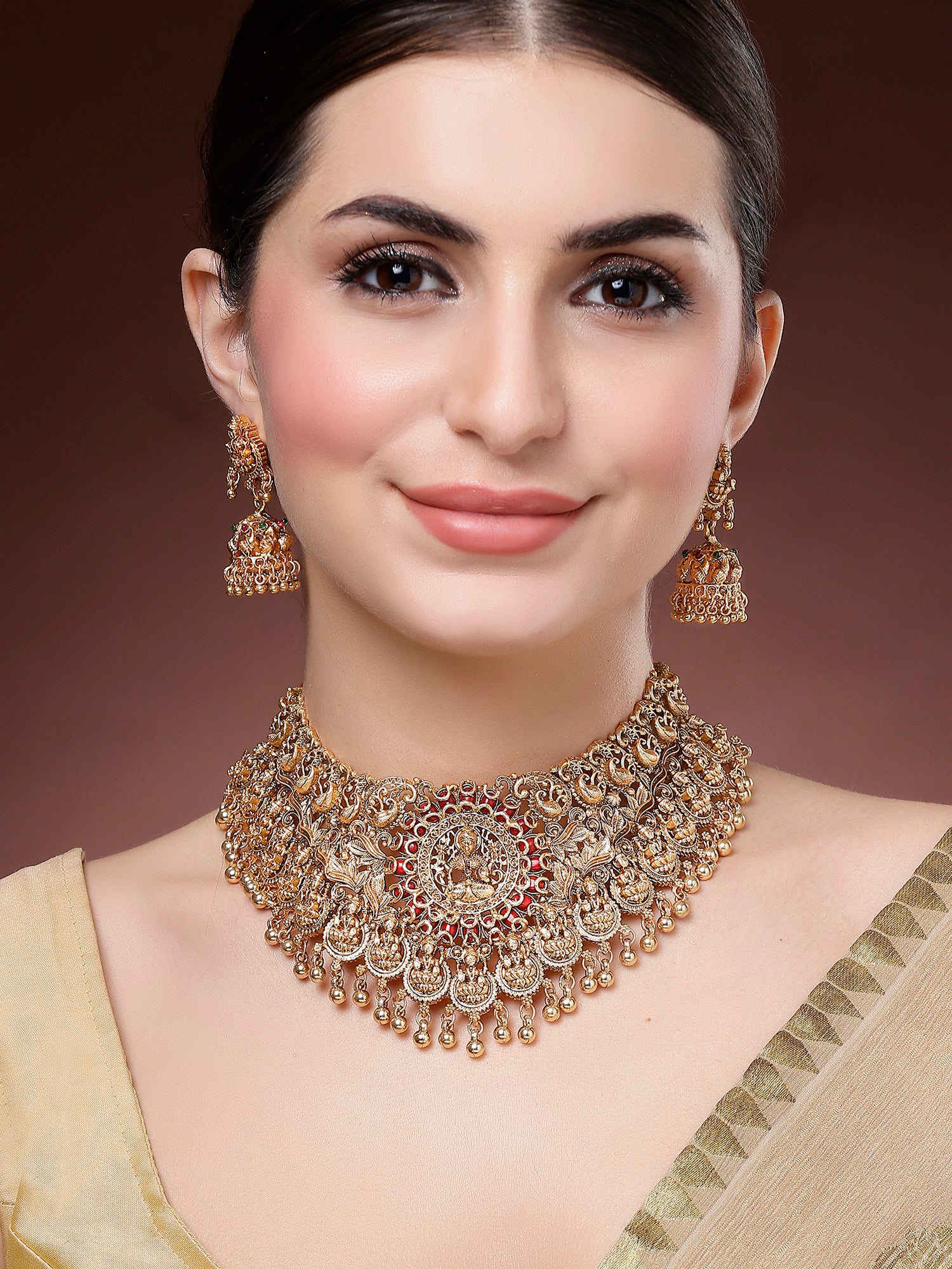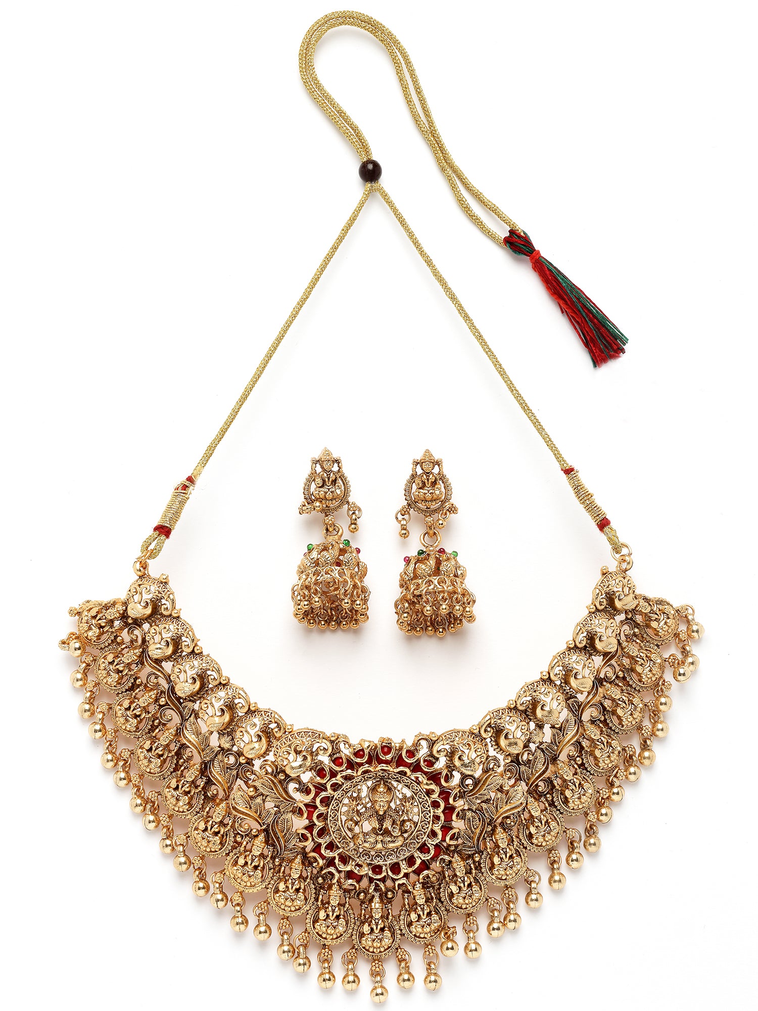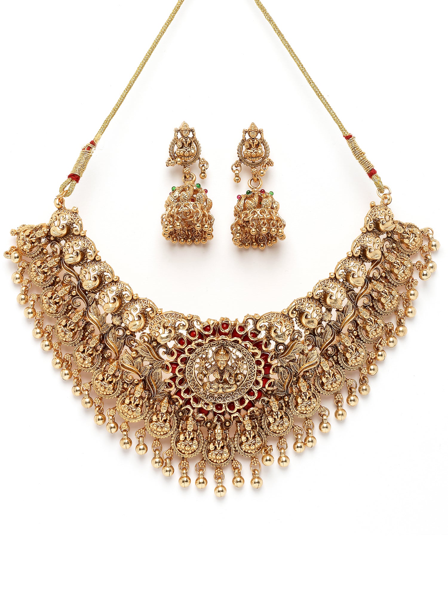 - Karatcart Gold Plated Red Beads Studded Laxmi Mata Temple Jewellery Set for Women. Our products are designed with high-quality material and these products are enhanced with plating that are skin-friendly & with love to reach your heart.