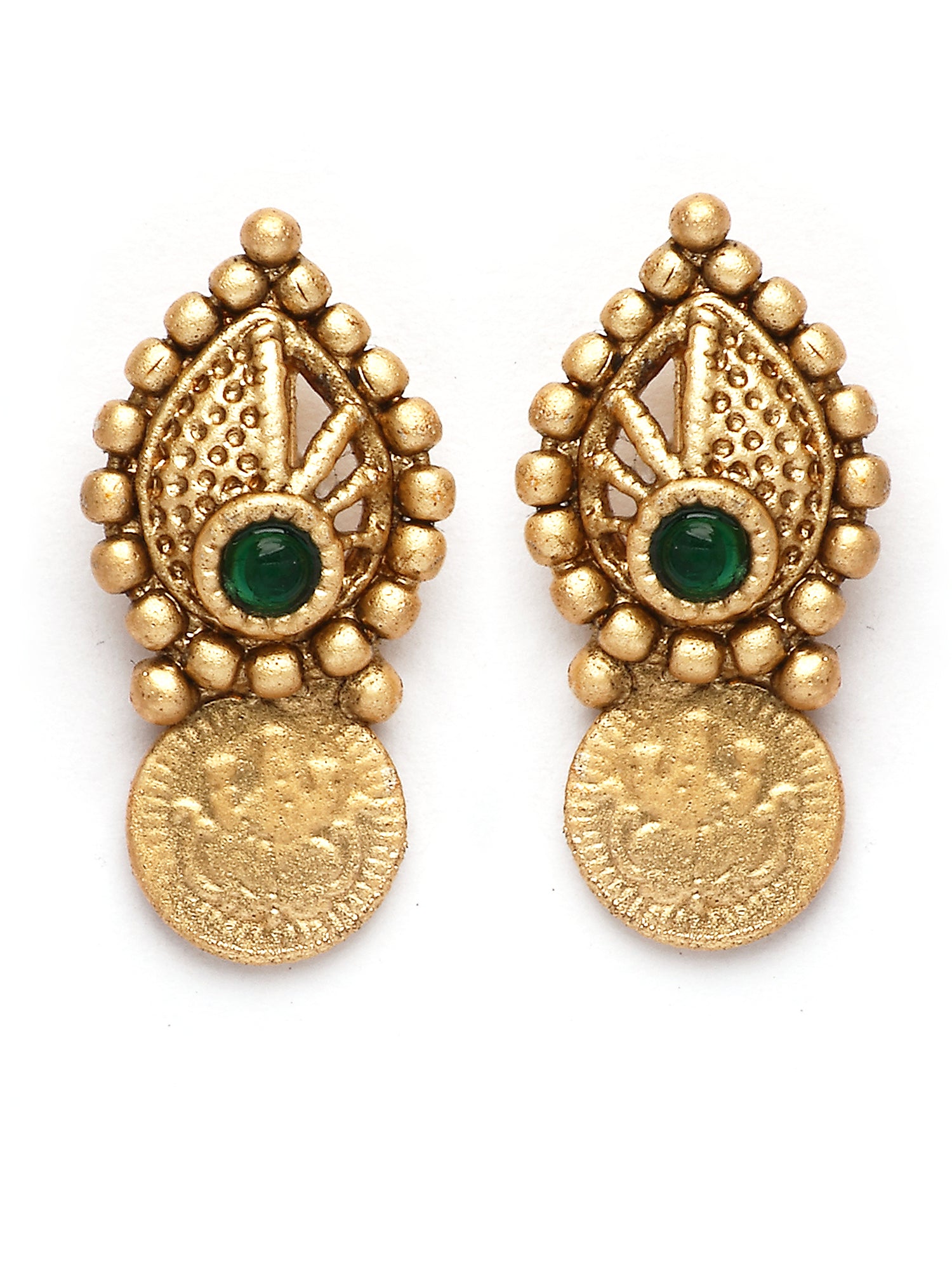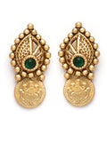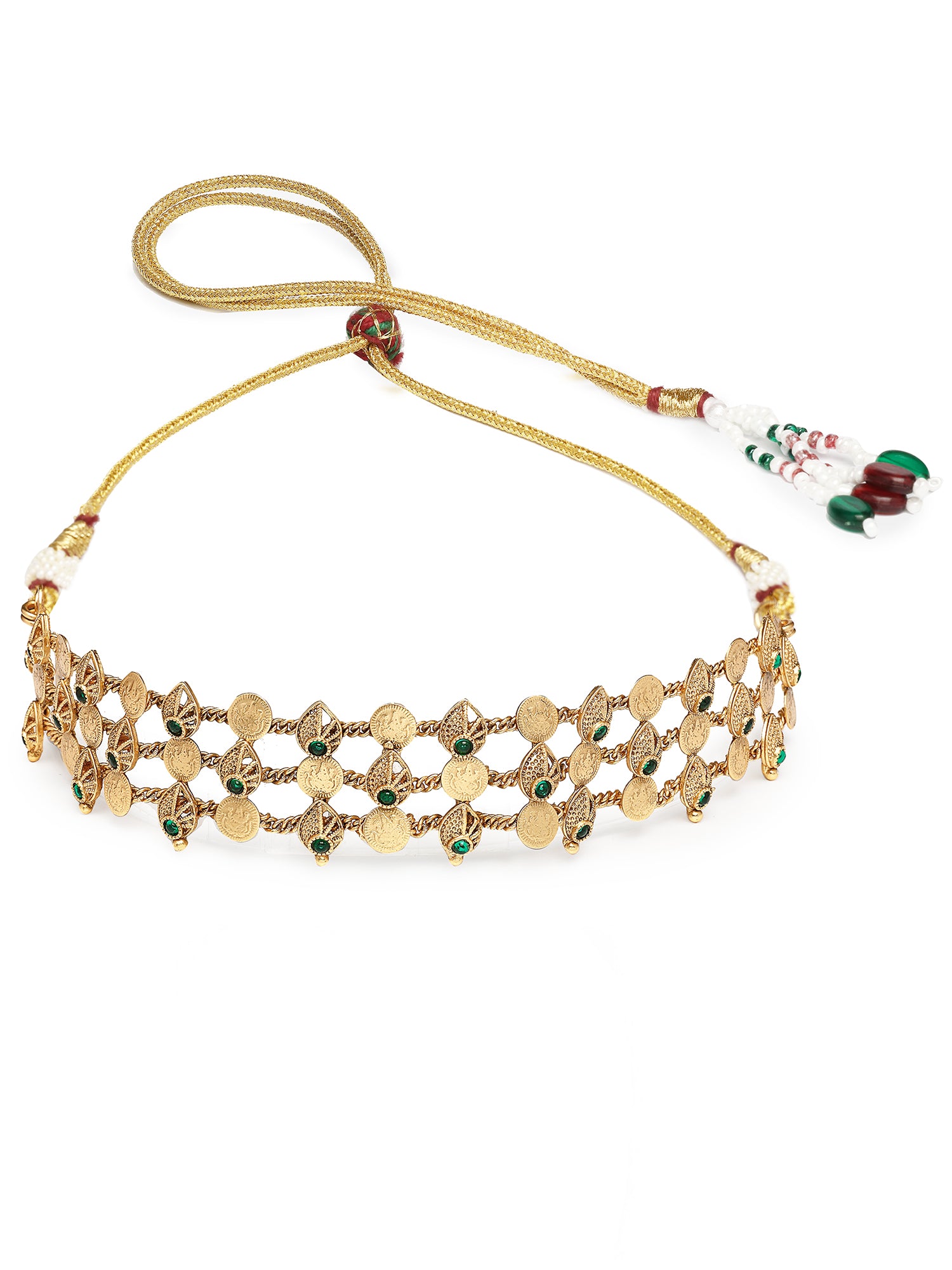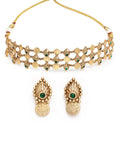 Karatcart Green Stone Gold Plated Laxmi Mata Coin and Shell Design Necklace Set for Women