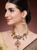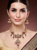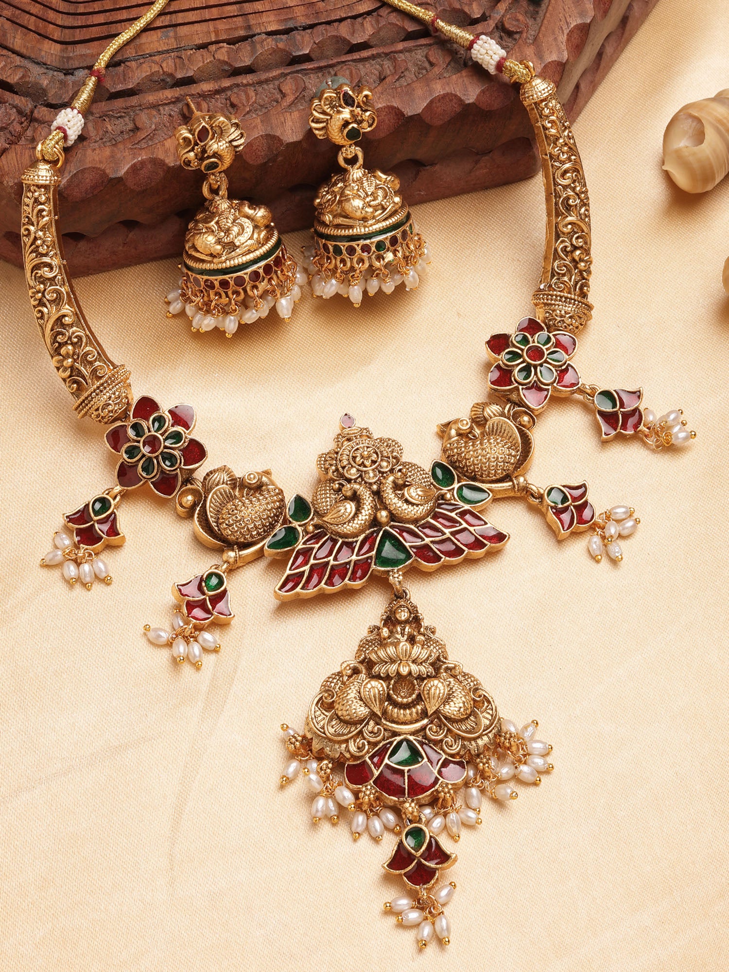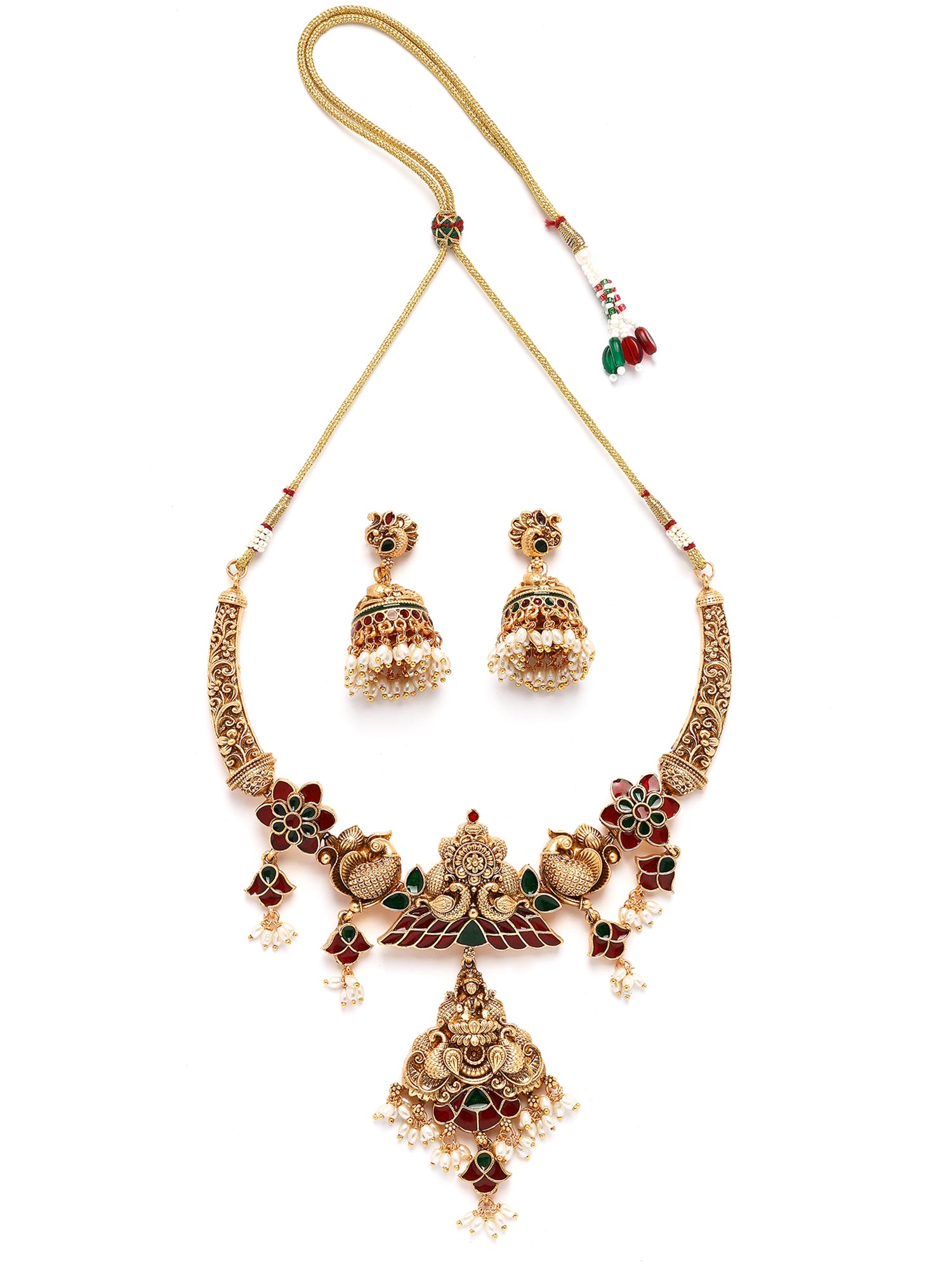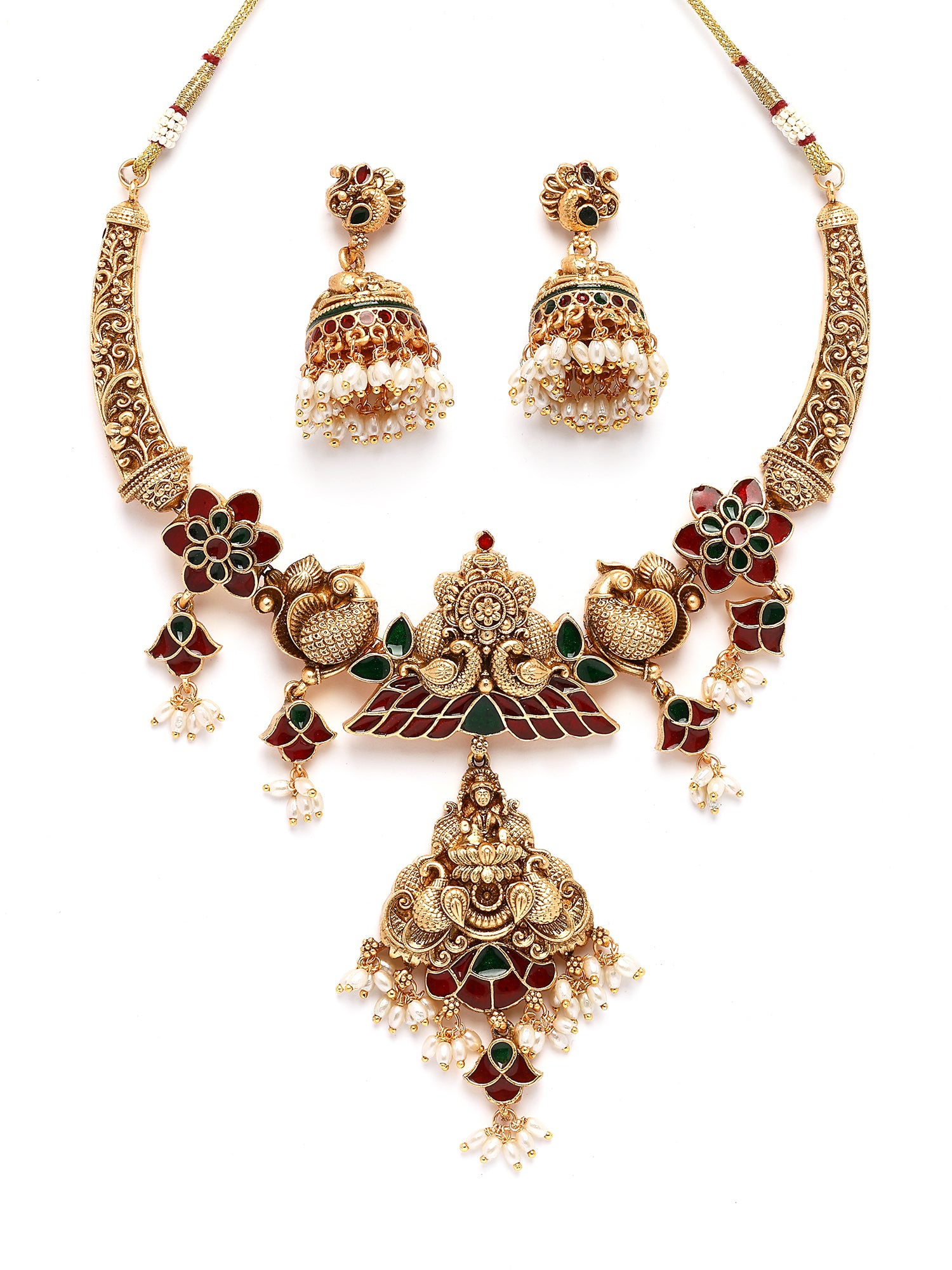 Karatcart Gold Plated Engraved Laxmi Mata and Peacock Necklace Set for Women