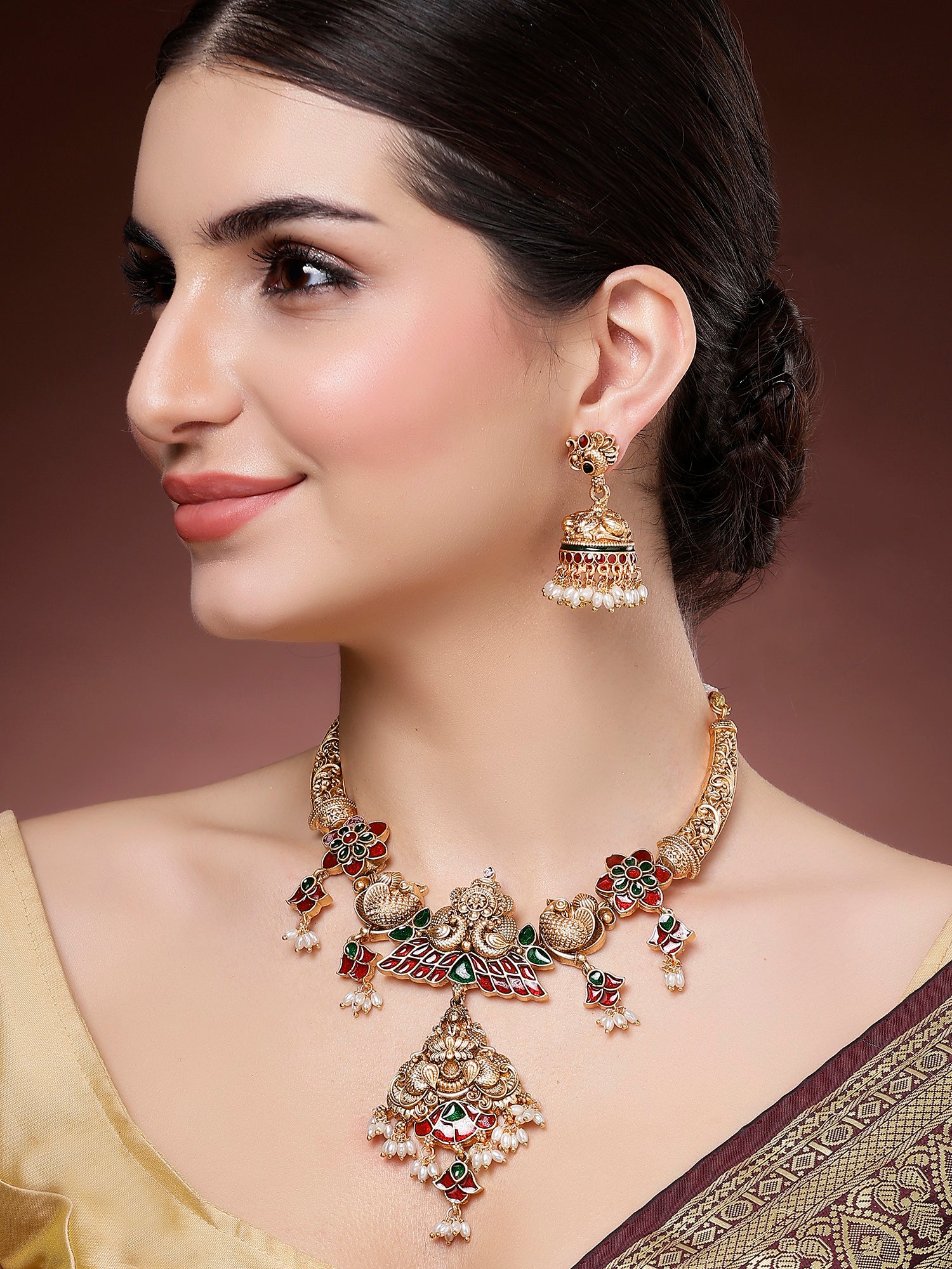 - This is a Red Jewellery Set by Brand Karatcart which has Enamel stones. This is Gold Plated. We at KARATCART understand your desire to look the best on any day & we thrive in making any day an occasion. Every individual at Karatcart carries a passion for jewellery and it reflects in our beautiful designs as well as in our breathtaking craftsmanship. We create unique jewellery so you can make heads turn.