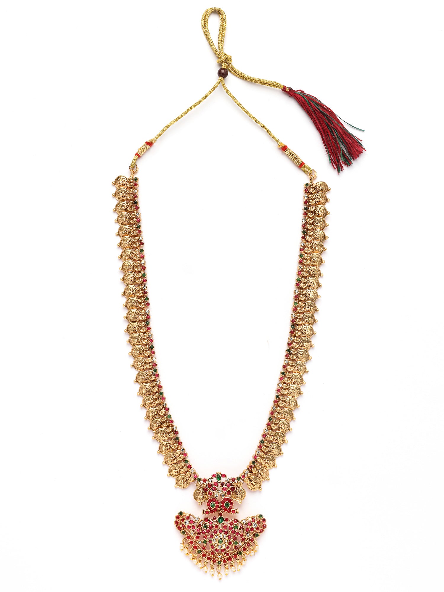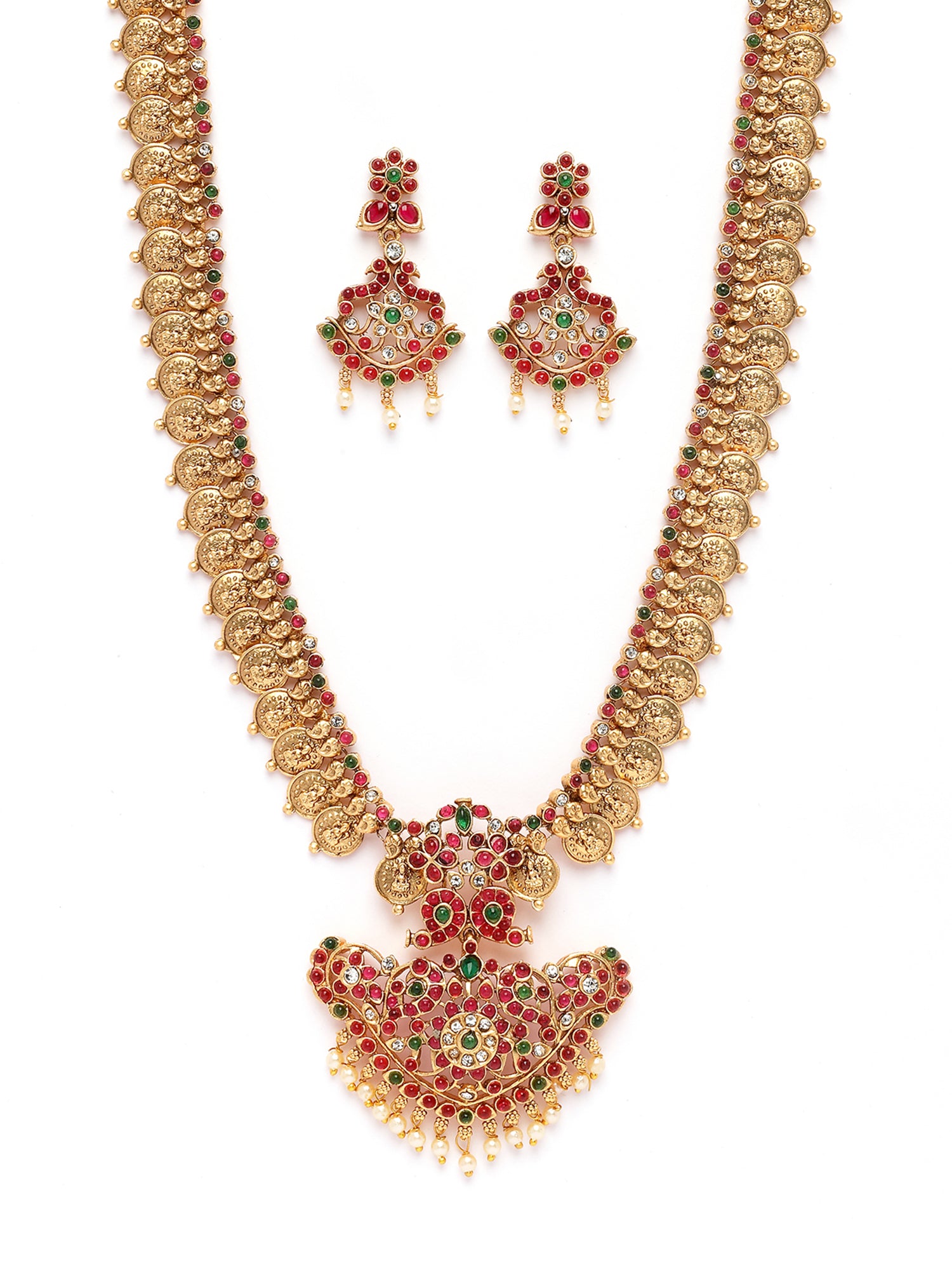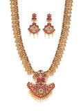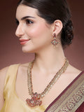 Karatcart Gold Plated Red Stone Rani Haar Temple Jewellery Set for Women