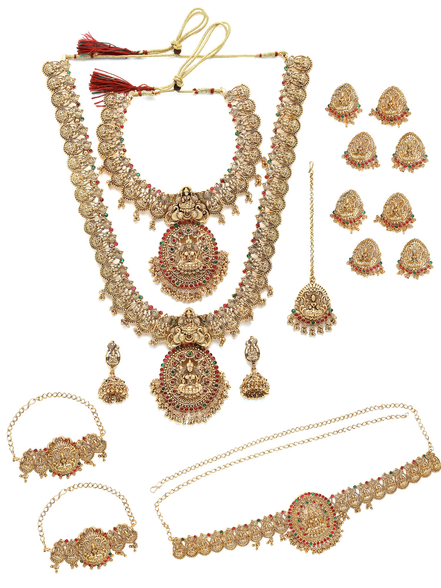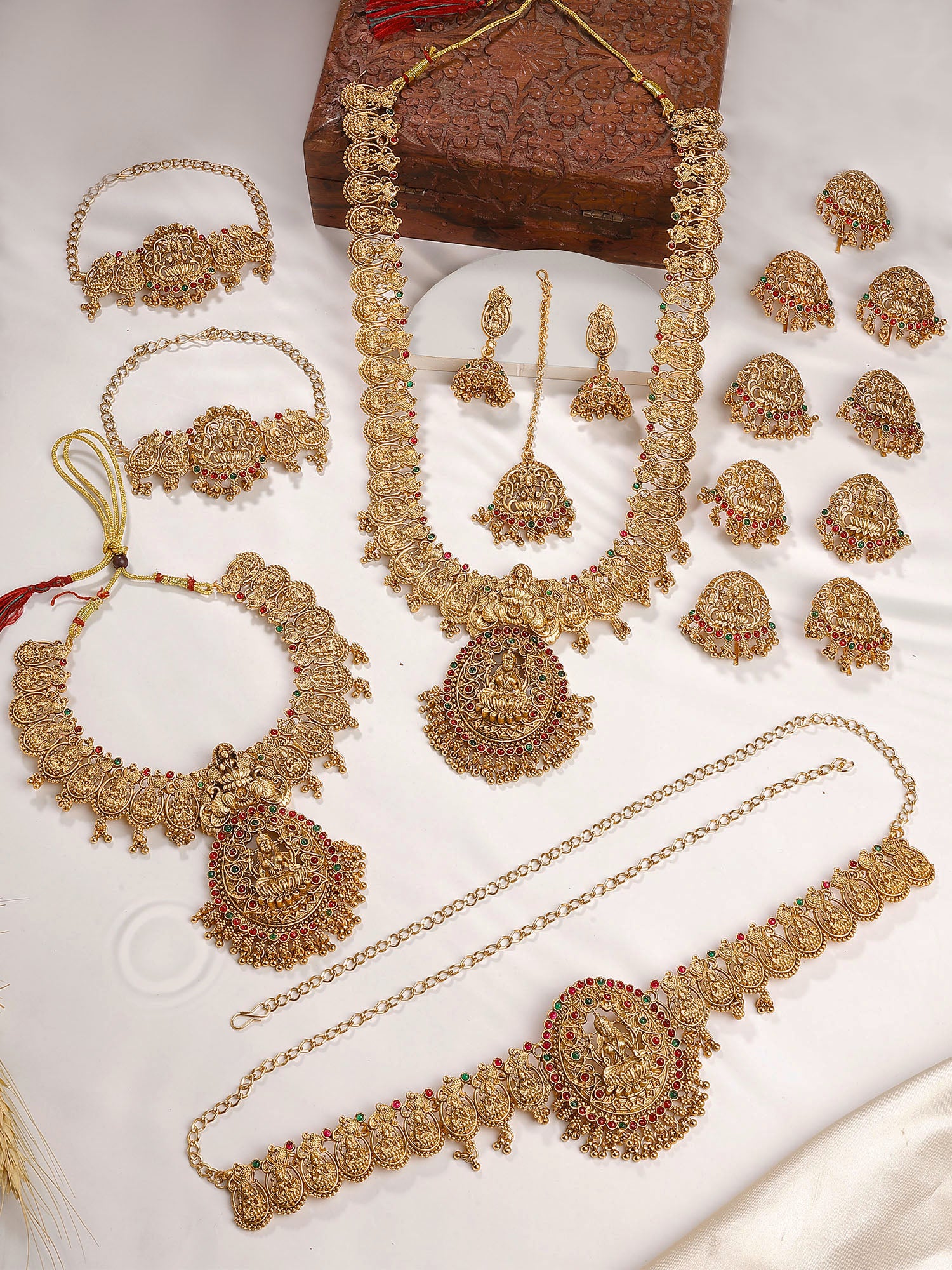 Karatcart Elegant Gold Plated Laxmi Mata Full Bridal Temple Jewellery Set for Women