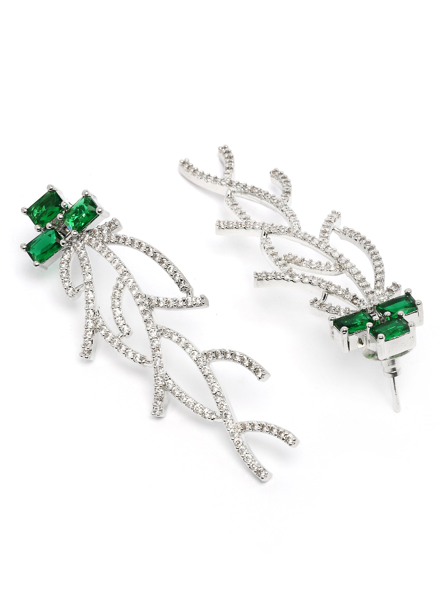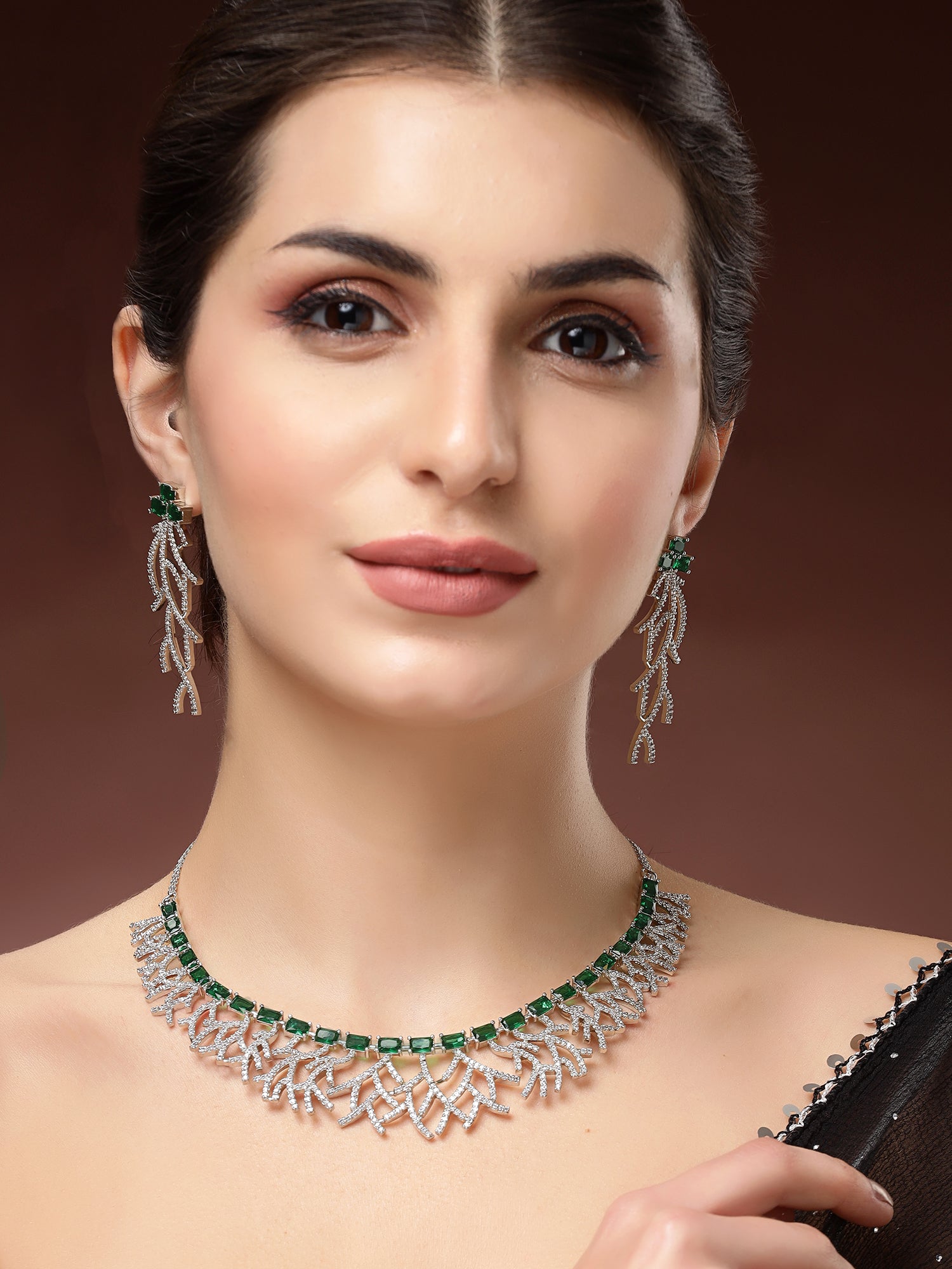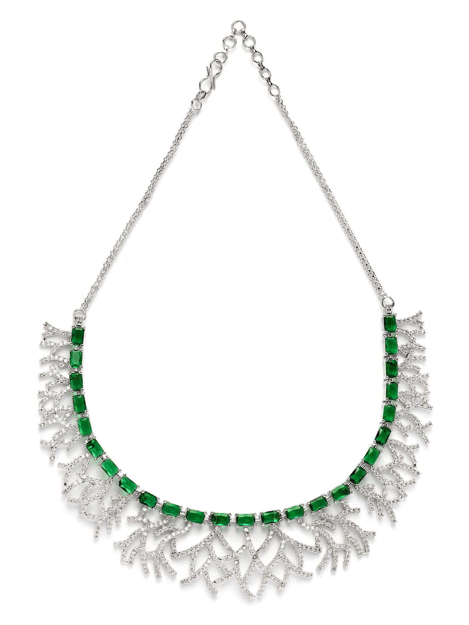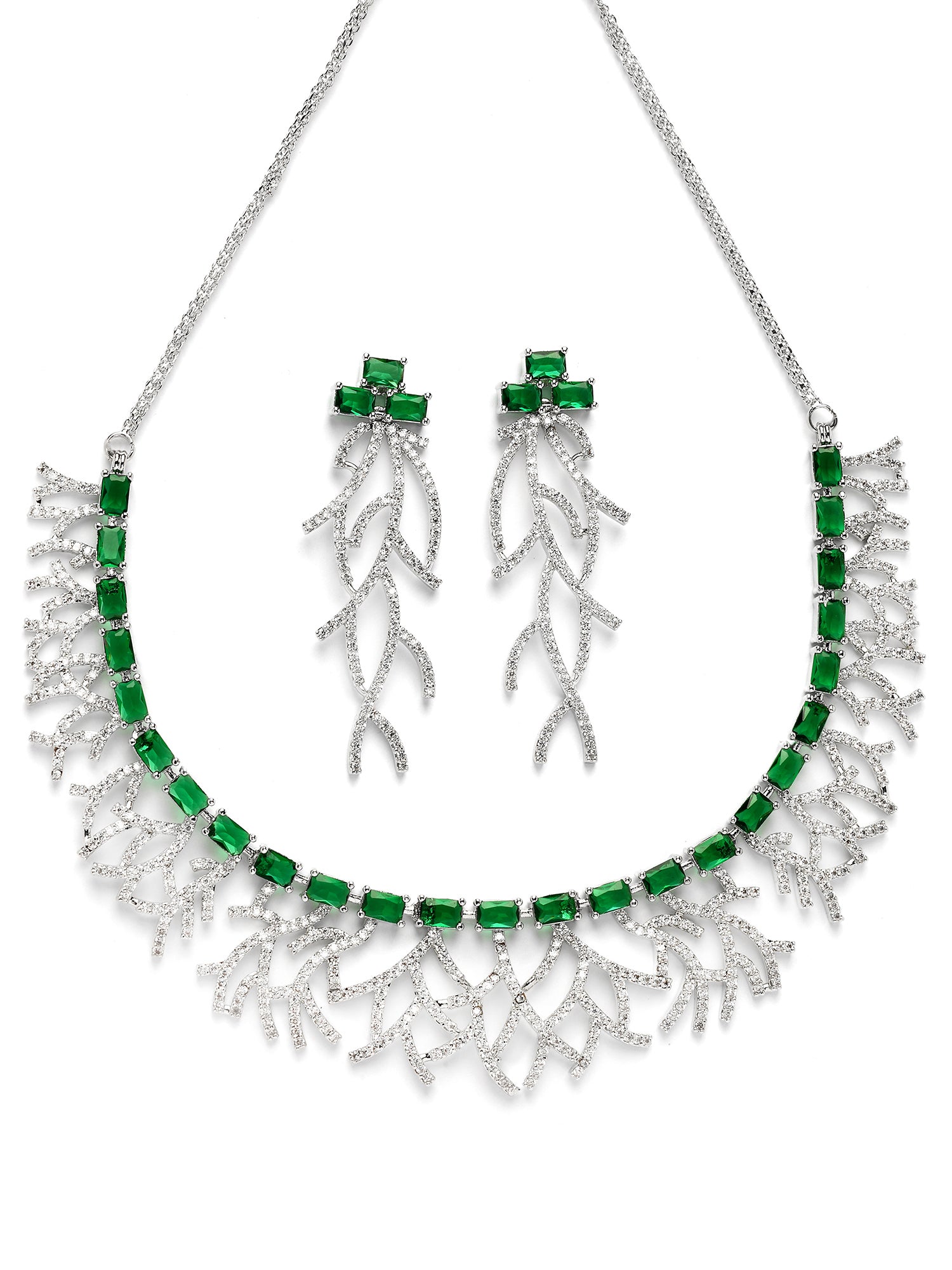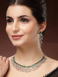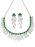 Karatcart Silver Plated Green American Diamond Leaf Necklace Set for Women